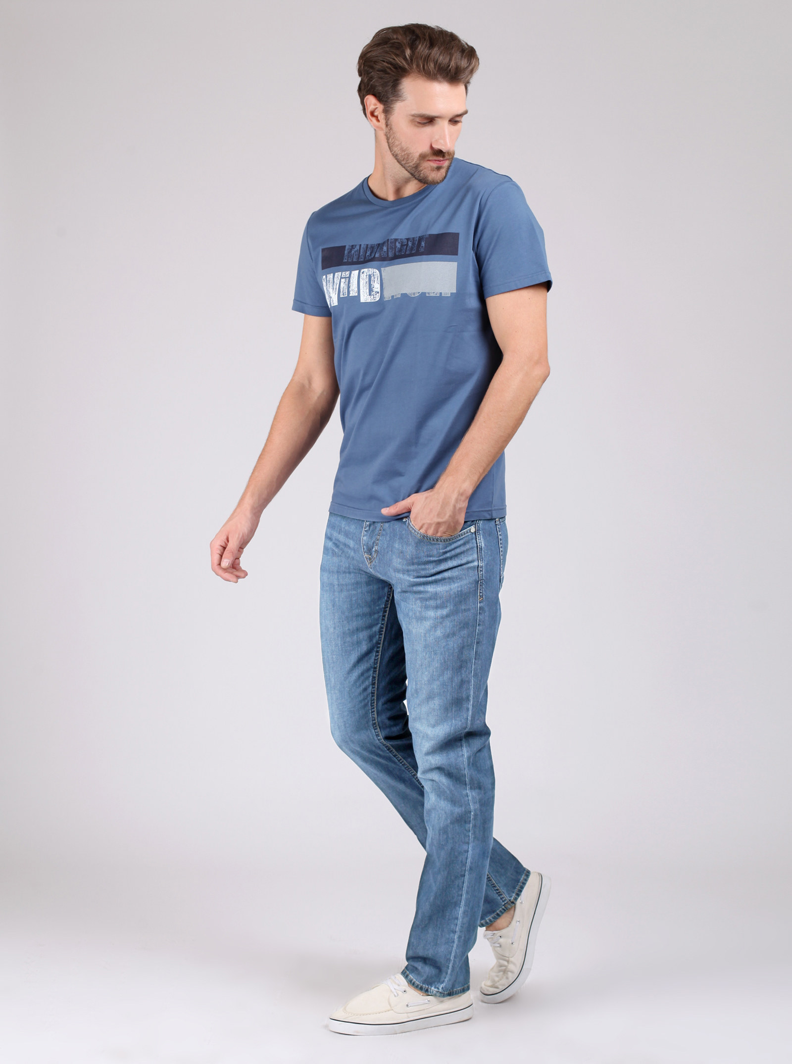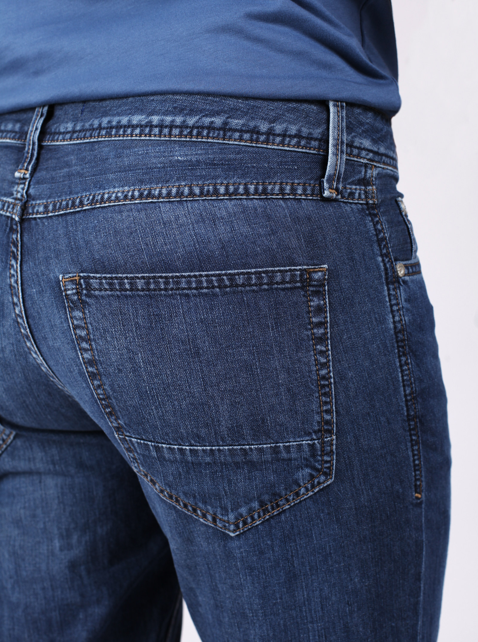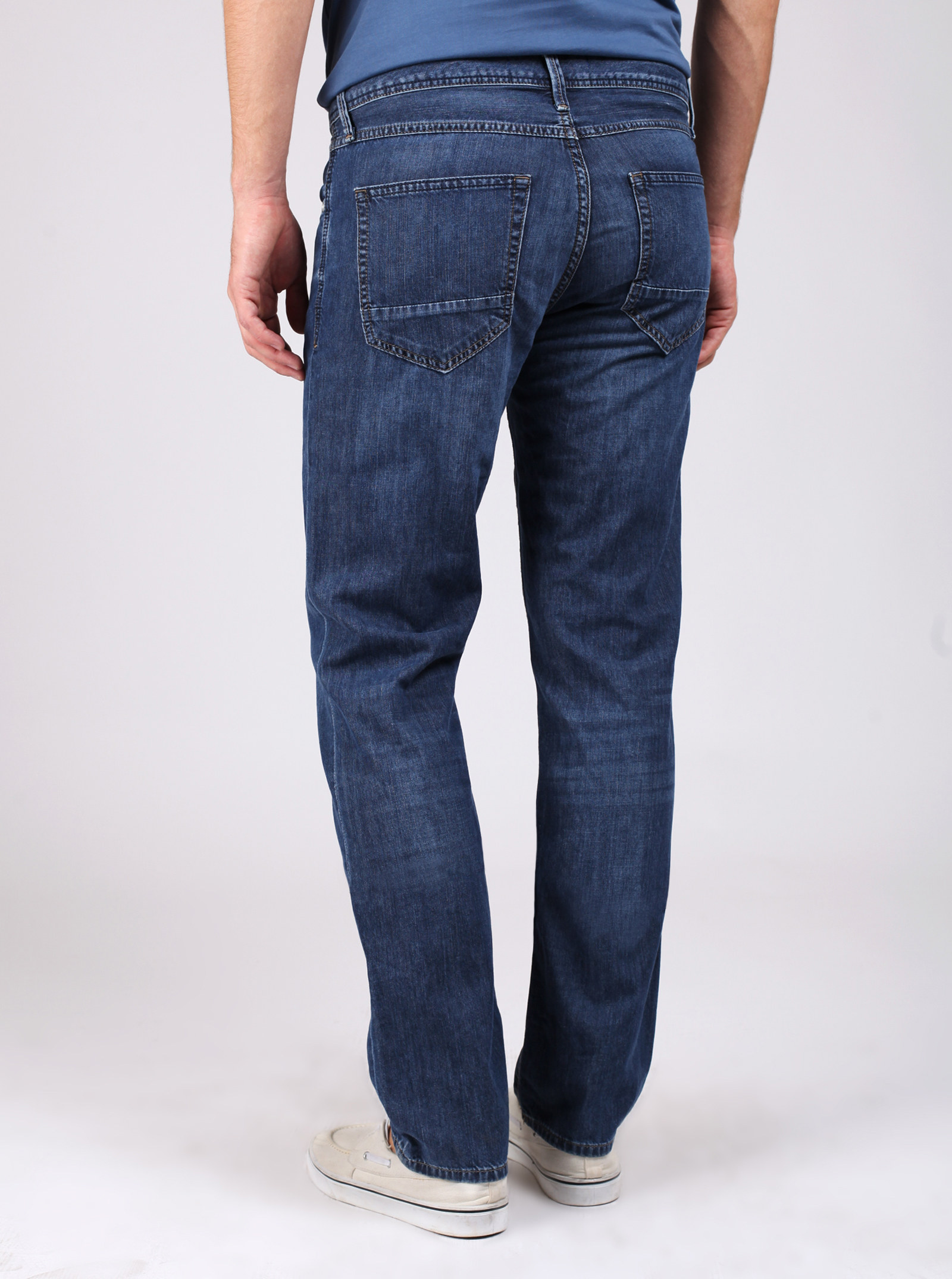 Фирменный фит RYAN. Базовые джинсы прямого кроя со слегка зауженными книзу штанинами. Классическая модель с трендовыми элементами и легкими потертостями спереди и сзади. Модель из тонкого 100% хлопка.