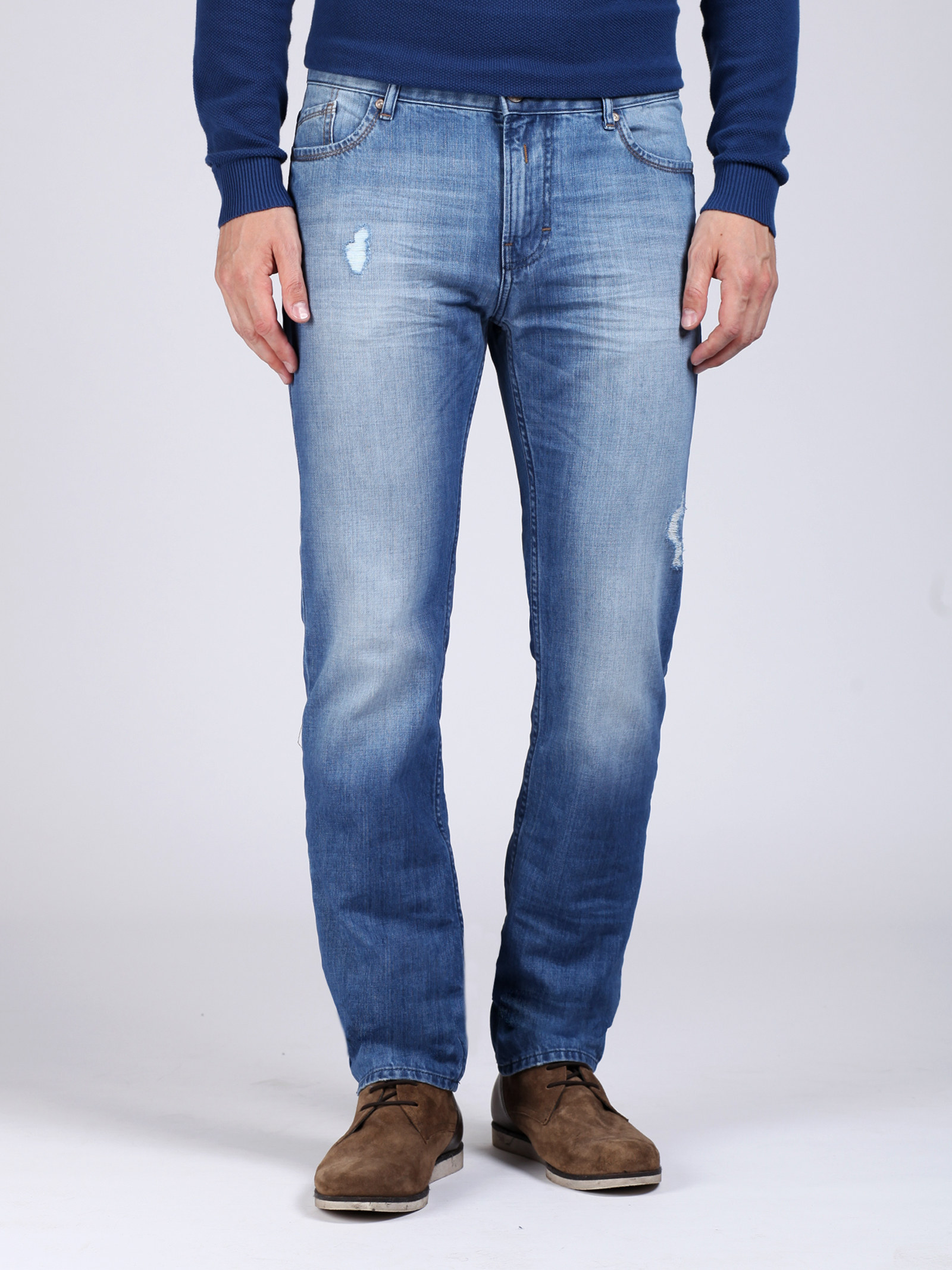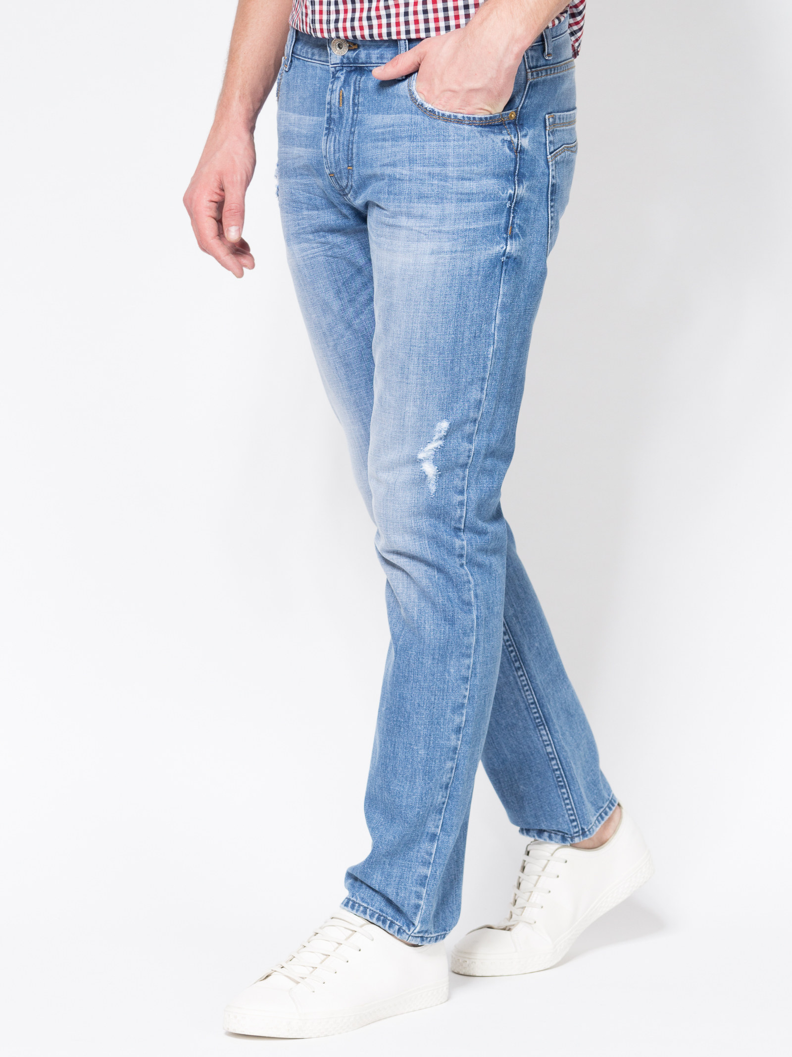 Прямые джинсы стандартного кроя.