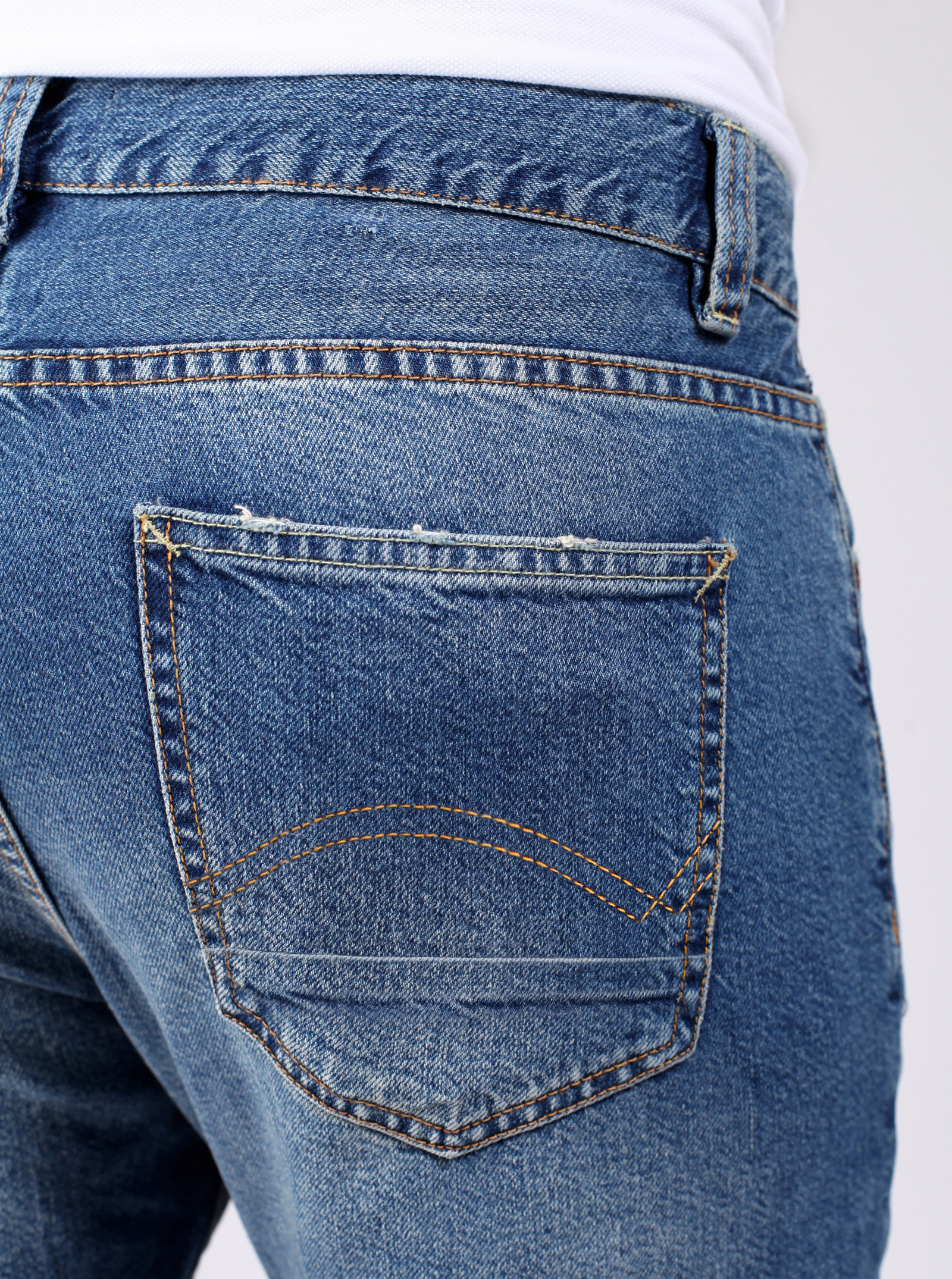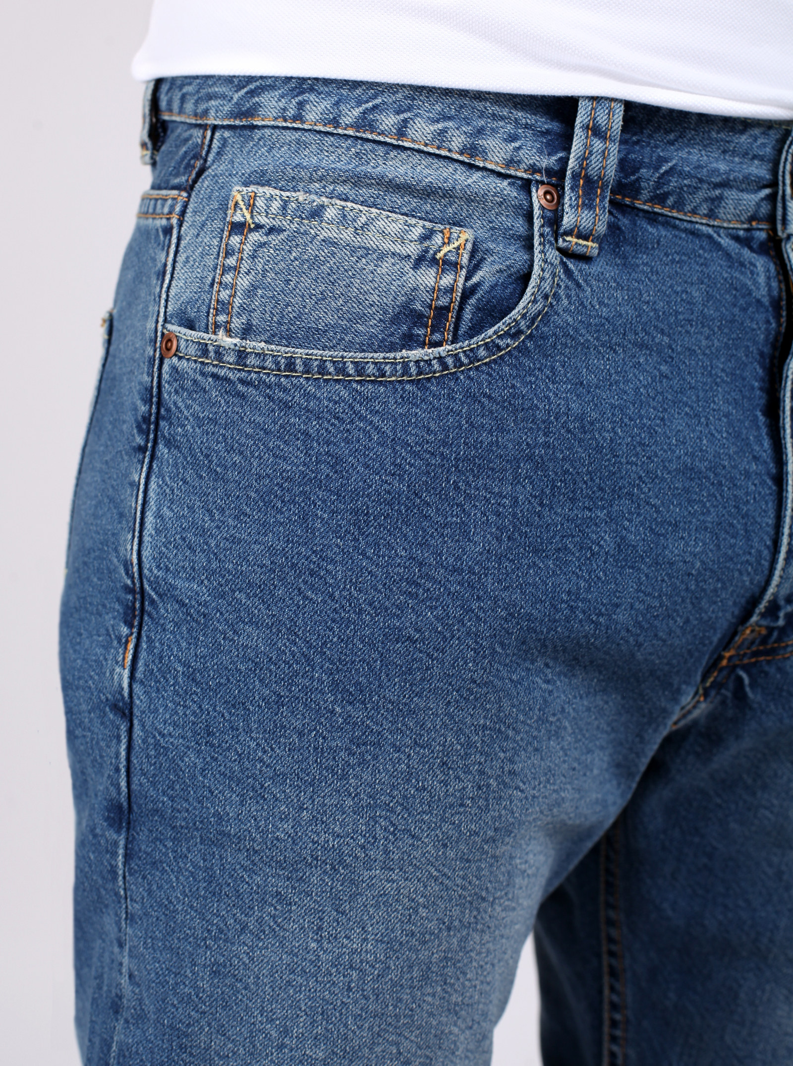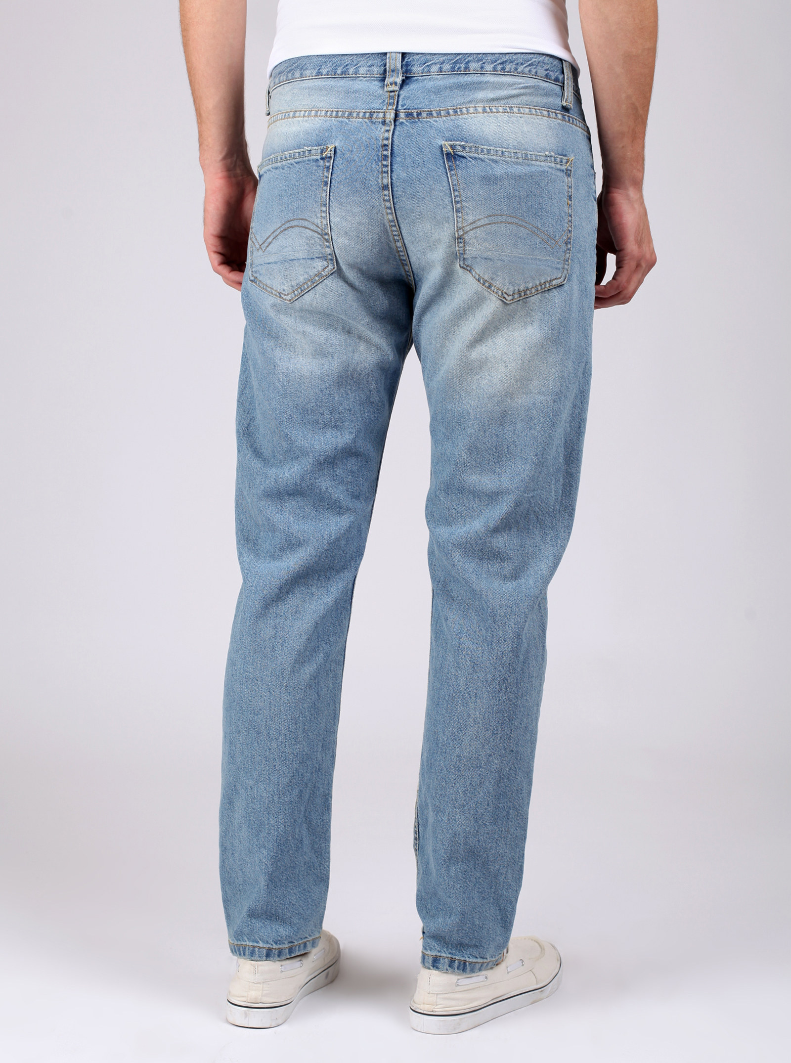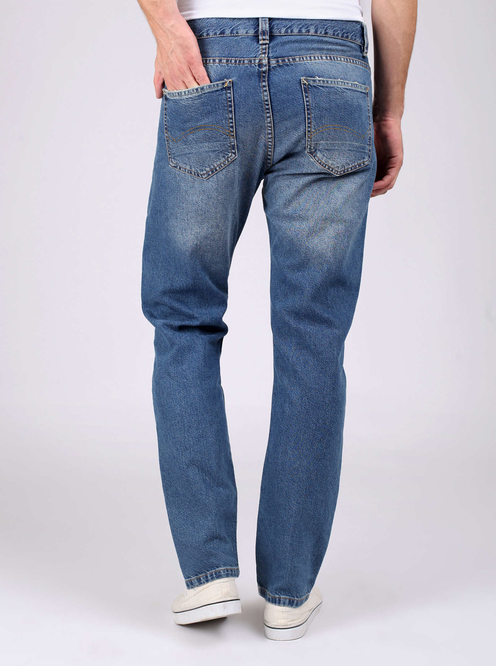 Фирменный фит RYAN. Джинсы, со слегка зауженными книзу штанинами и легкими потертостями спереди и сзади. На карманах стильные отстрочки. Модель выполнена из нестрейчевого хлопка.