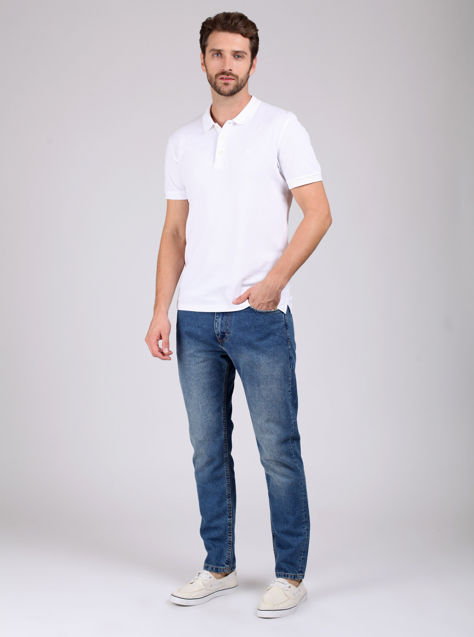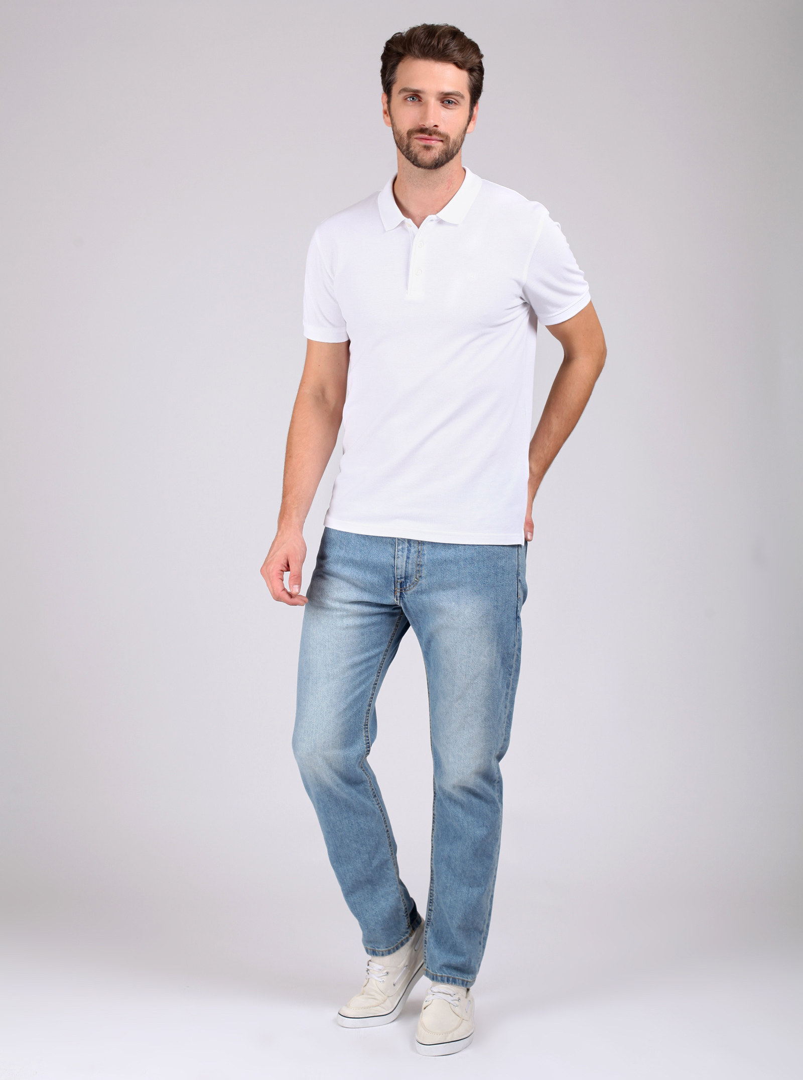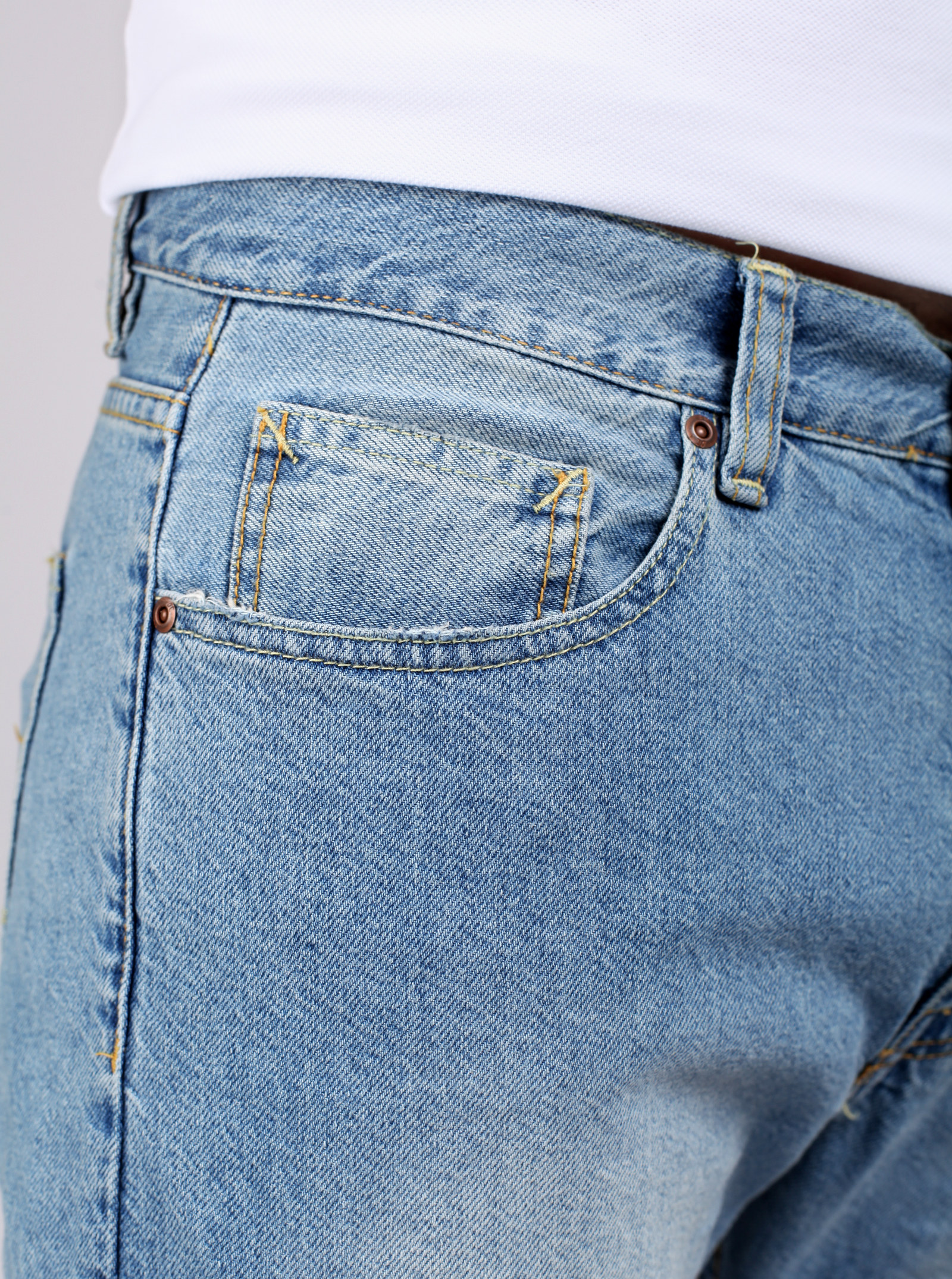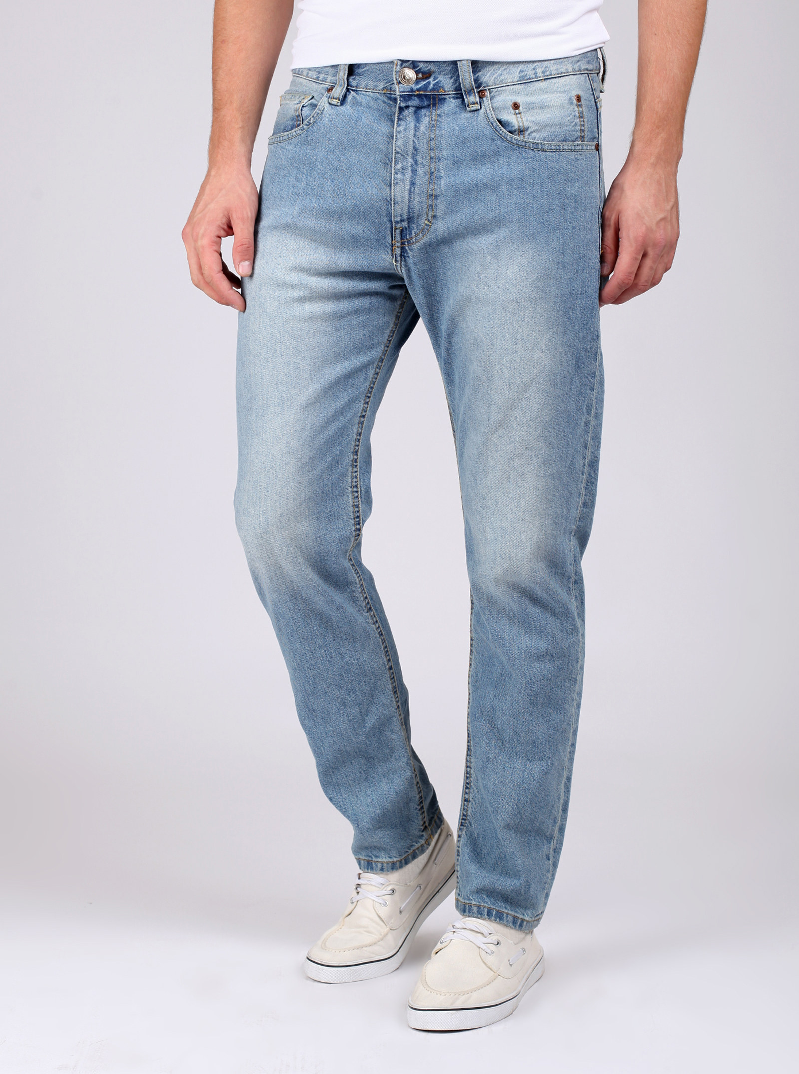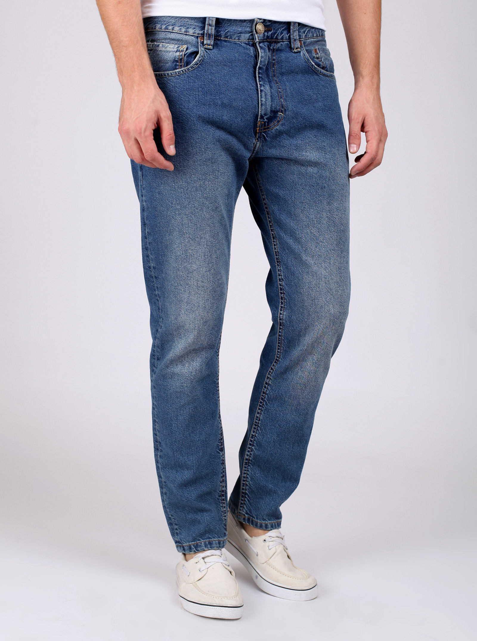 Фирменный фит RYAN. Джинсы, со слегка зауженными книзу штанинами и легкими потертостями спереди и сзади. На карманах стильные отстрочки. Модель выполнена из нестрейчевого хлопка.