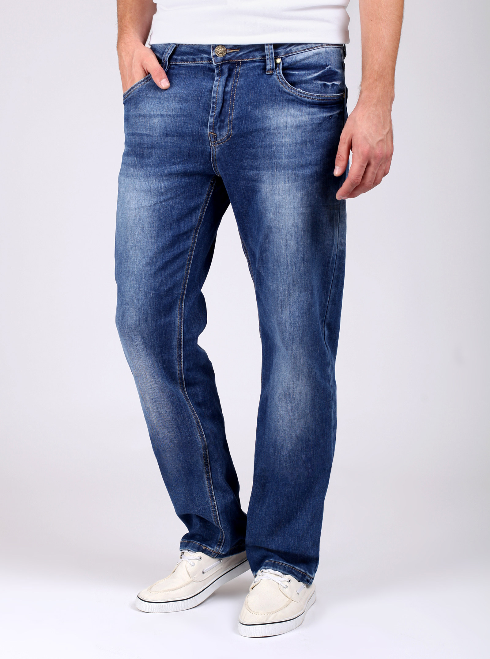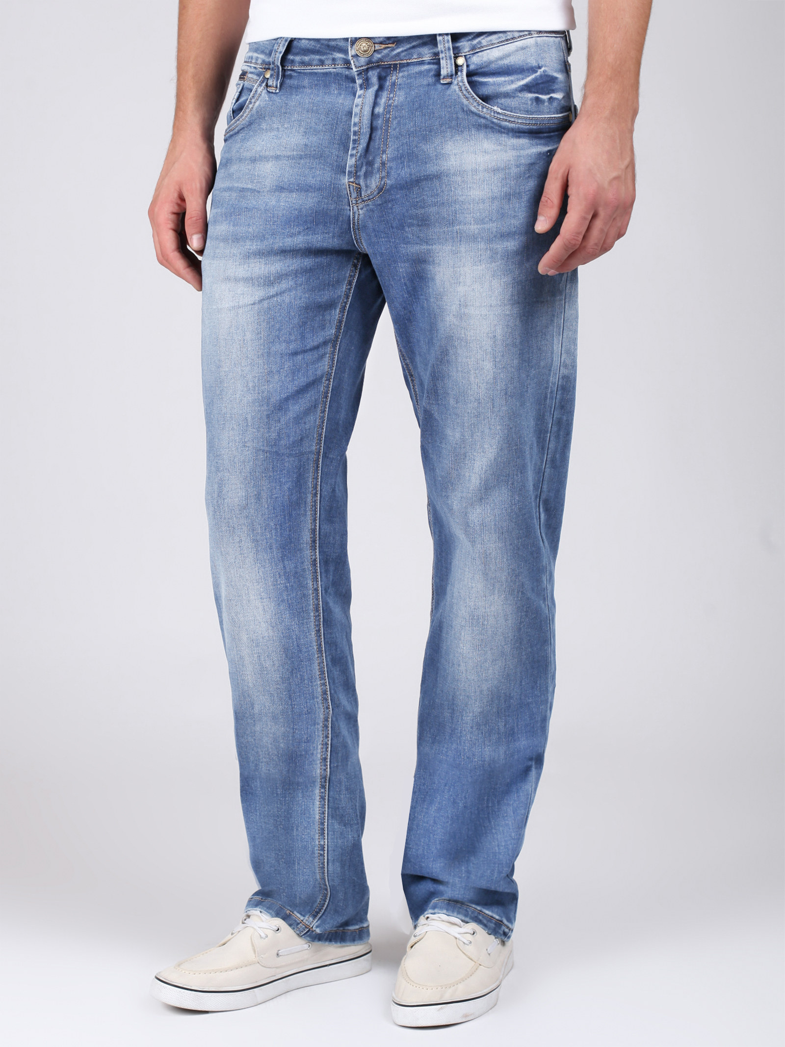 Фирменный фит ANTHONY. Модель широкого кроя комфортного силуэта. Стильные джинсы с вышивкой на задних карманах и яркими потертостями. Выполнены из неплотного стрейчевого хлопка.