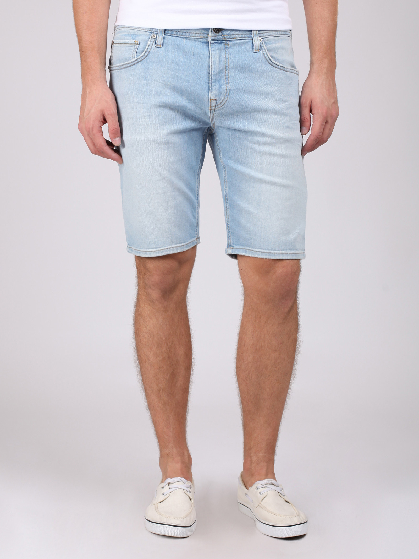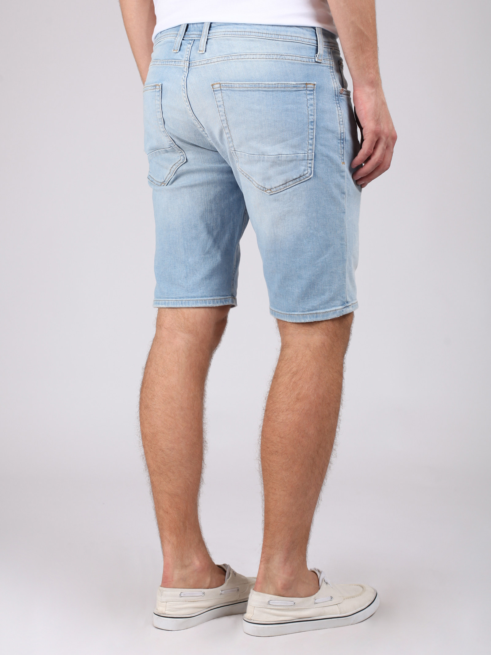 Шорты средней длины из тонкого хлопка с модными потертостями спереди и сзади. Модель незаменима в летнюю жару.