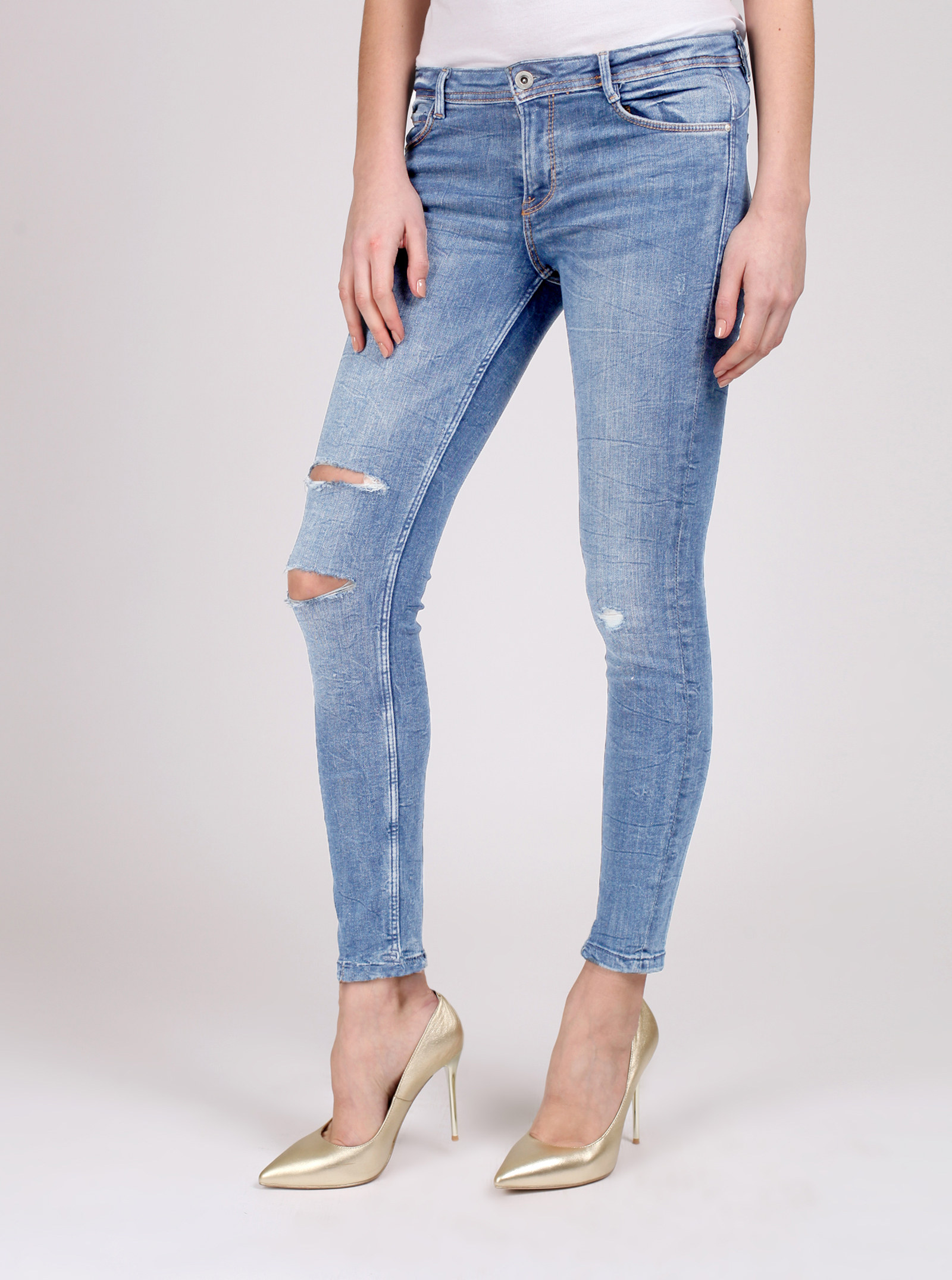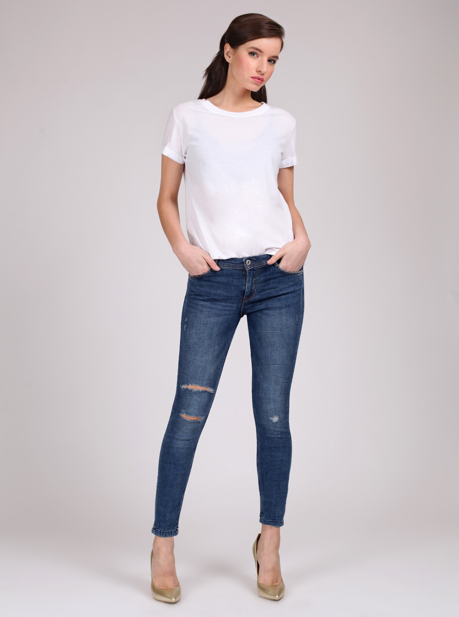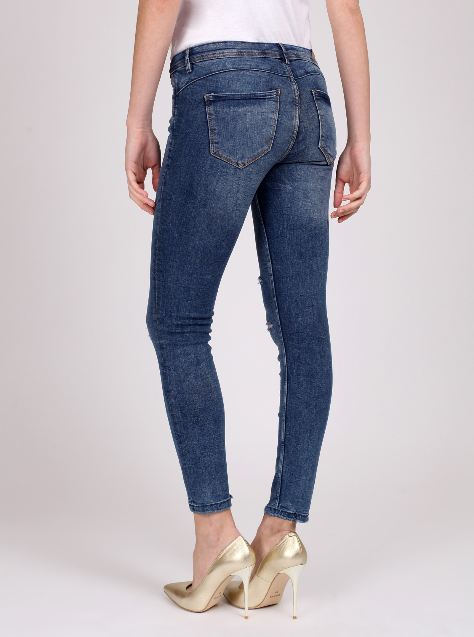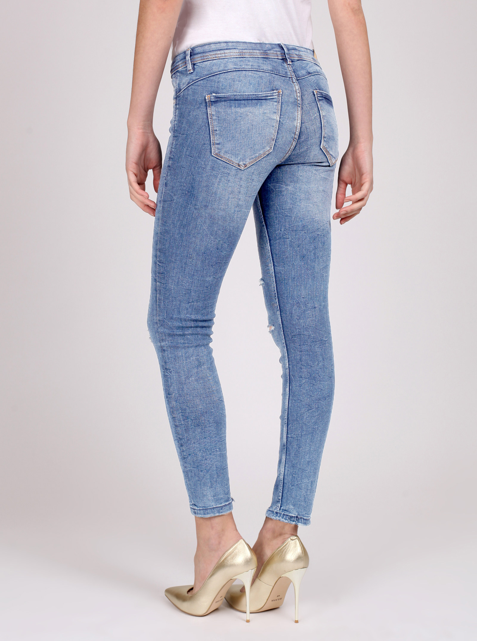 Фирменный фит MIA. Джинсы плотного облегания по ноге с эффектом Push-up. Специально разработанная форма кокетки подчеркивает женственные формы. Модель декорирована стильными потертостями и дырами.