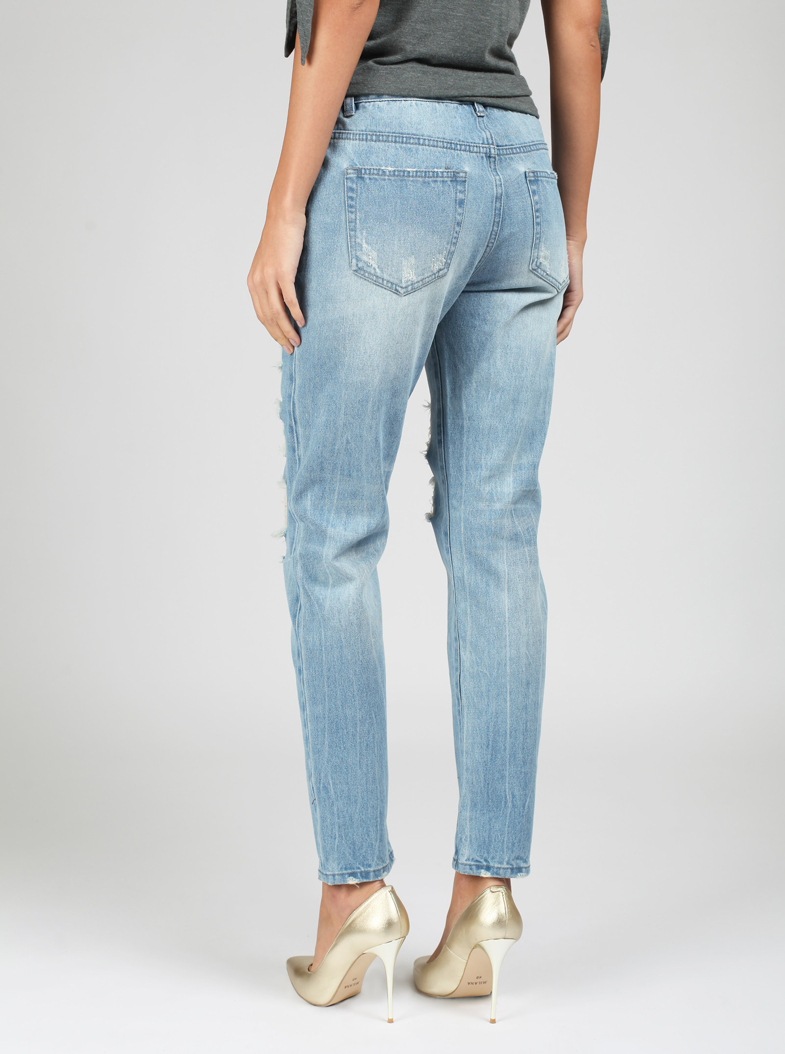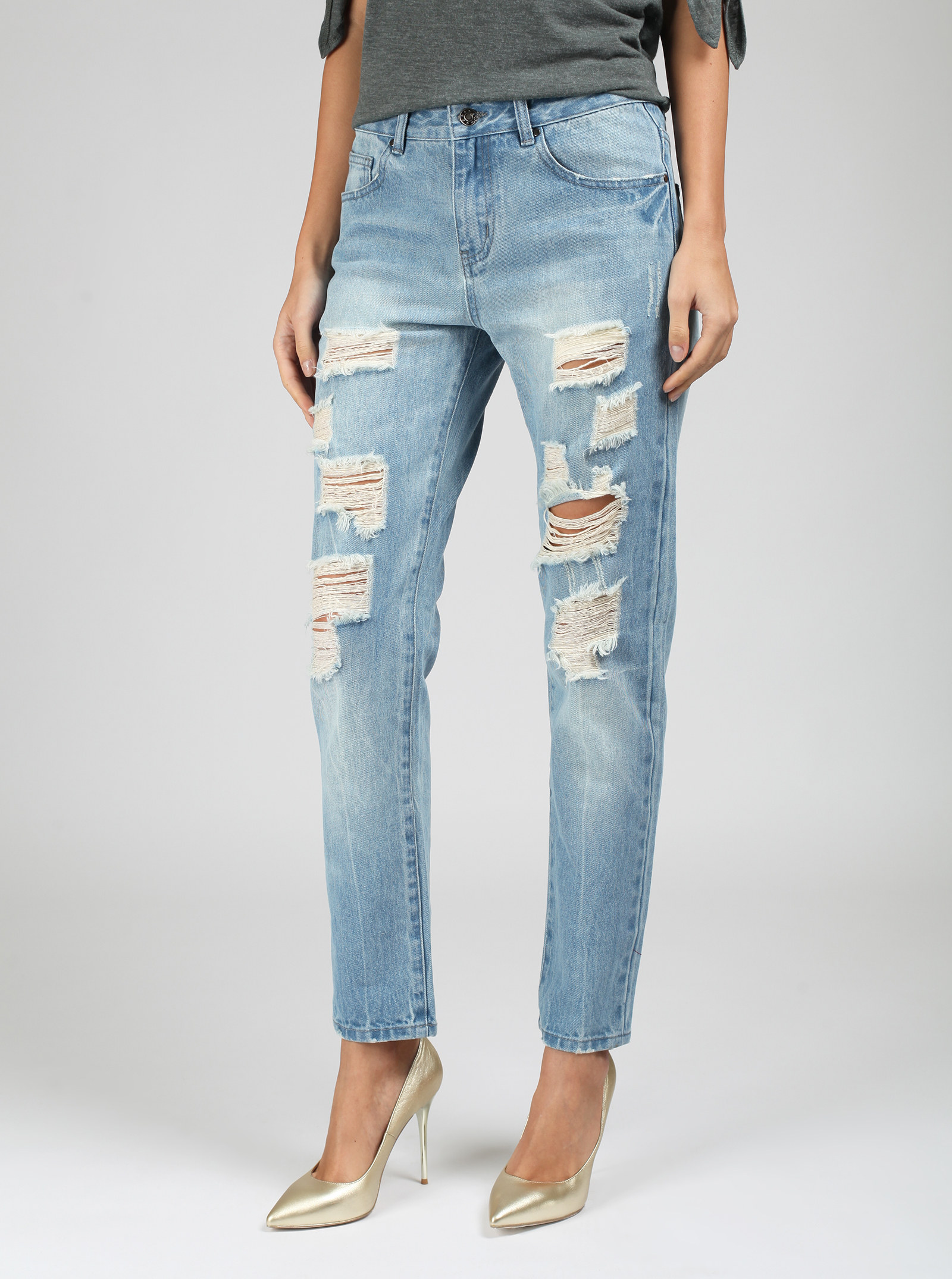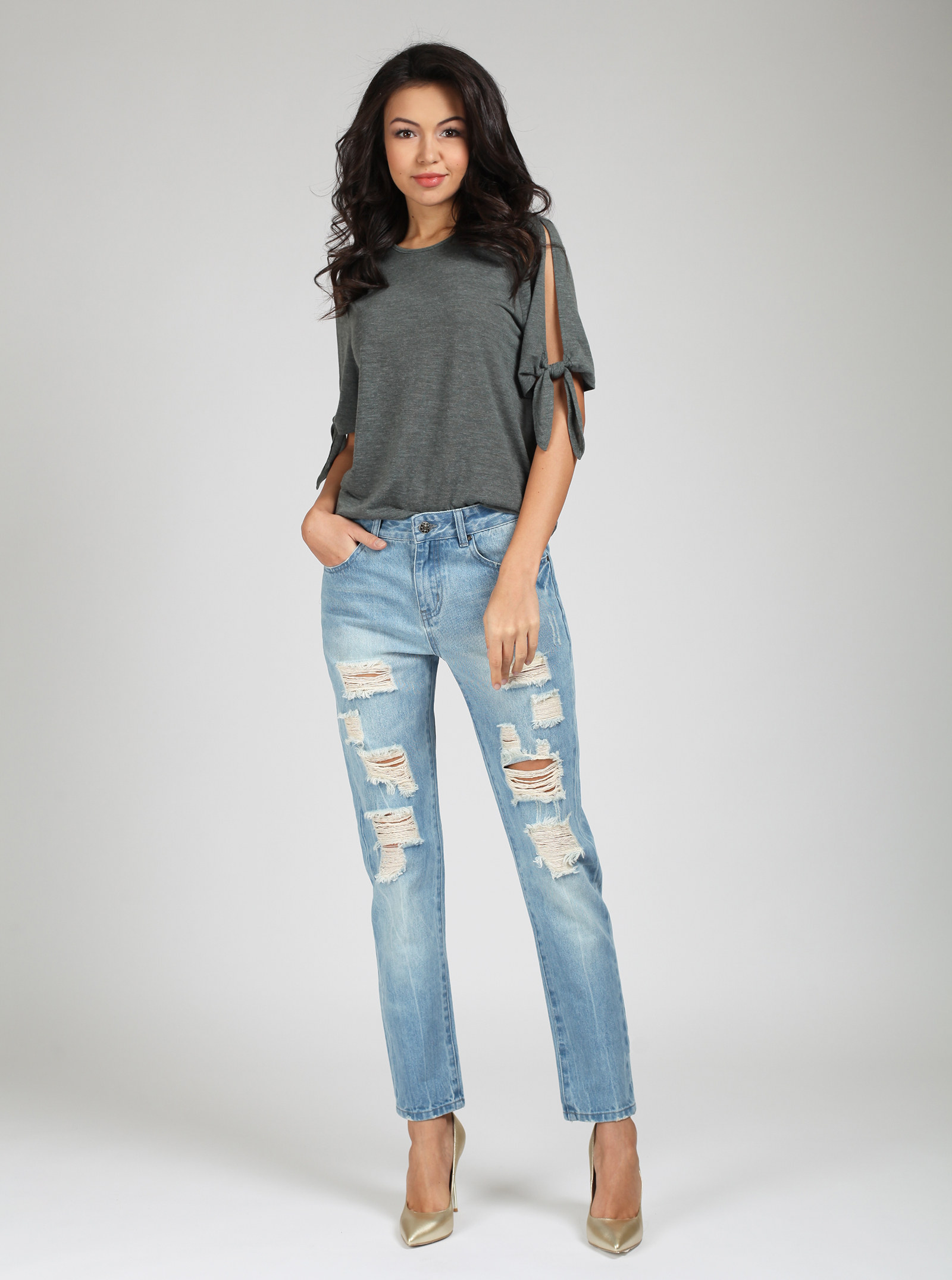 Фирменный фит GRACE. Джинсы бойфренд свободного силуэта со средней посадкой. Модель светлого цвета с модными дырами. Выполнены из хлопка.
