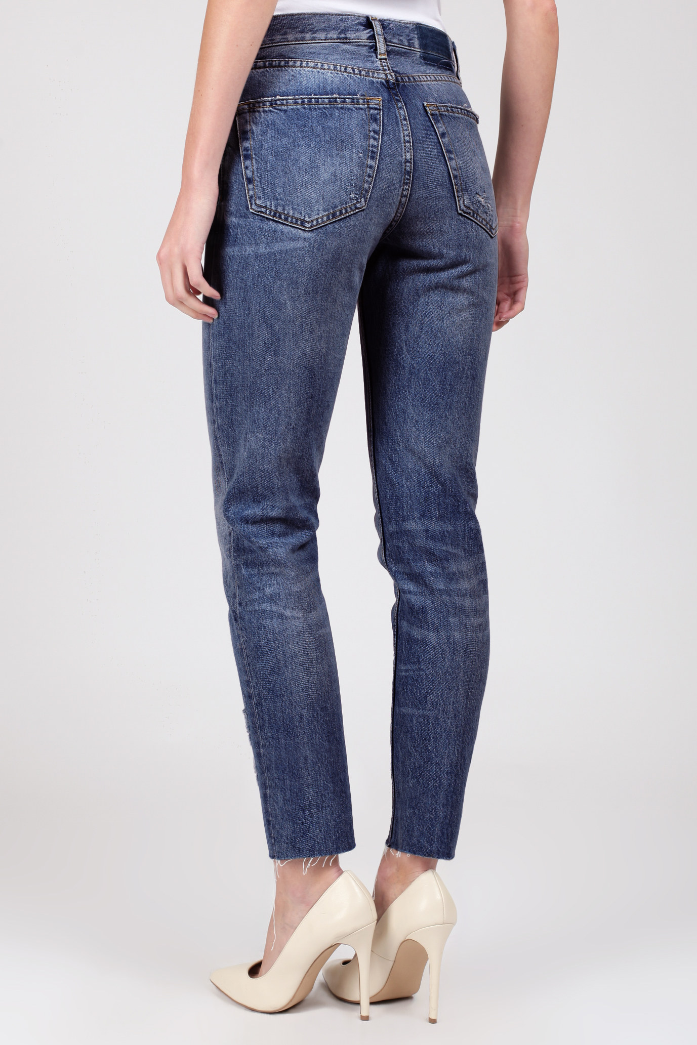 Фирменный фит MONICA. Хит сезона! Джинсы силуэта Slim Mom (зауженный Mom) с высокой посадкой. Стильная модель с трендовыми потретостями. Выполнены из хлопка.