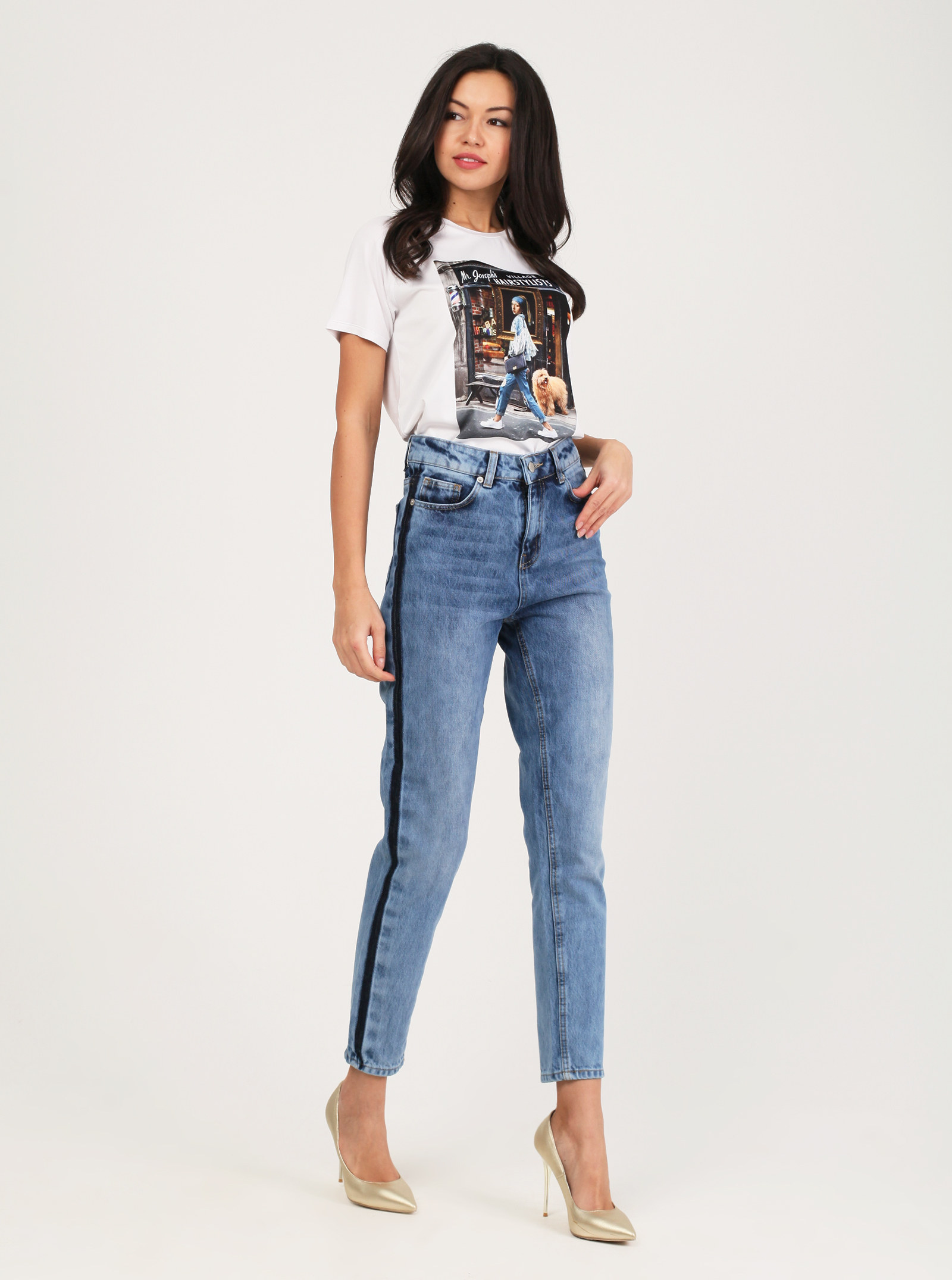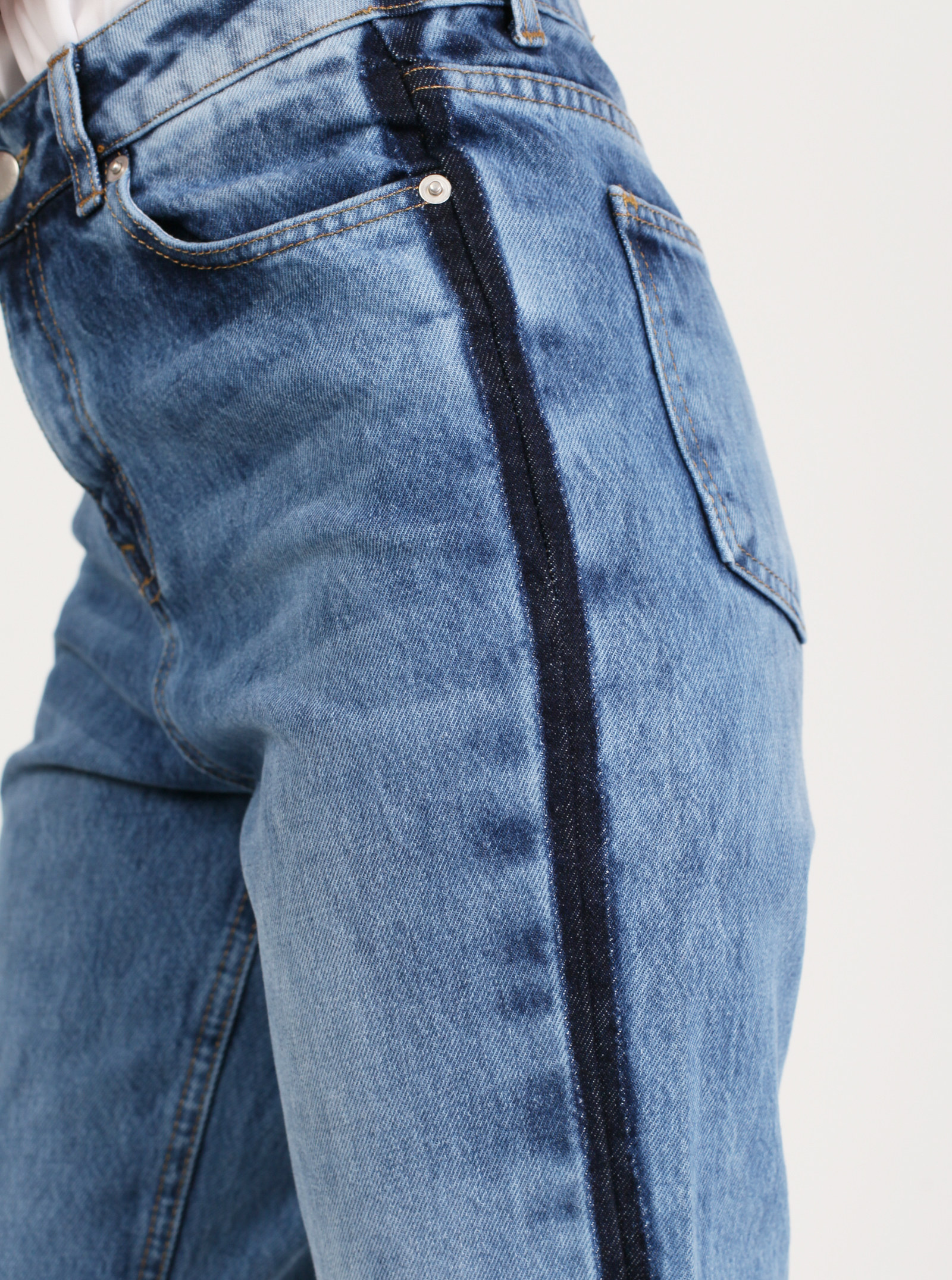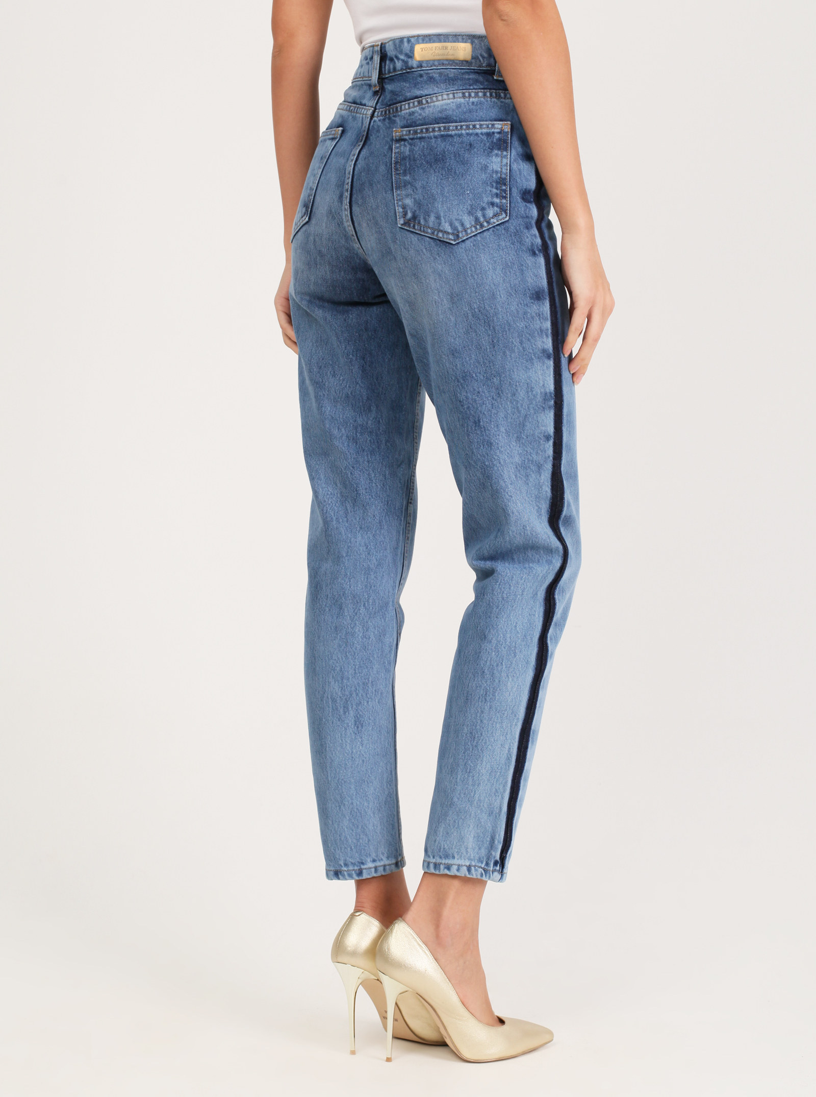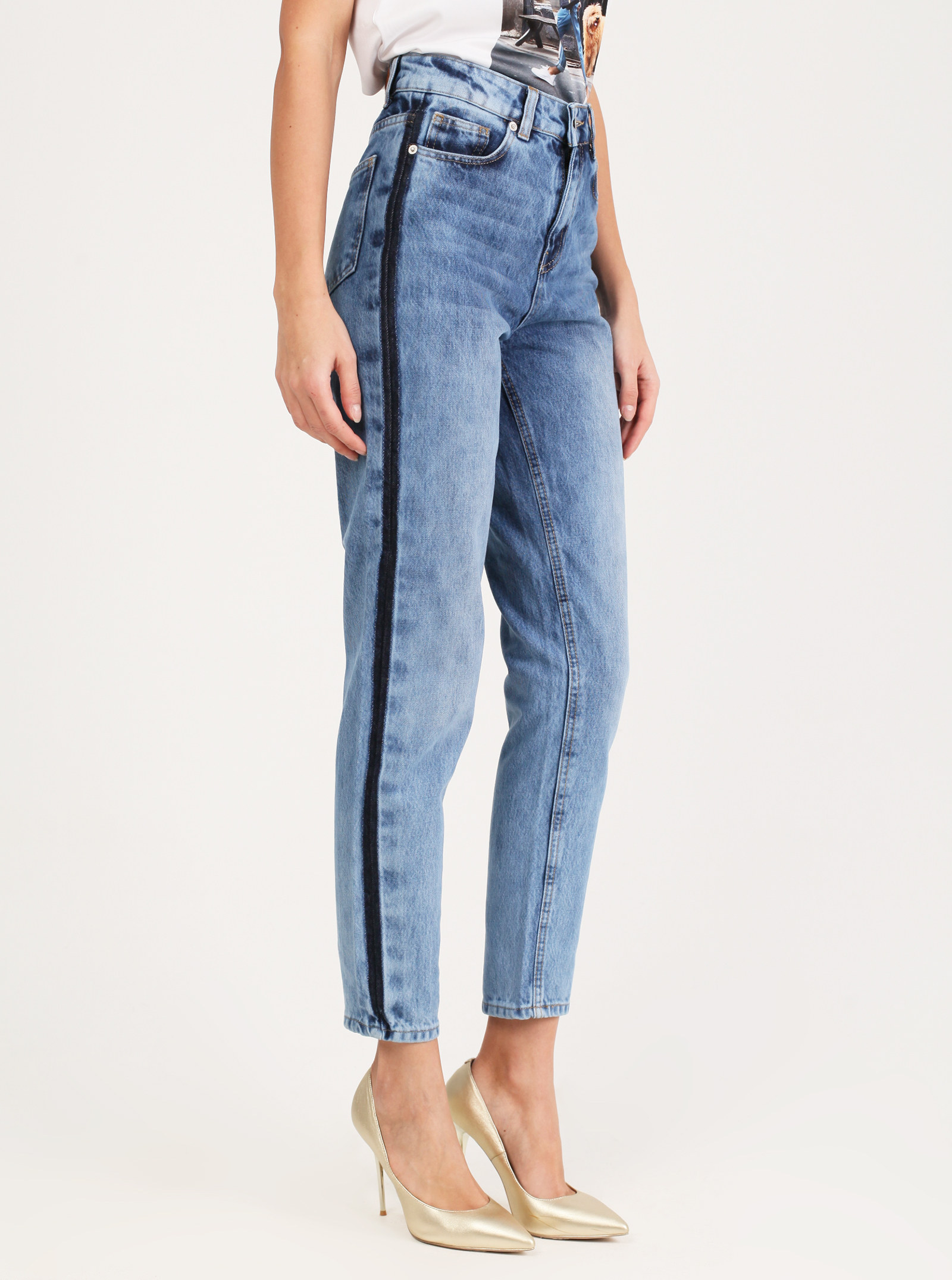 Фирменный фит MARY. Джинсы модного силуэта Mom с высокой посадкой. Стильная модель с трендовыми потретостями и лампасами. Выполнены из хлопка.
