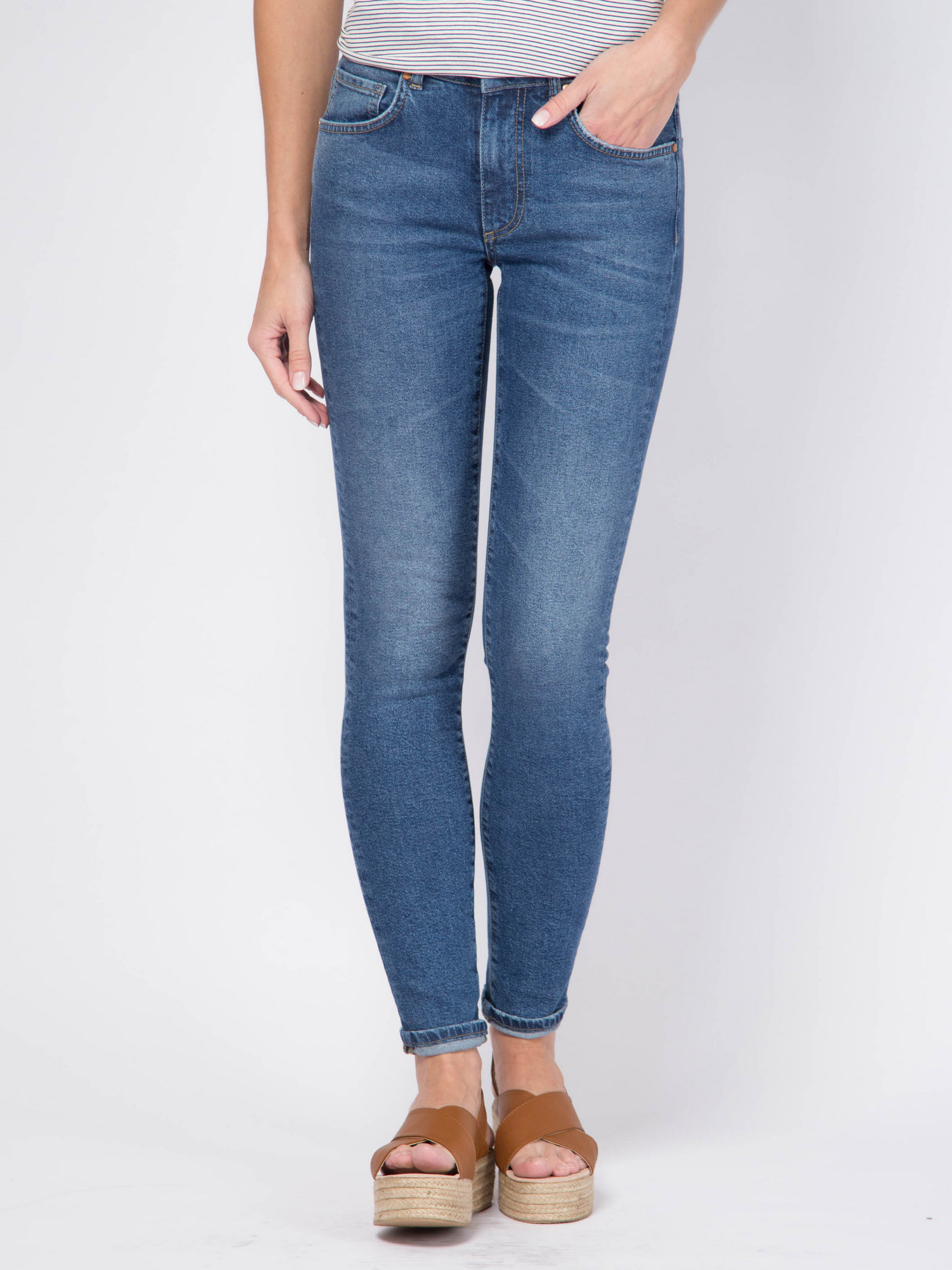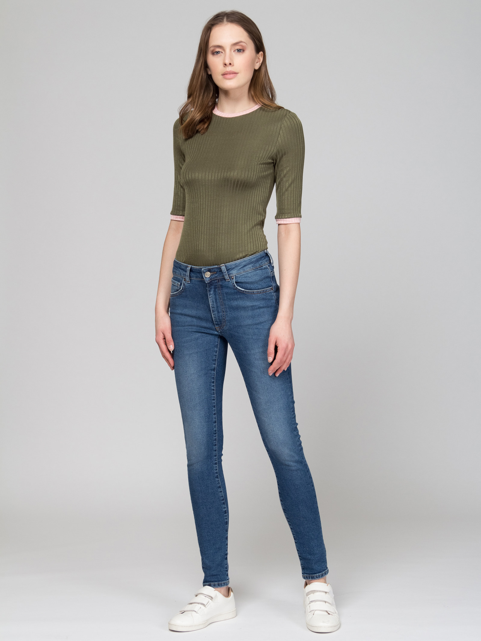 Джинсы с супервысокой посадкой, плотное облегание по бедрам и ногам.