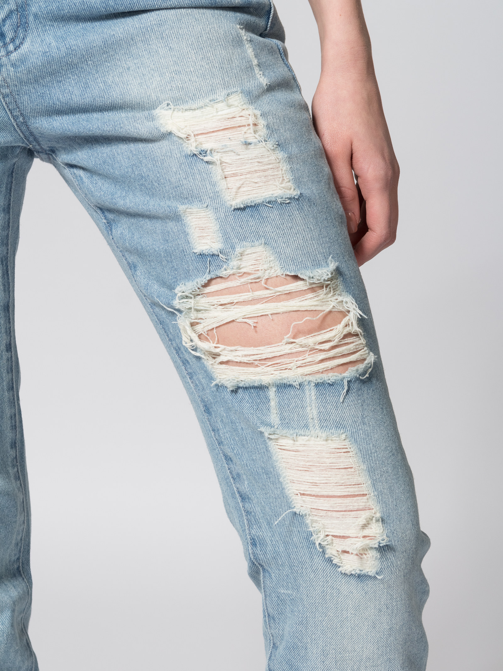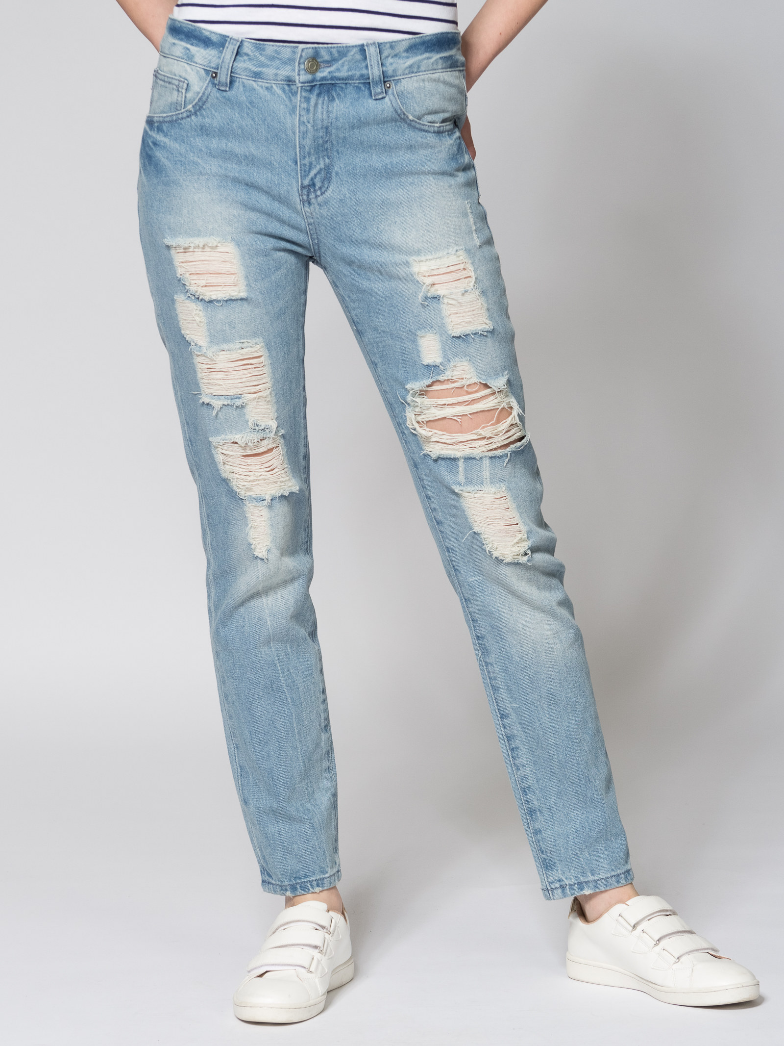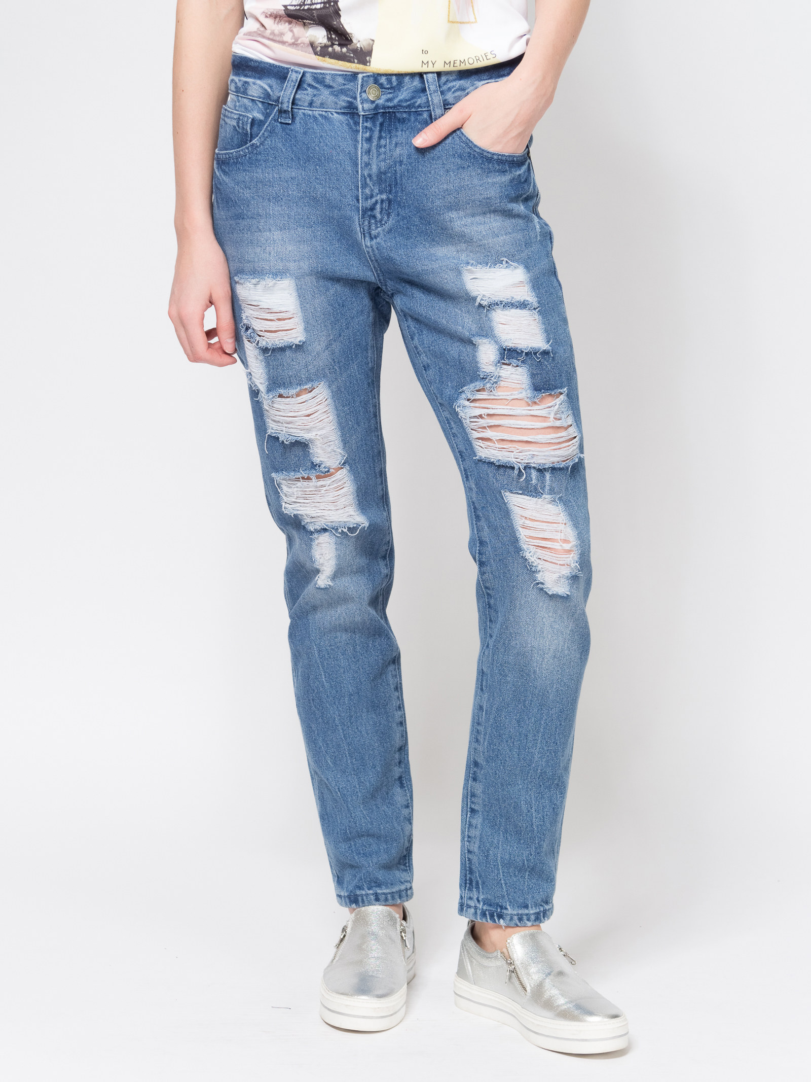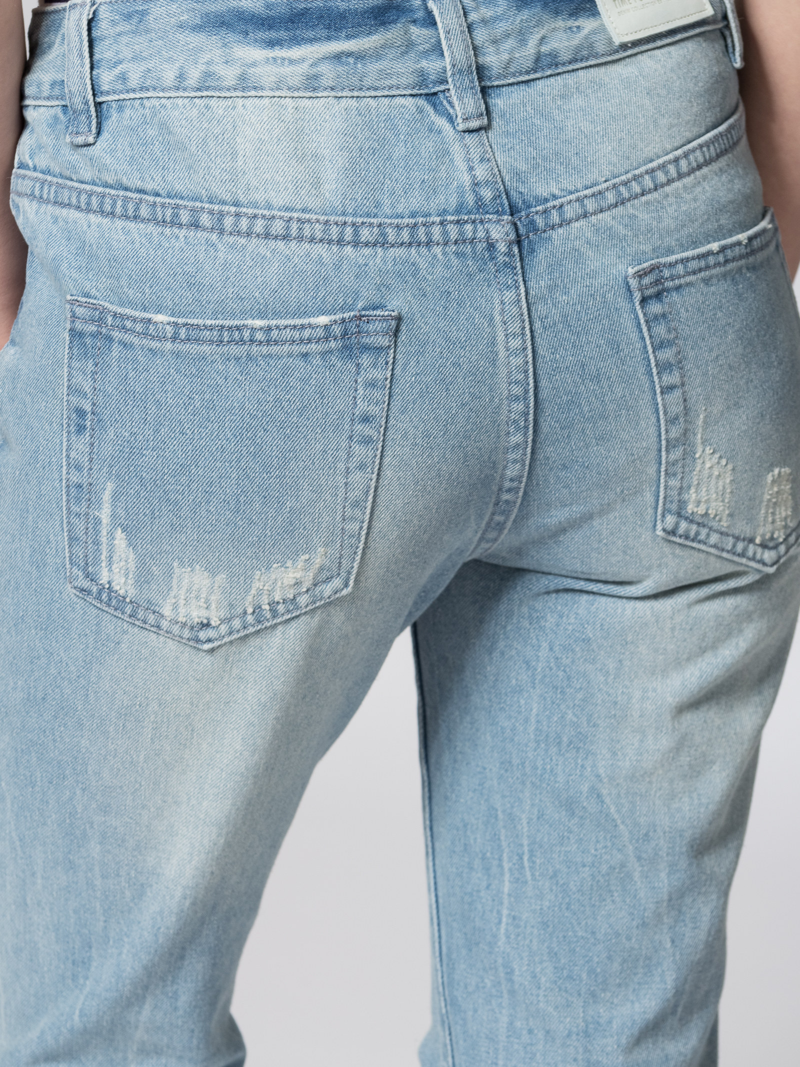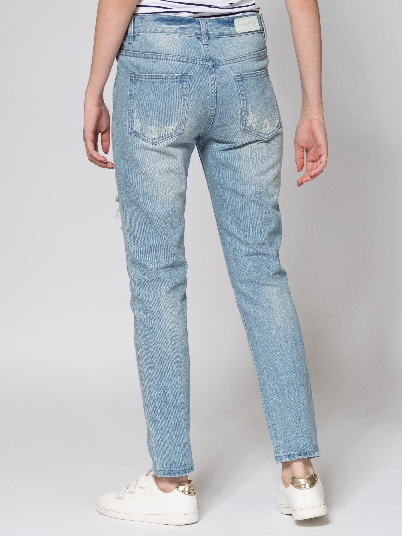 Джинсы со средней посадкой, свободного прилегания, с заниженной линией сидения, слегка зауженные книзу.