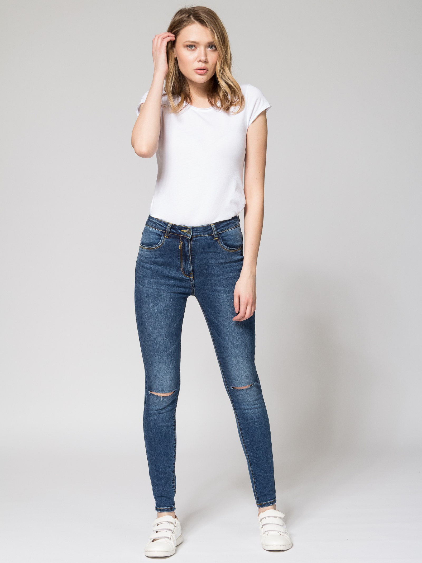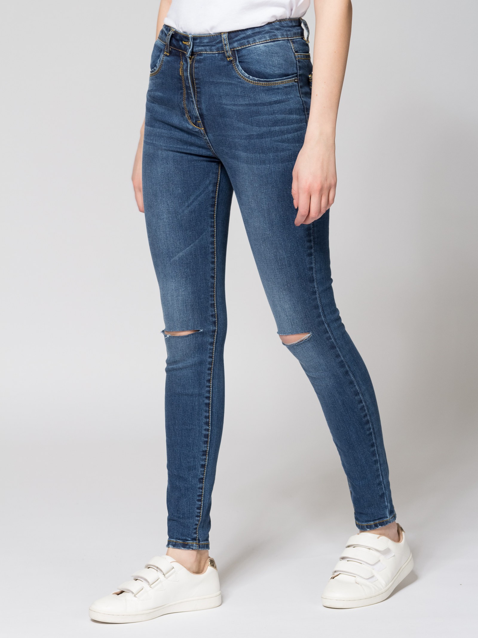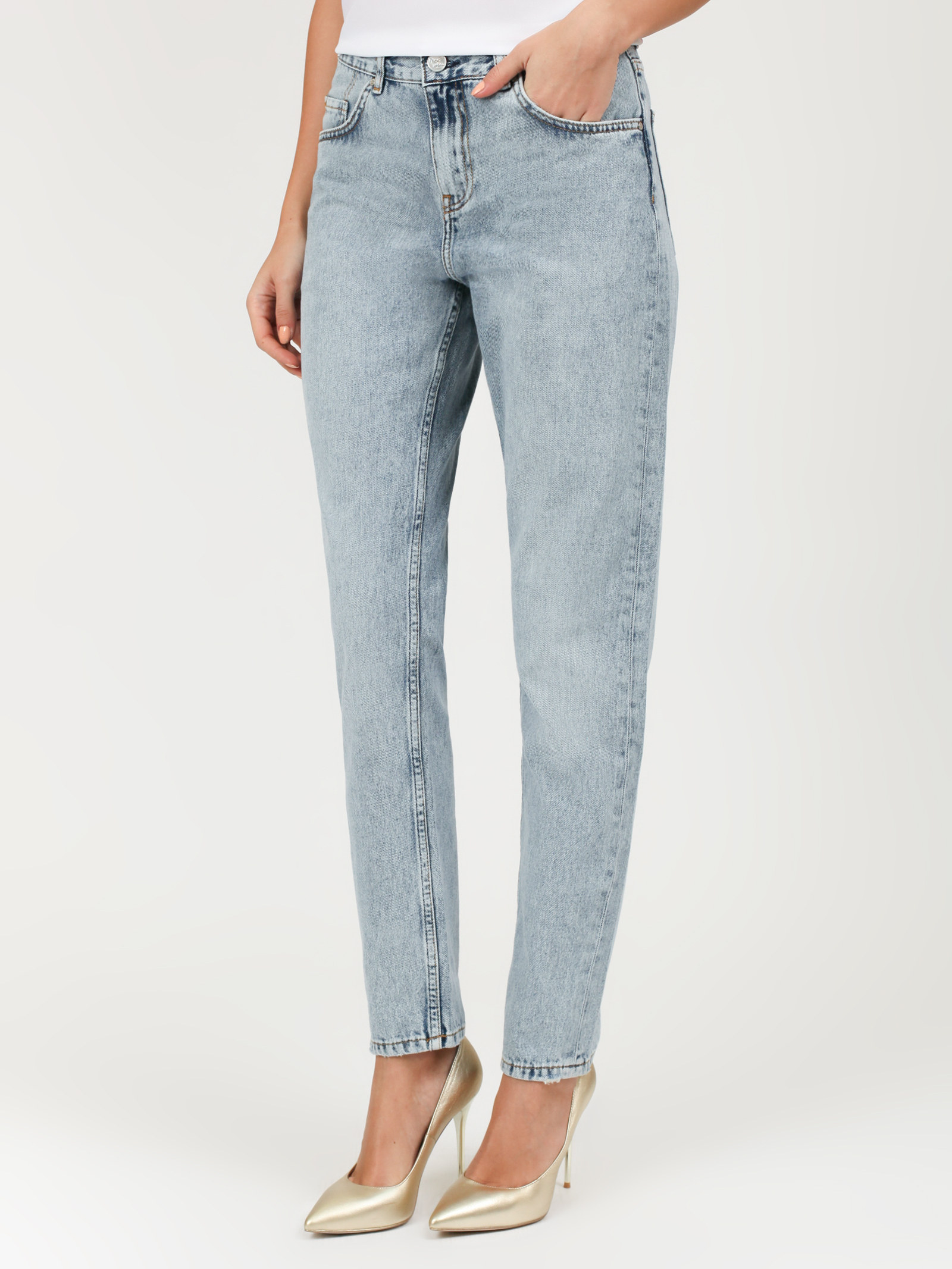 Фирменный фит MARY. Джинсы модного силуэта Mom с высокой посадкой и трендовыми потертостями. Выполнены из хлопка.