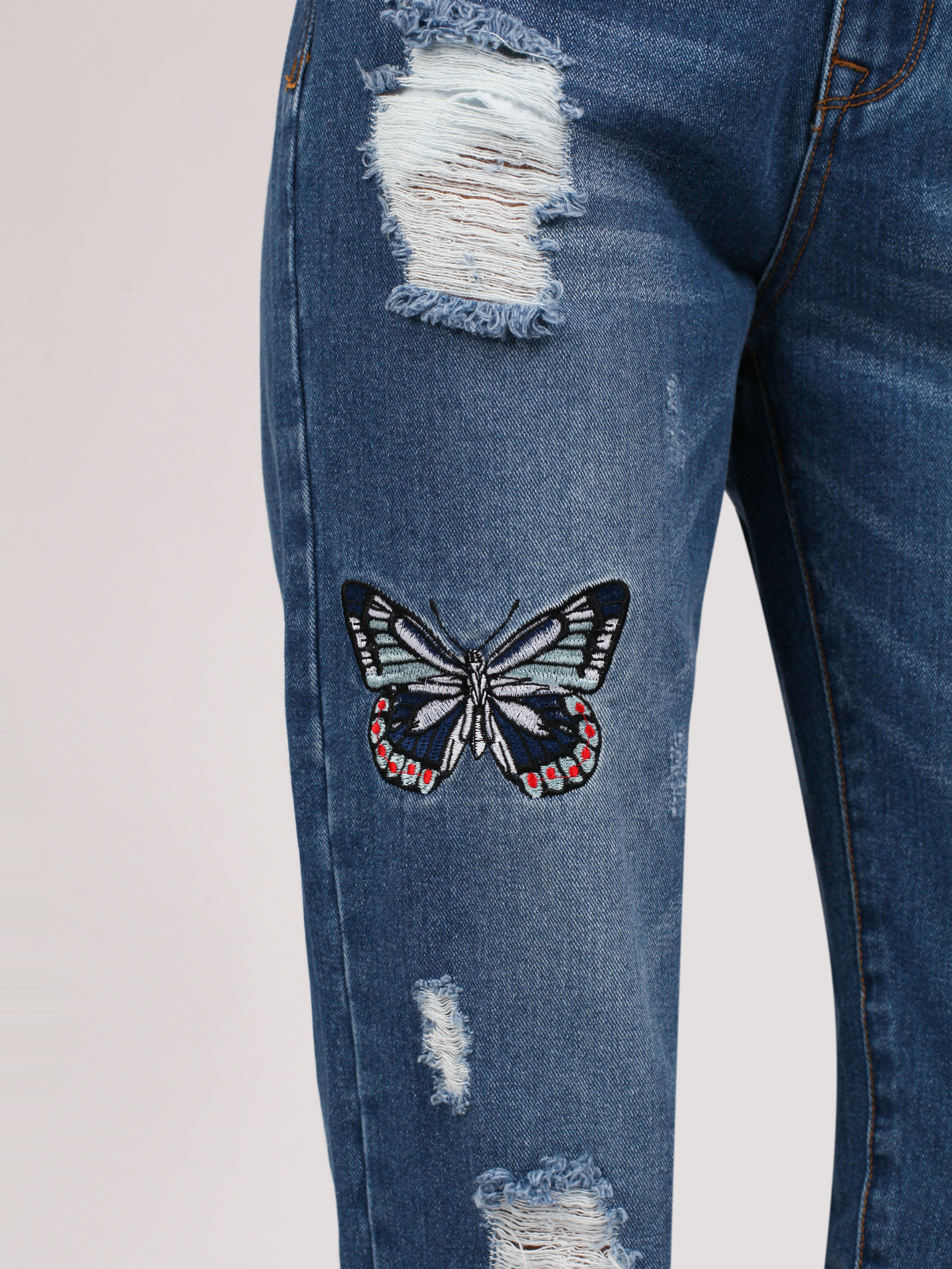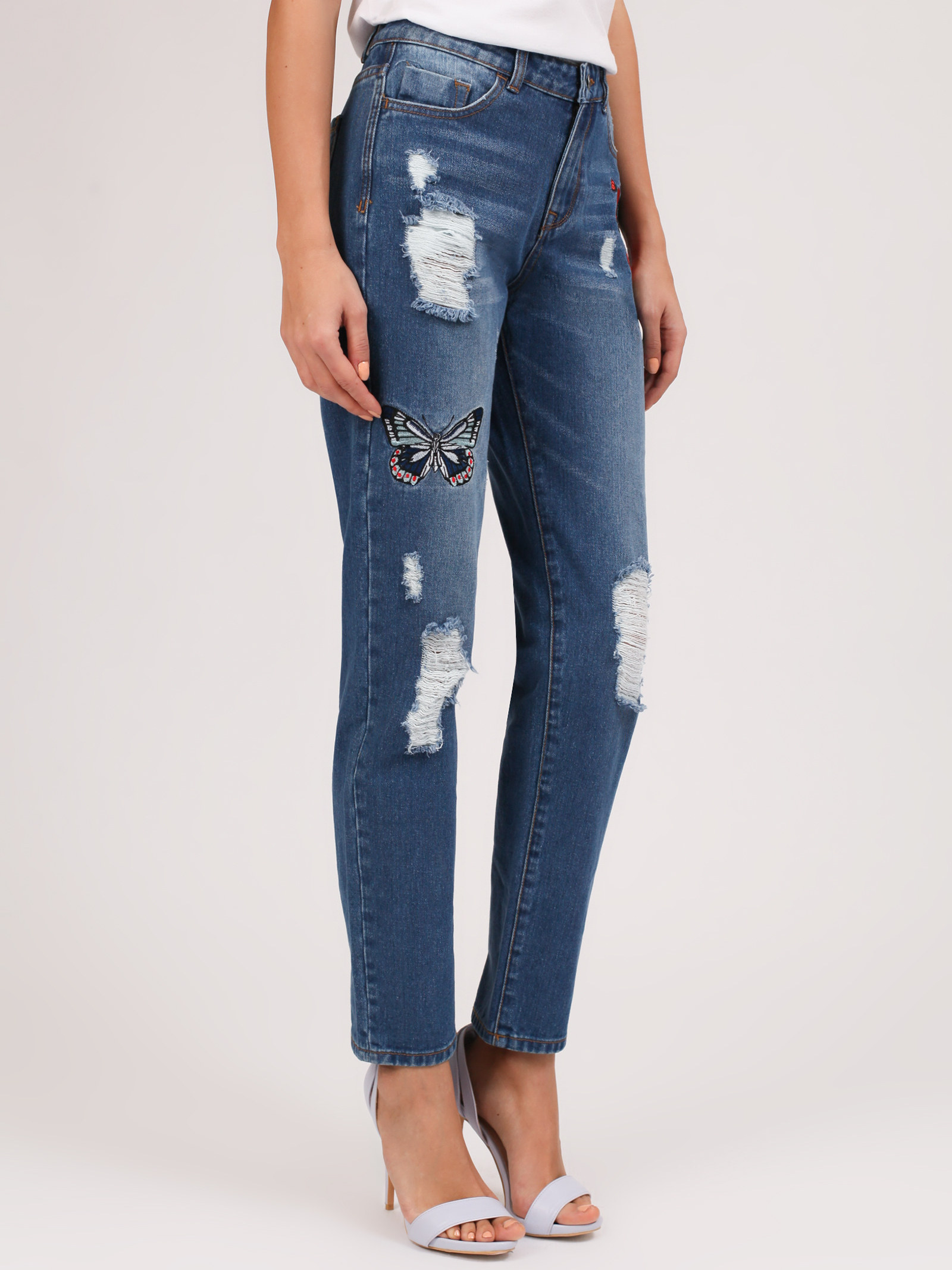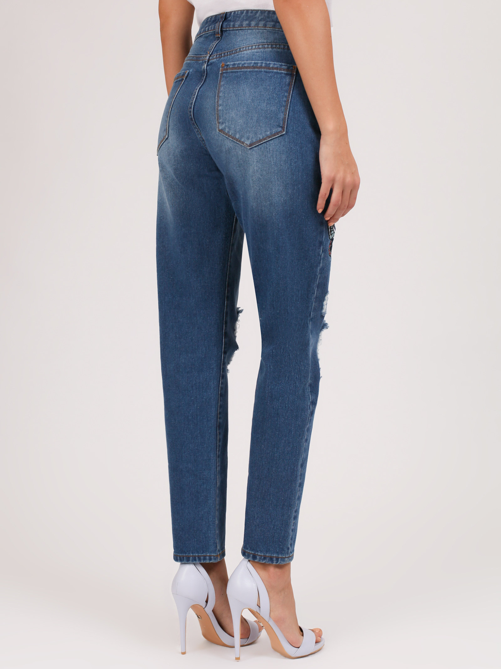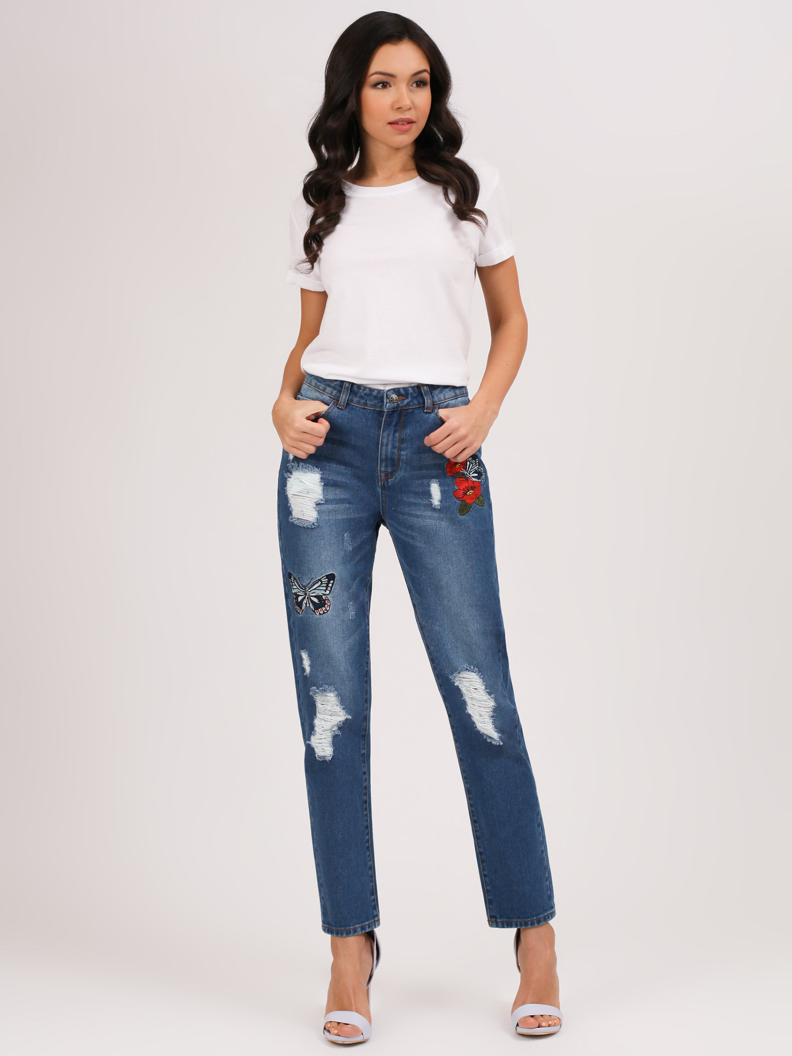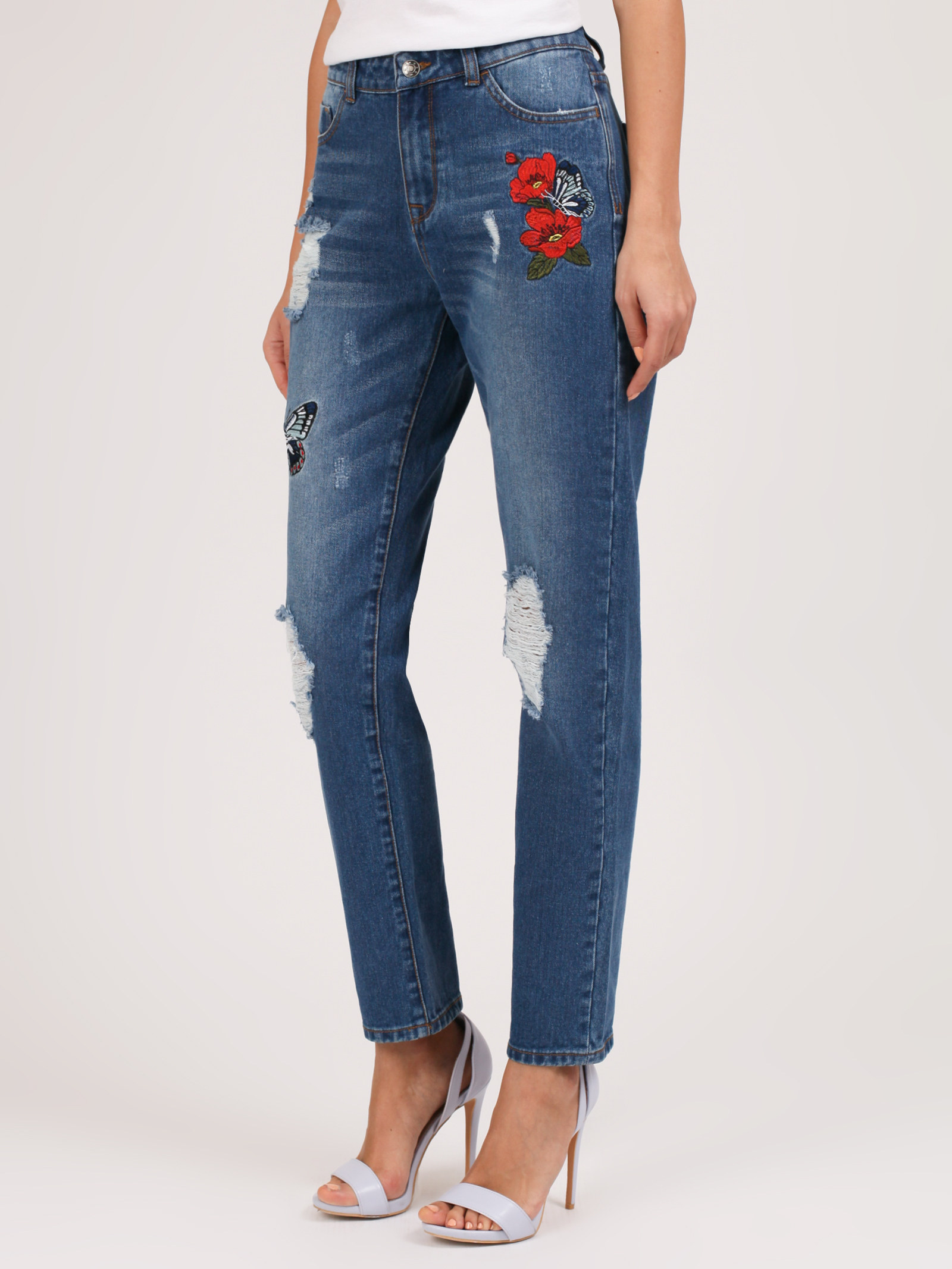 Фирменный фит GRACE. Джинсы бойфренд свободного силуэта со средней посадкой. Декорированы модными вышивками. Выполнены из хлопка.