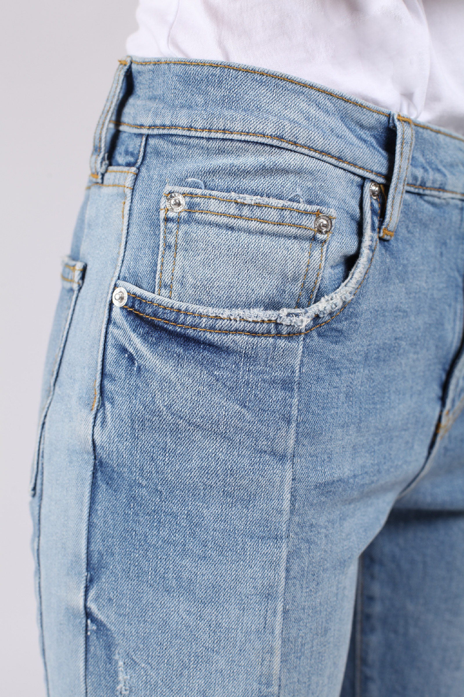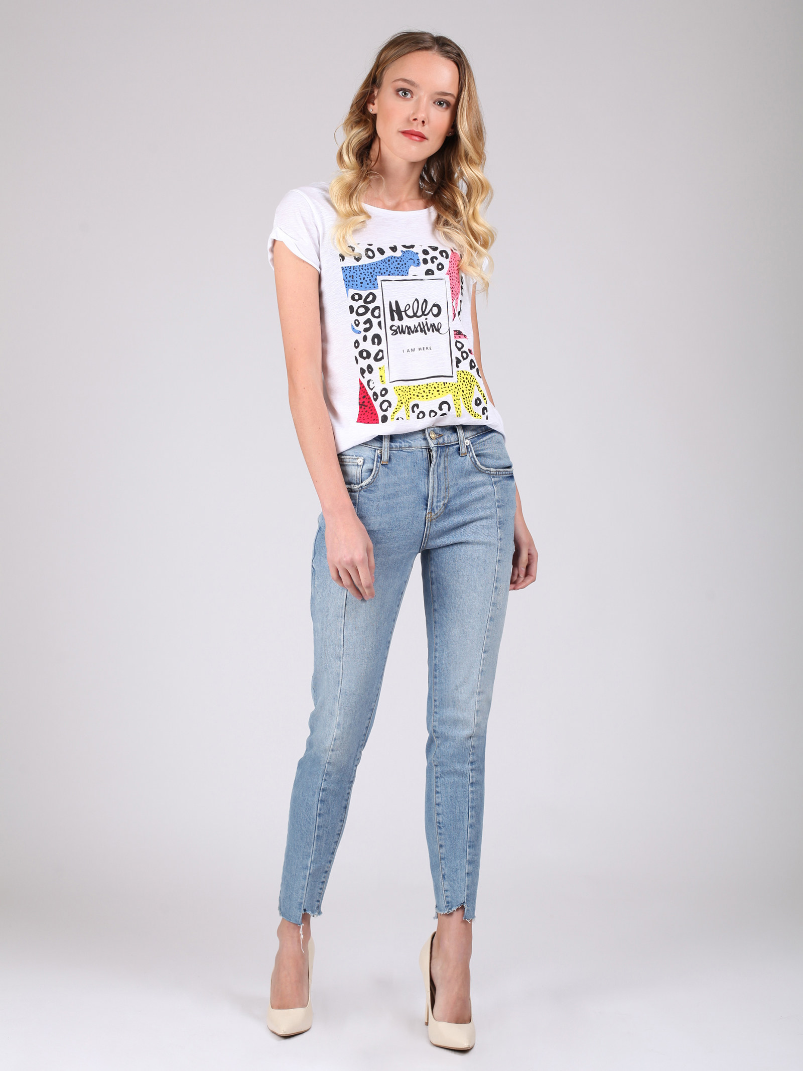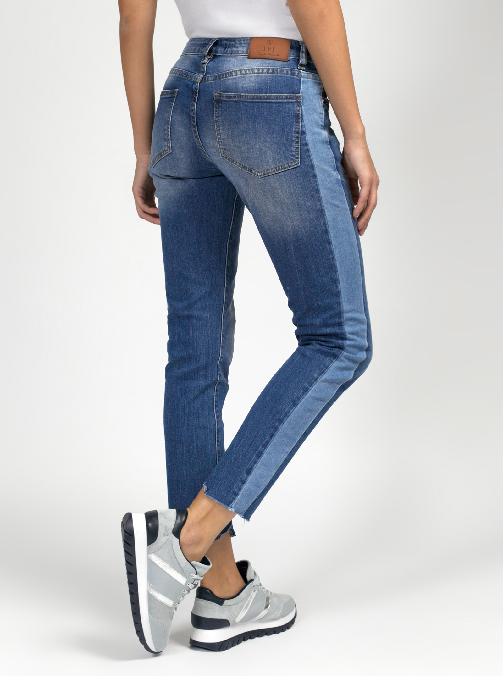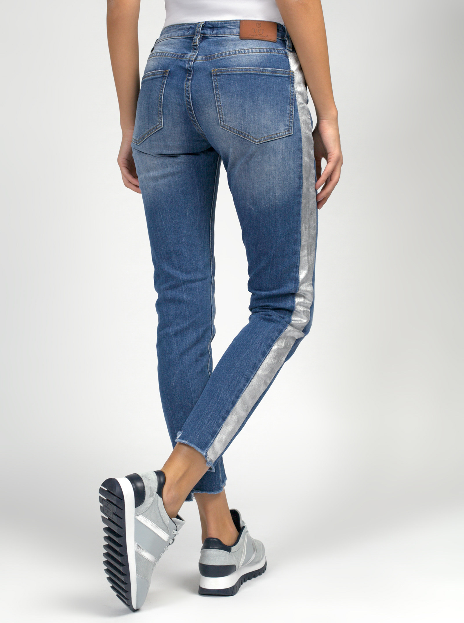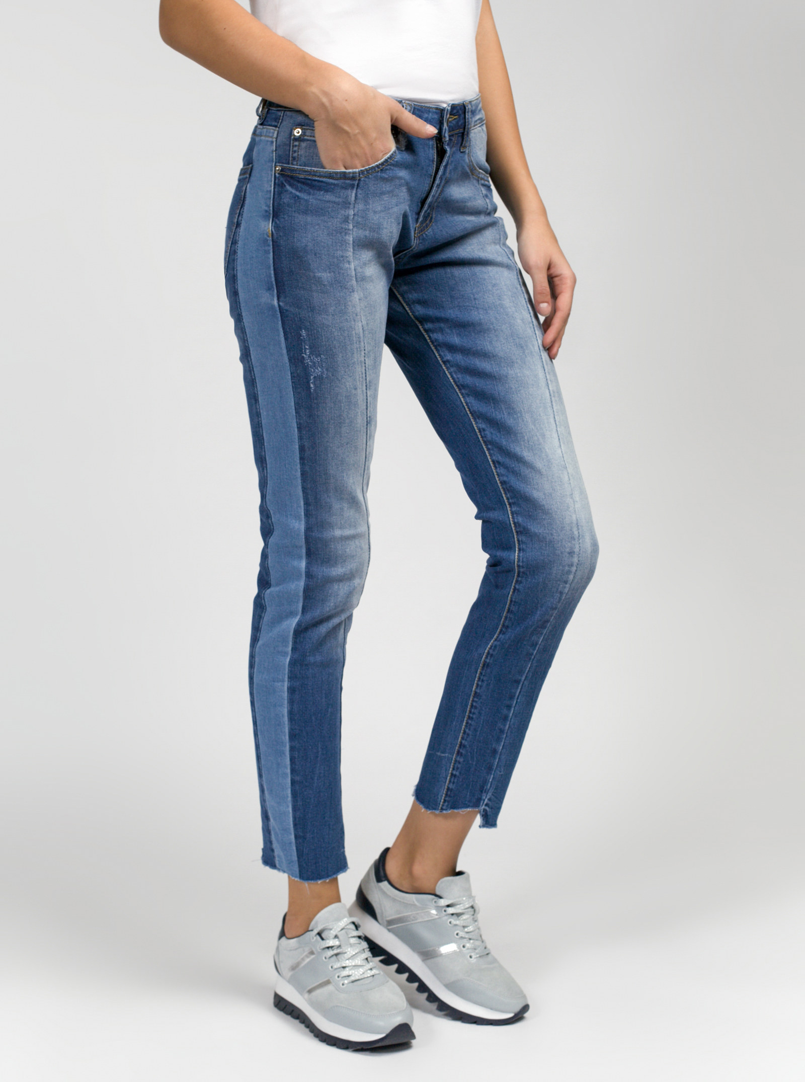 Фирменный фит CINDY. Джинсы-сигареты полуприлегающего силуэта со средней посадкой. По бокам модные вставки-лампасы. Выполнены из хлопка с эластаном.