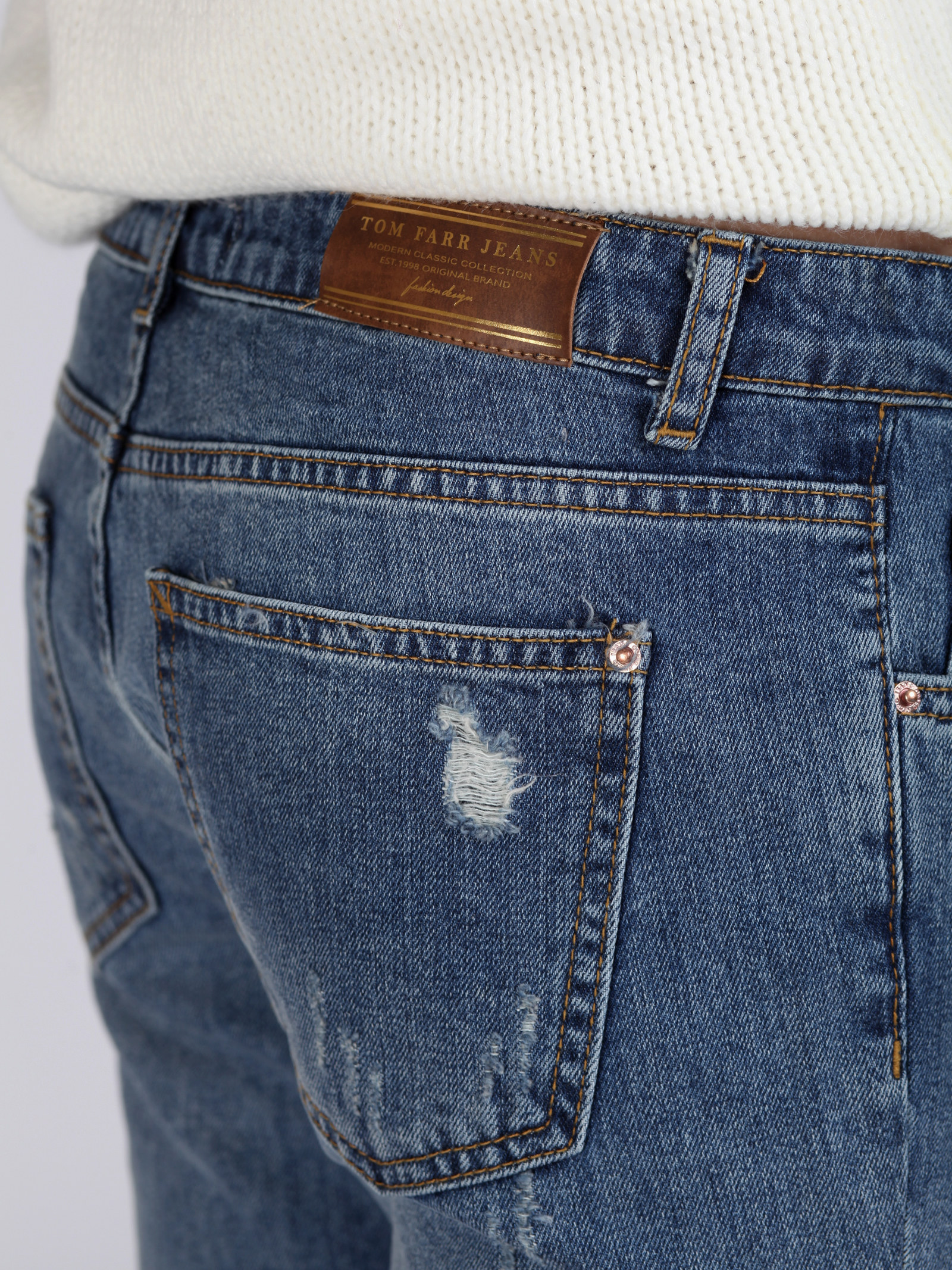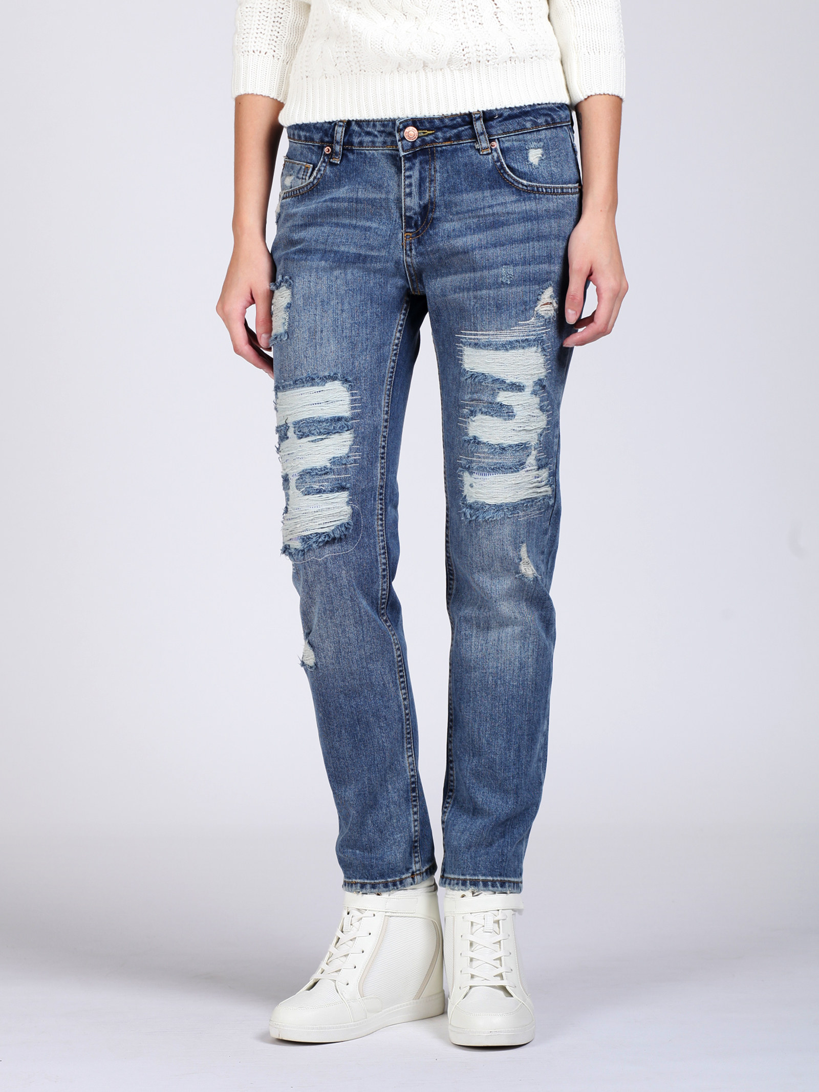 Джинсы со средней посадкой, зауженные книзу, укороченные.