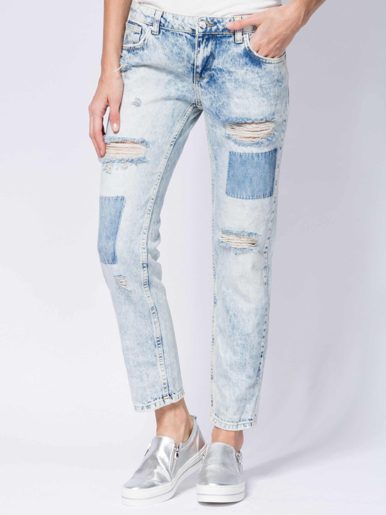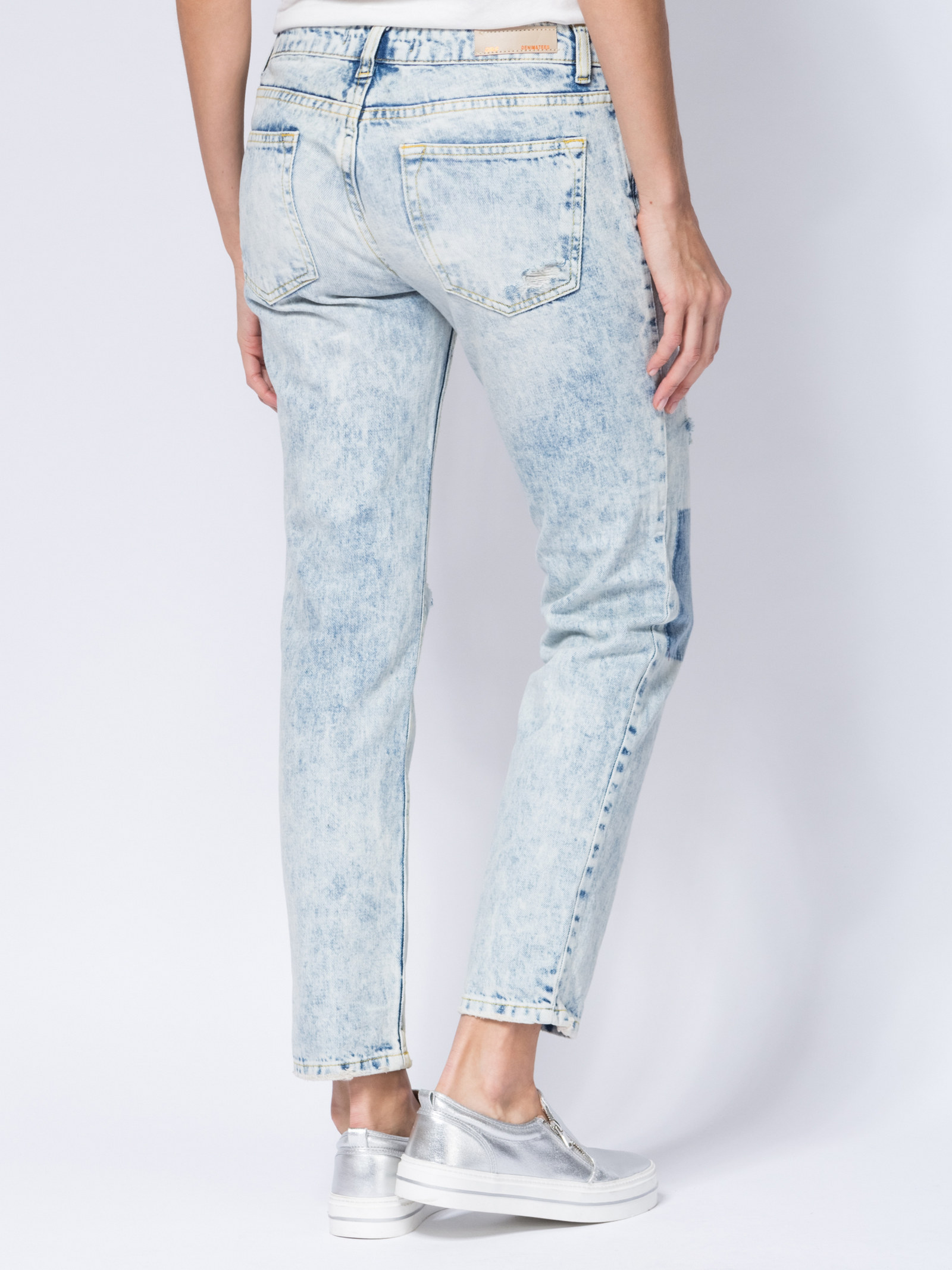 Джинсы со средней посадкой, зауженные книзу, укороченные.