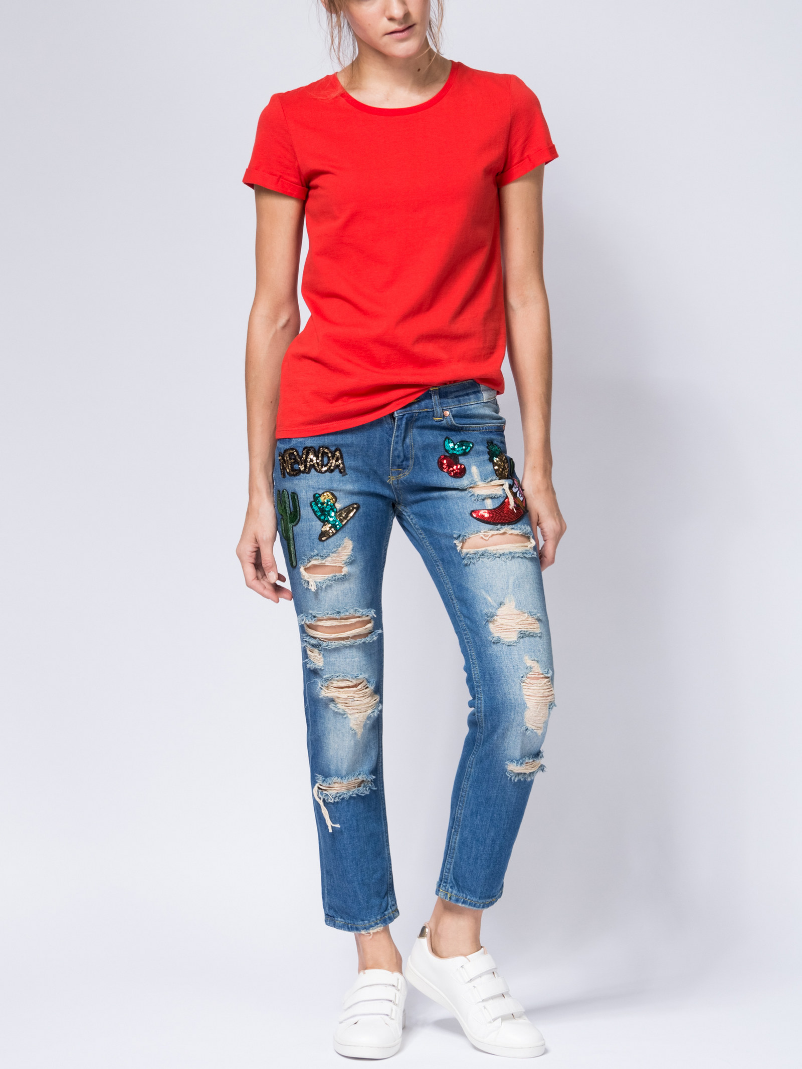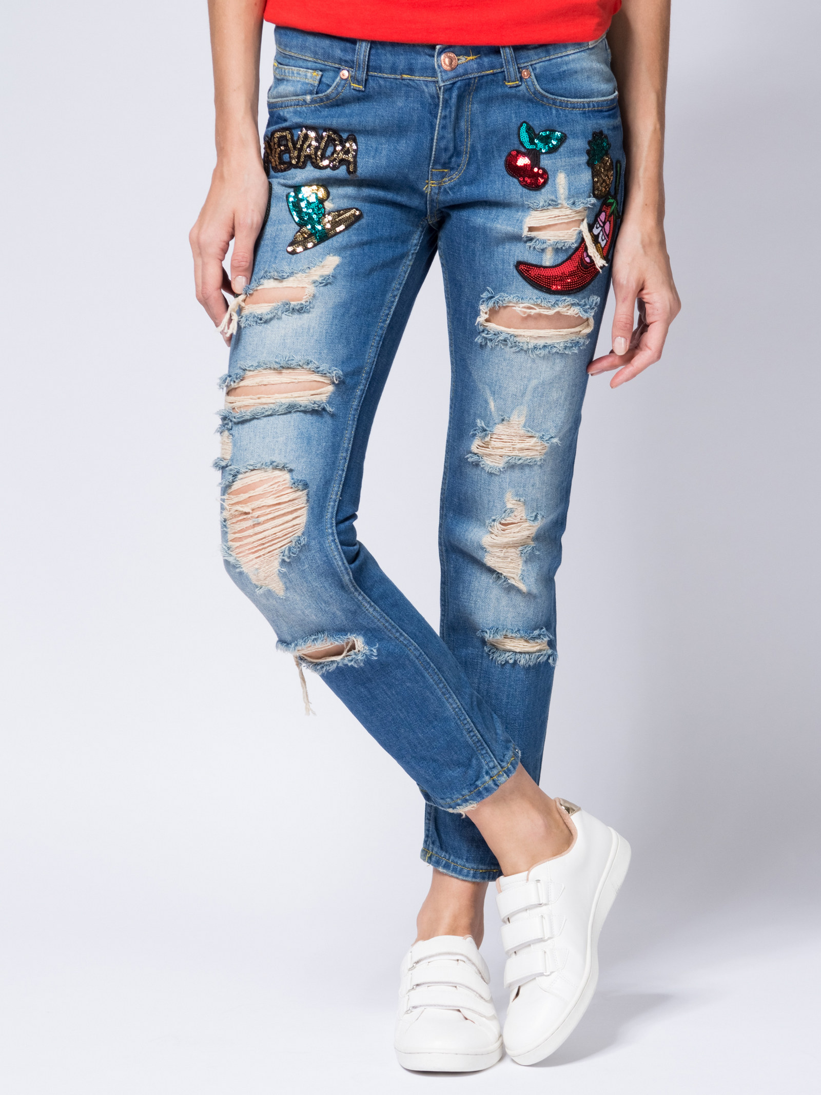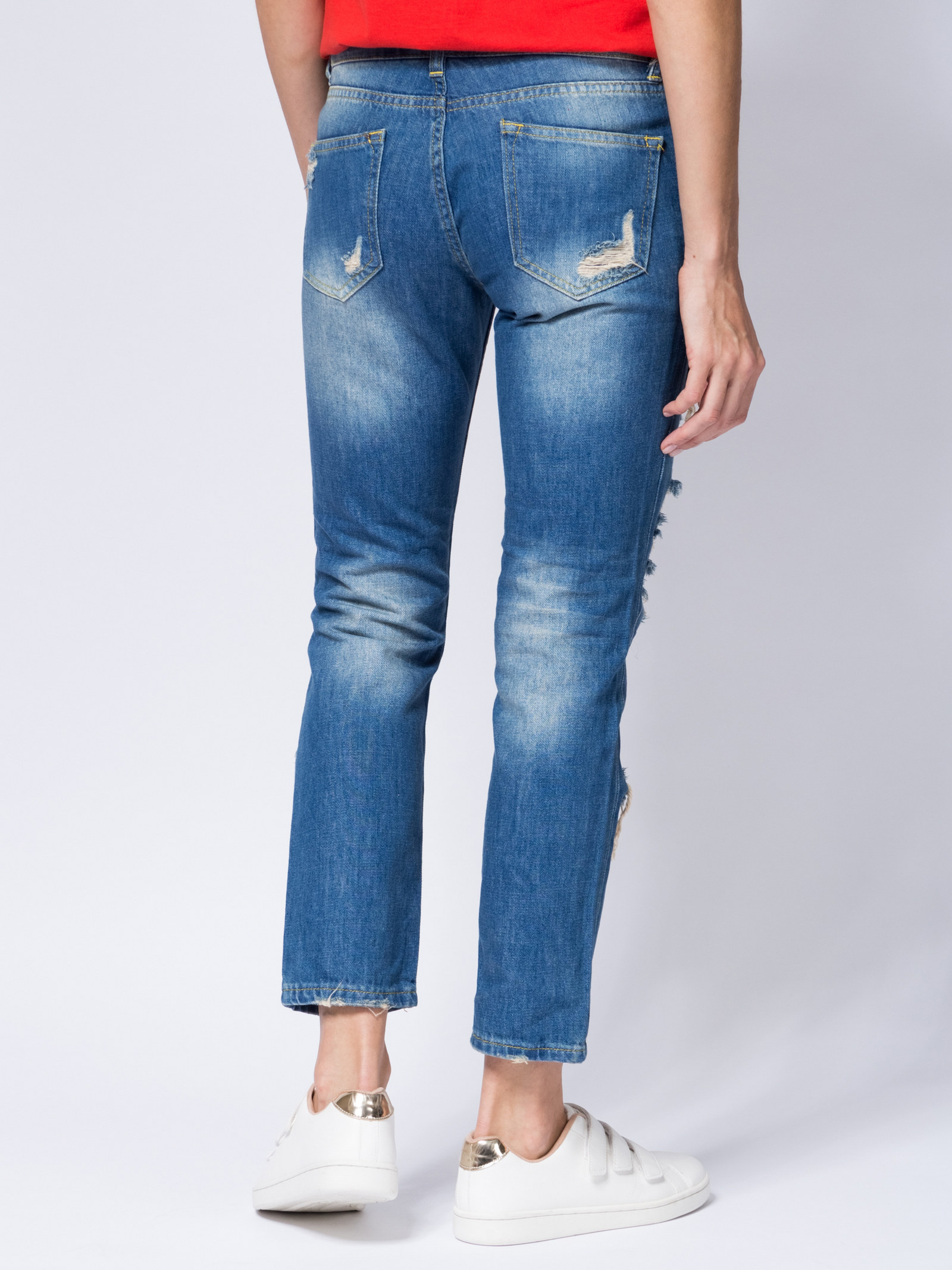Джинсы со средней посадкой, зауженные книзу, укороченные.