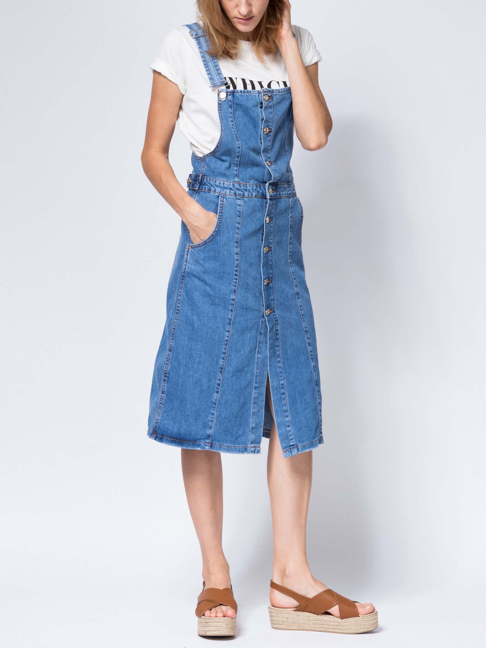 Полуприлегающий комбинезон средней длины.