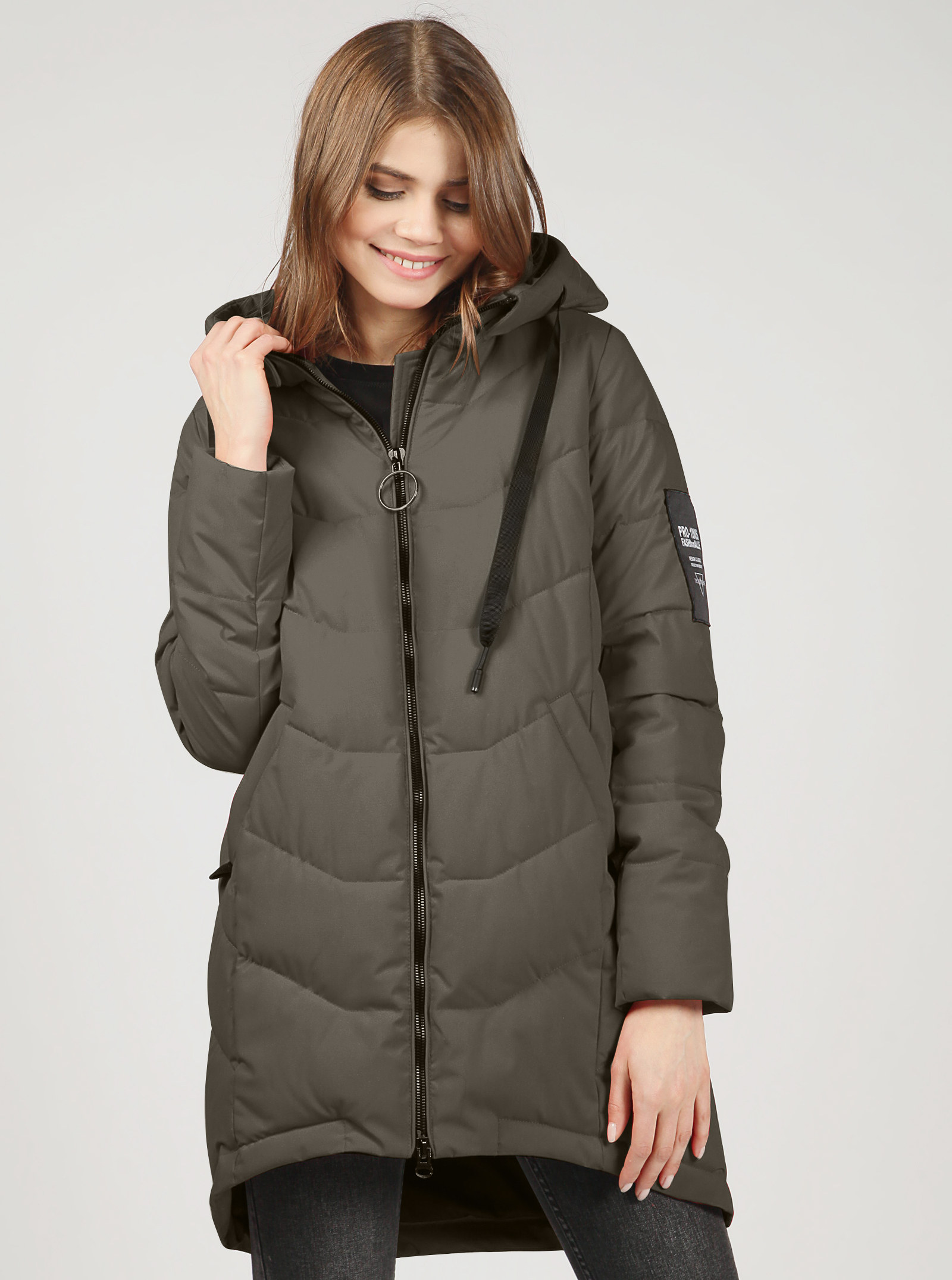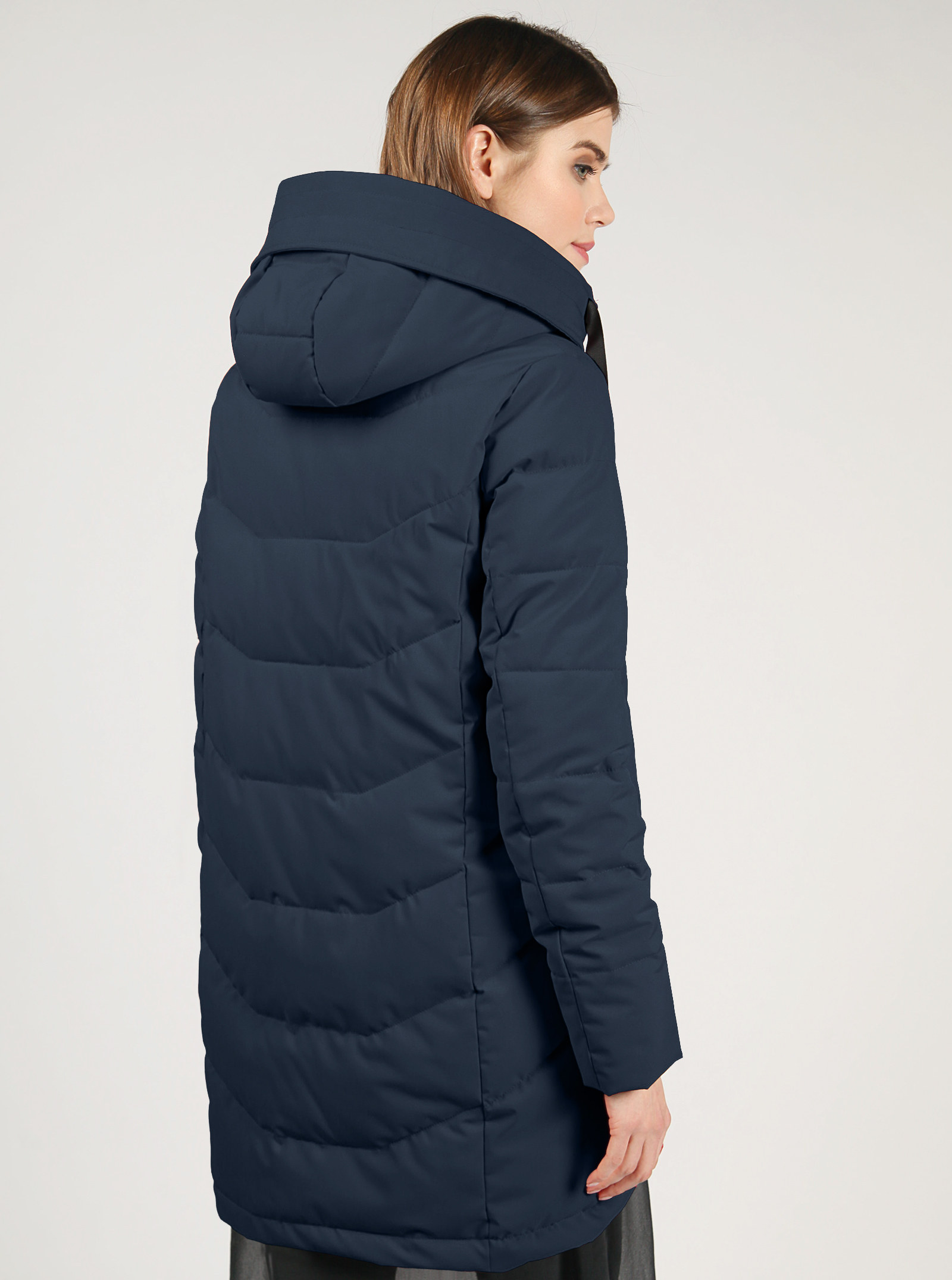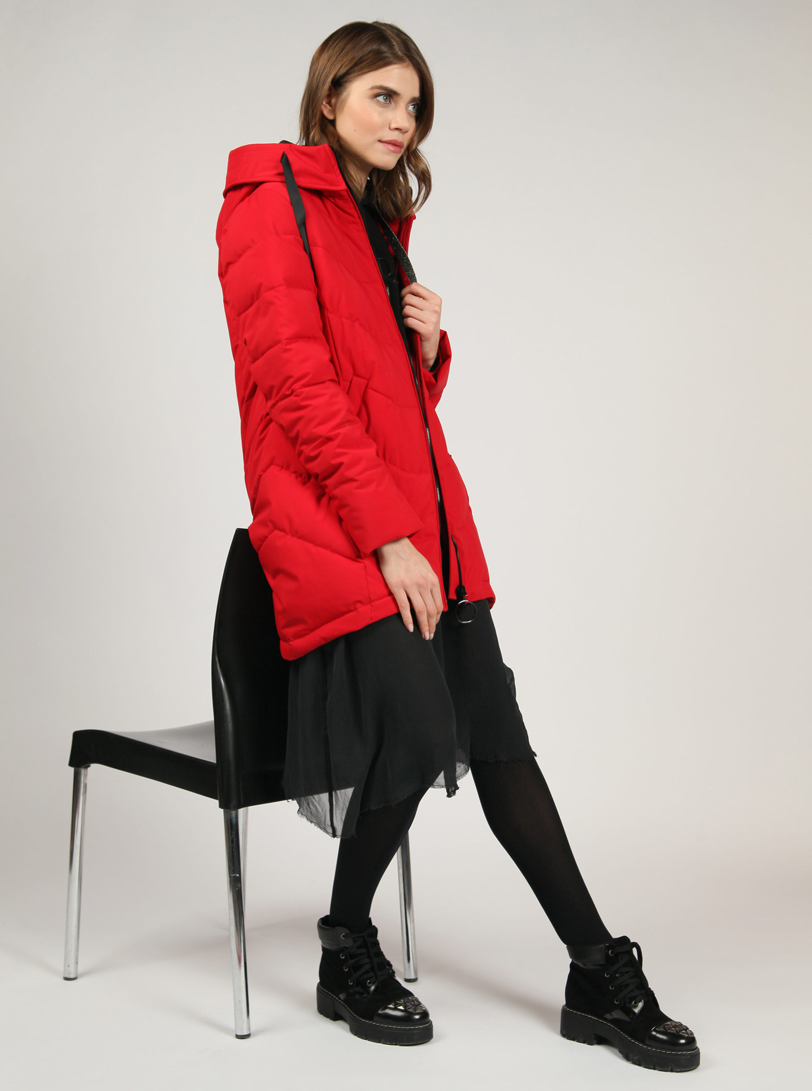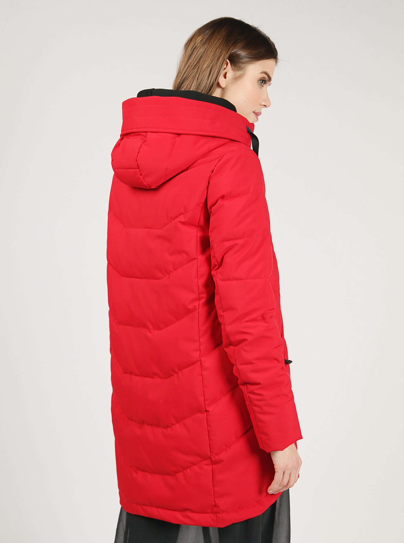 Стеганый пуховик прямого силуэта, длина до колен О-образным низом. Интересная стежка визуально стройнит фигуру. Застежка на молнию, внутри предусмотрена ветрозащитная планка. Контрастная фурнитура и подкладка выигрышно подчеркивает современный дизайн модели. Изделие выполнено из плотной матовой ткани с ветро и водоотталкивающим покрытием.