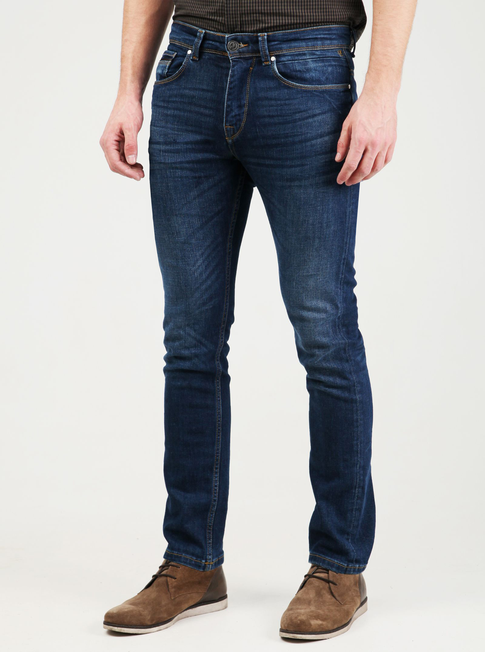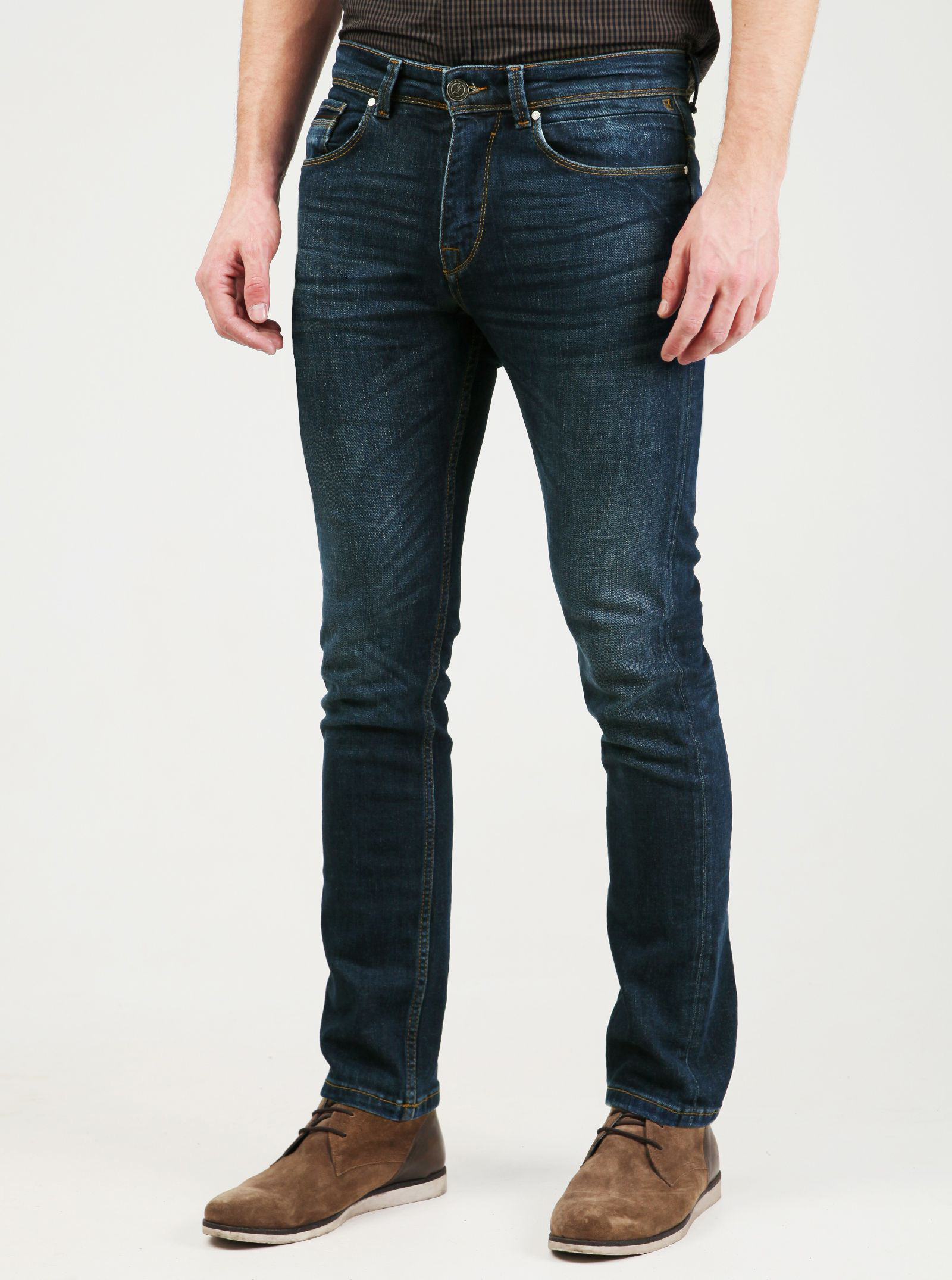 Фирменный фит JOHN. Полуприлегающие джинсы со слегка зауженными книзу штанинами. Модная модель с потертостями и стильными деталями. Такие джинсы ассоциируются с прогрессивной простотой, стилем и удобством. Выполнены из денима с эластаном.