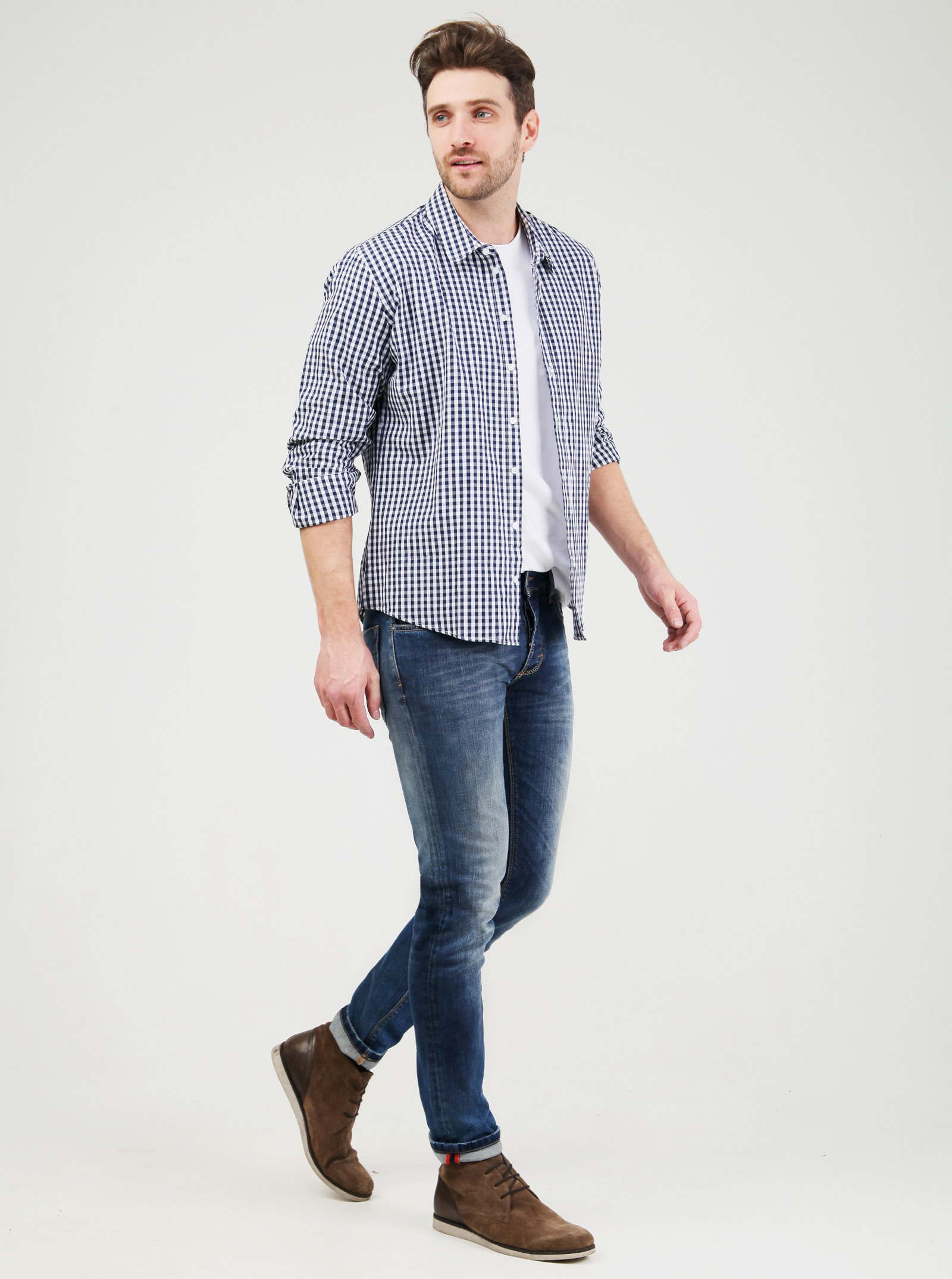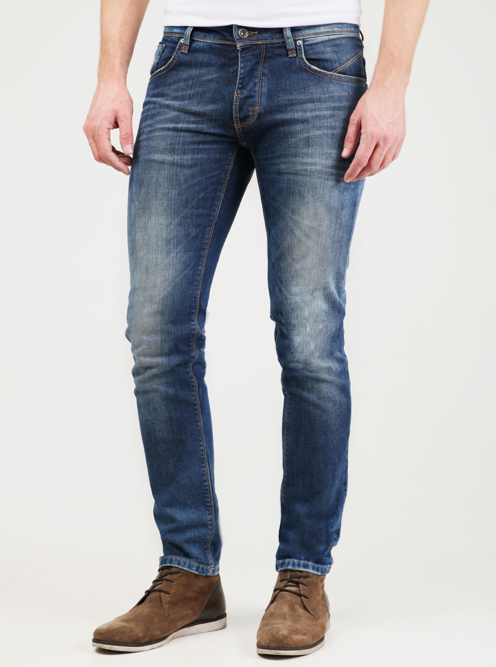 Фирменный фит RYAN. Культовые джинсы полуприлегающего кроя, со слегка зауженными книзу штанинами. Стильная модель с потертостями и застежкой на болтах. Выполнены из хлопкового денима с небольшим процентом эластана.