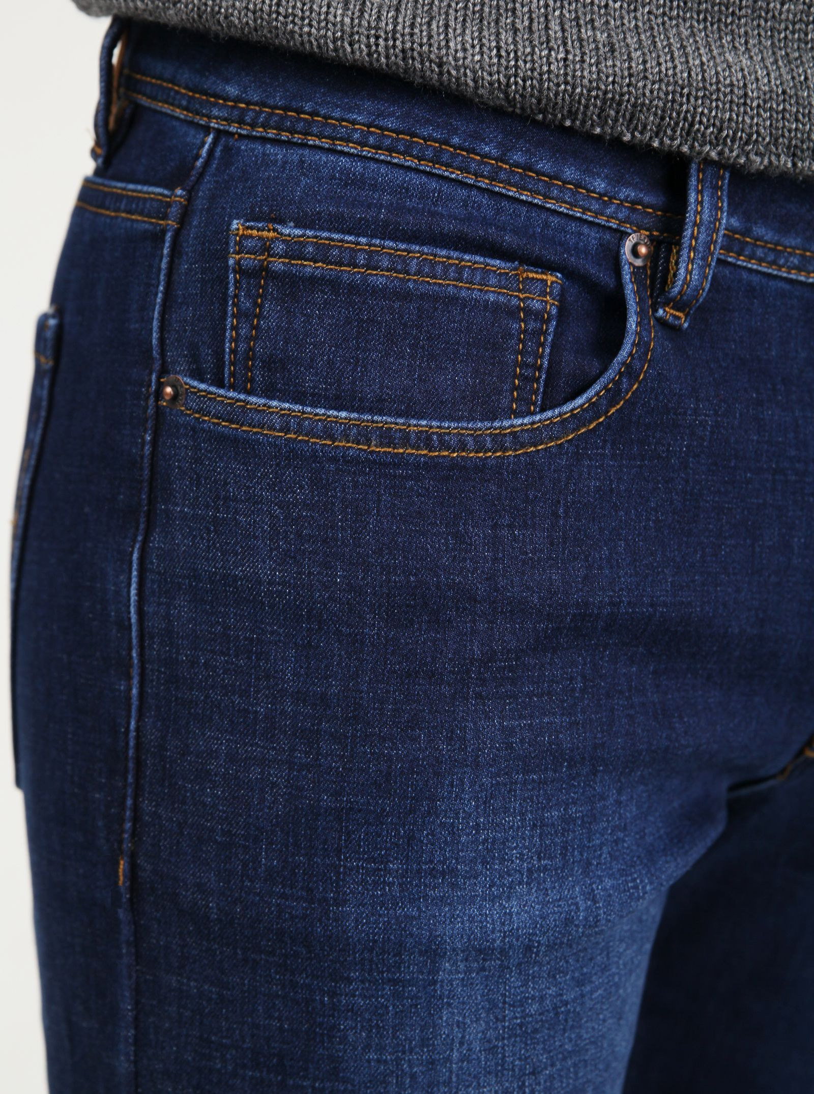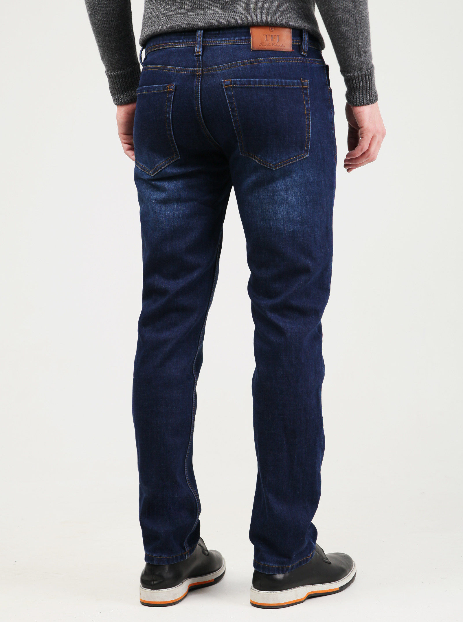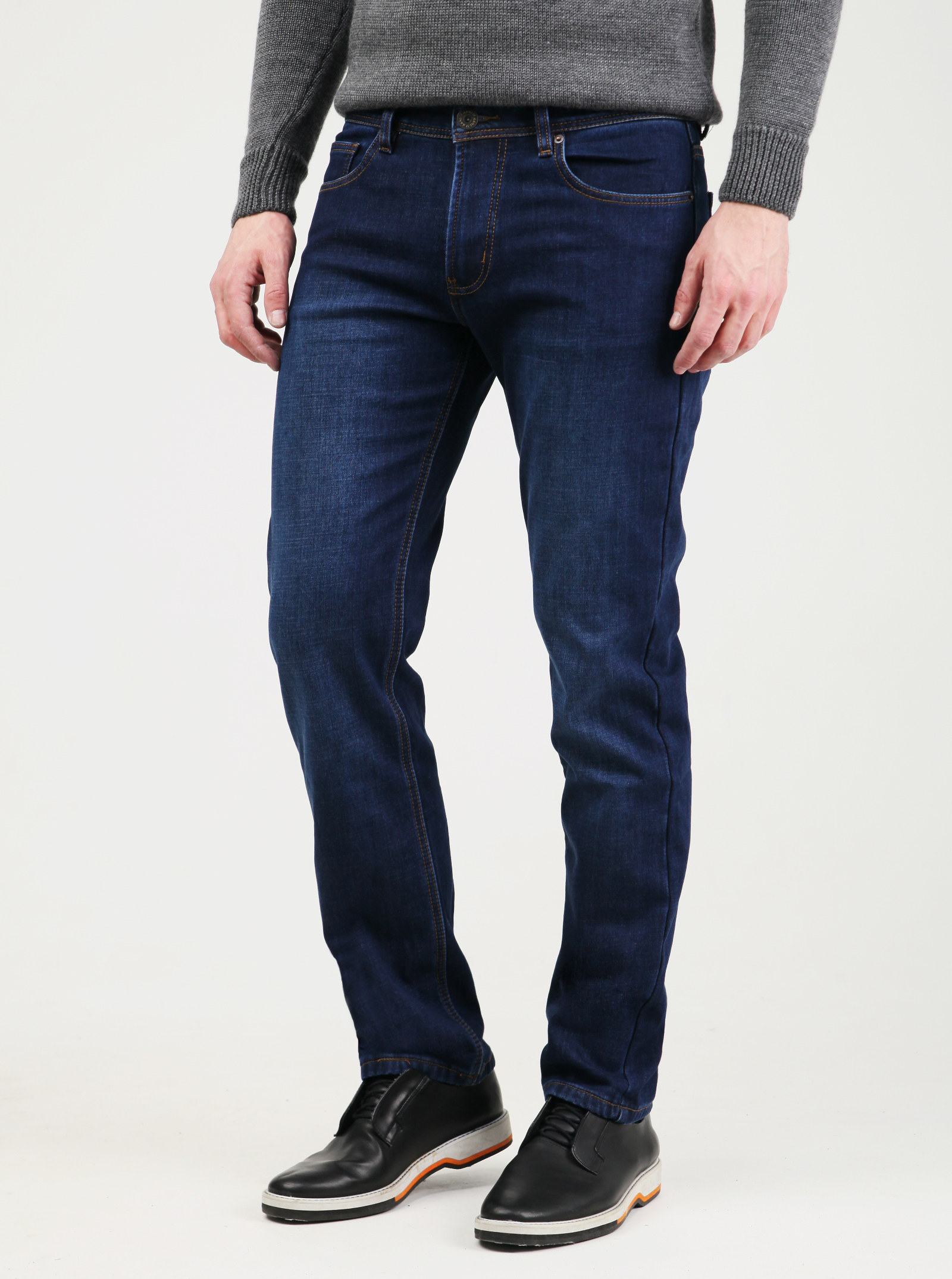 Фирменный фит RYAN. Утепленные джинсы с флисом изнутри, со слегка зауженными книзу штанинами и легкими потертостями спереди и сзади. Модель выполнена из хлопка с эластаном.
