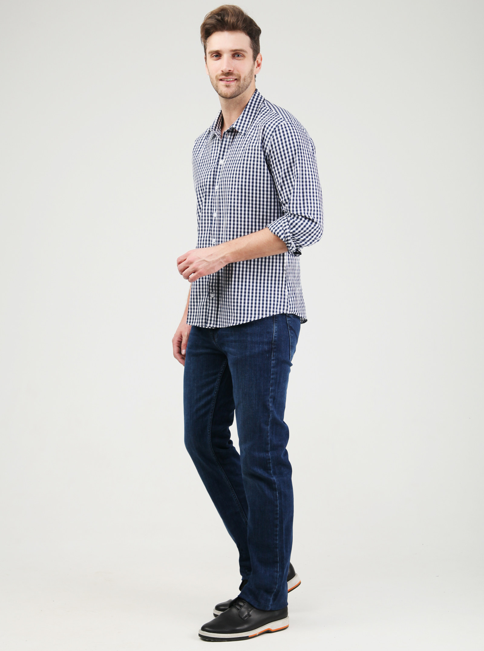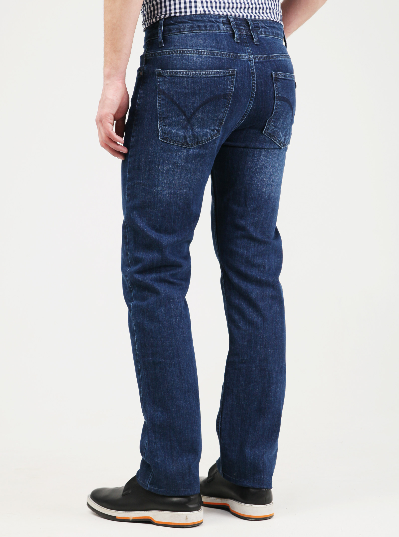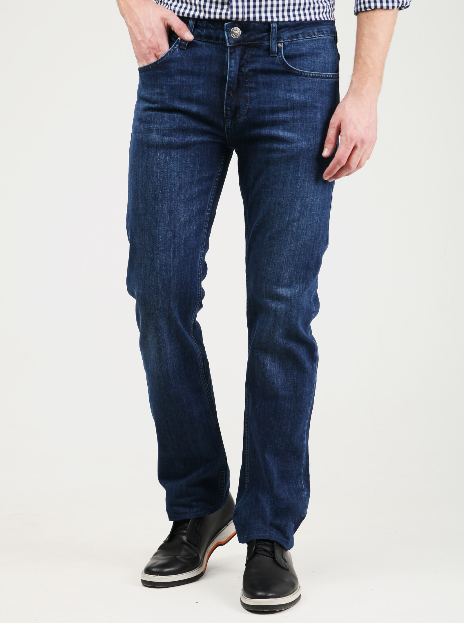 Фирменный фит STUART. Тренд сезона! Джинсы прямого кроя. Стильная модель с синими нитками. Выполнены из хлопка с эластаном.