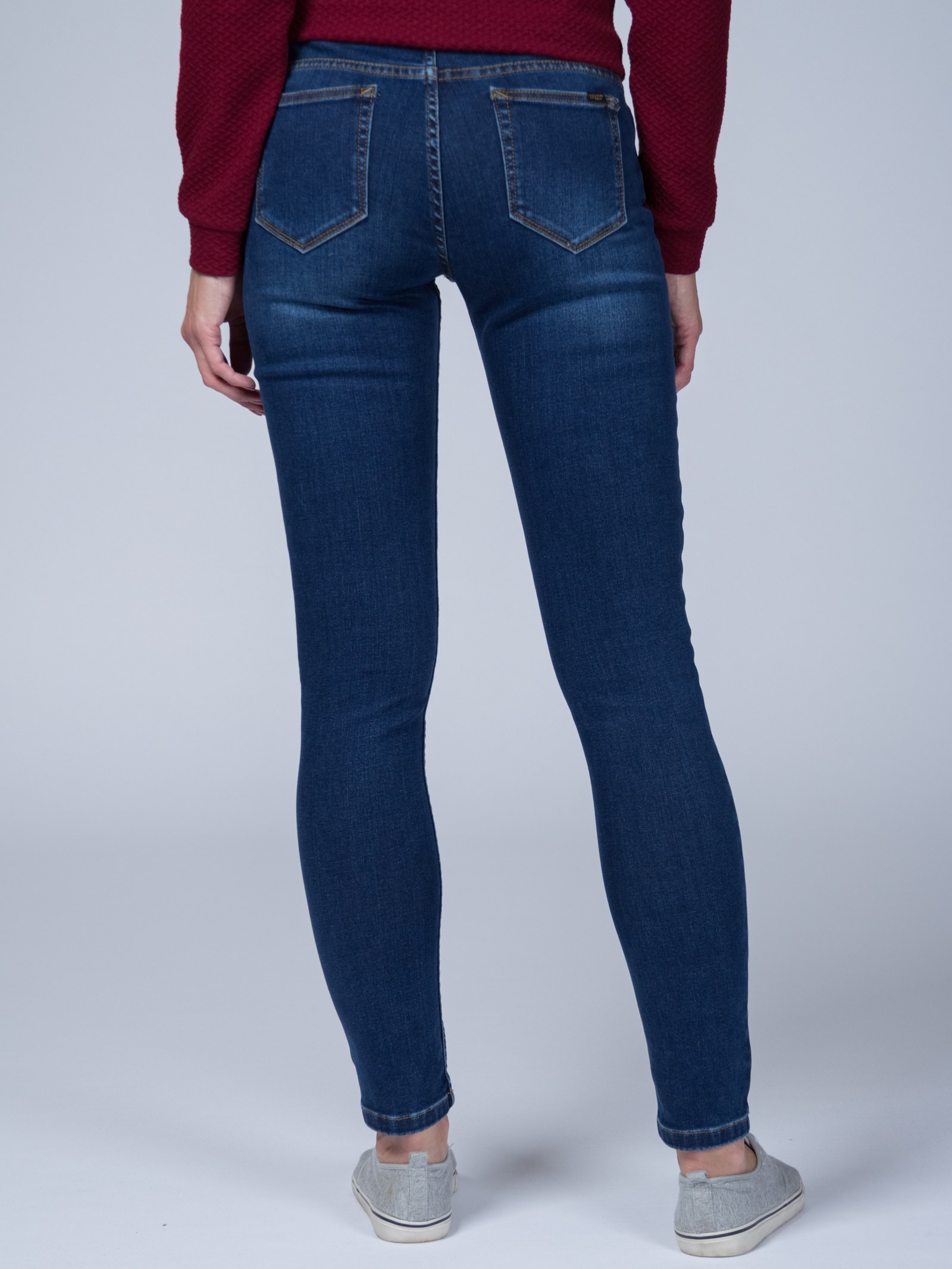 Узкая модель из стрейчевого денима, обеспечивающего комфортную носку. Плотно облегающий крой. Средняя посадка. Минимальная стирка, оставляющая ткань максимально темной, с естественными потертостями.