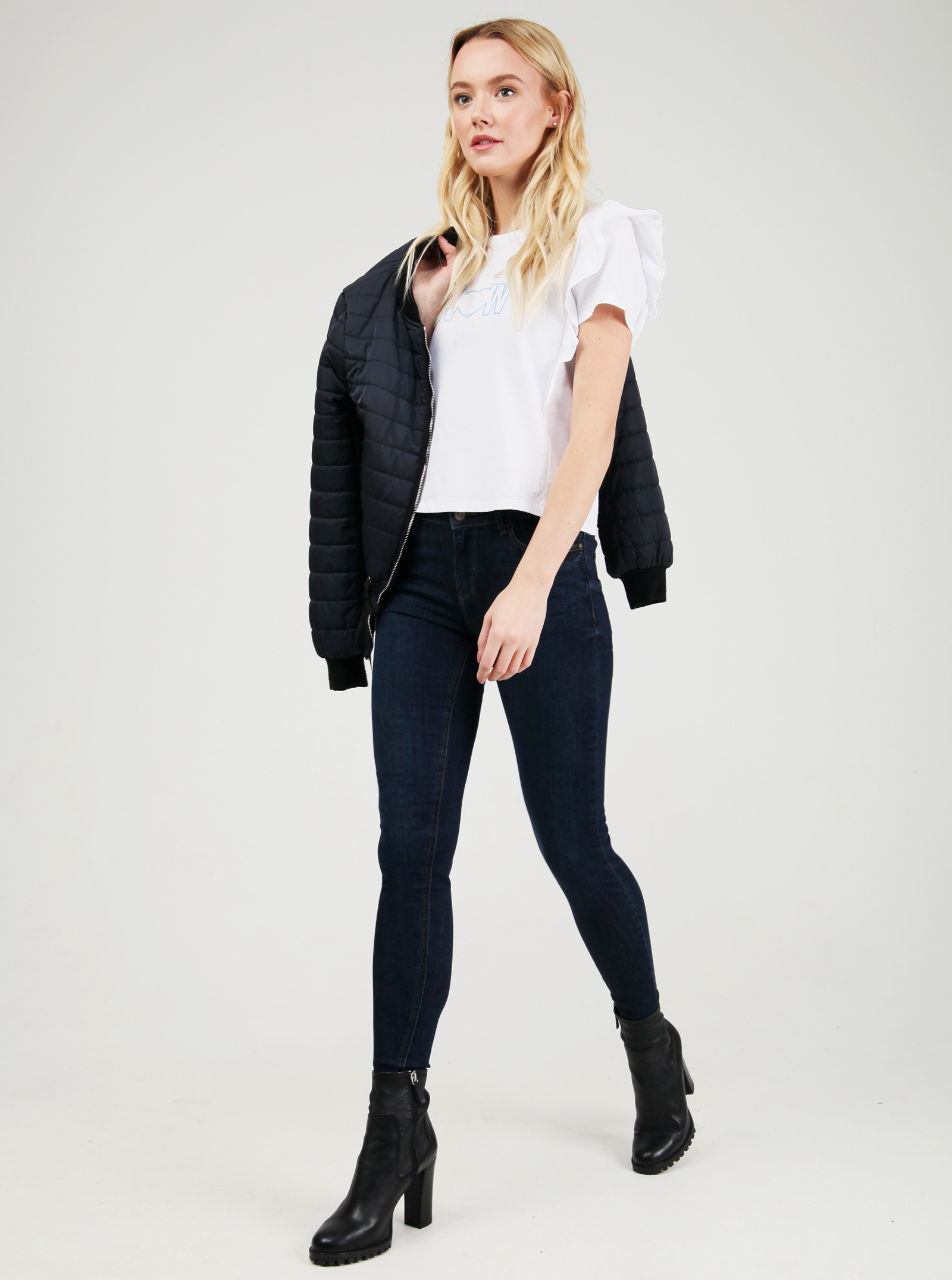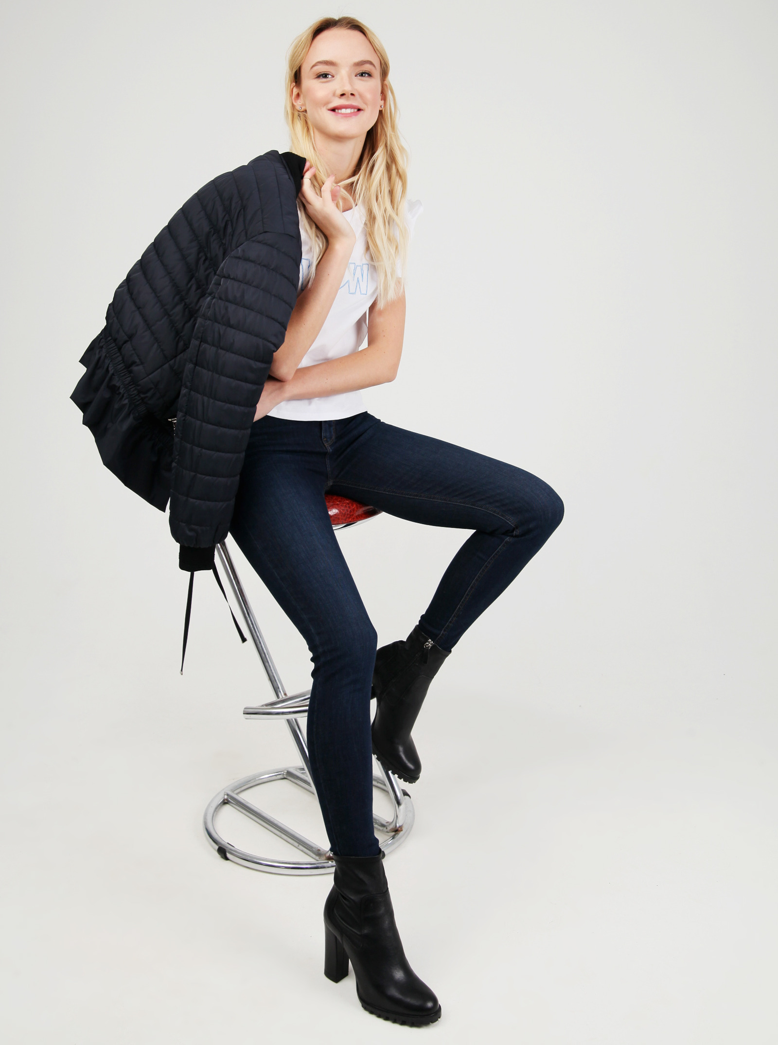 Фирменный фит SCARLET. Базовые джинсы облегающего силуэта со стильными потертостями. Подчеркивают фигуру, слегка расширяясь книзу. Модель выполнена из ткани с эластаном.