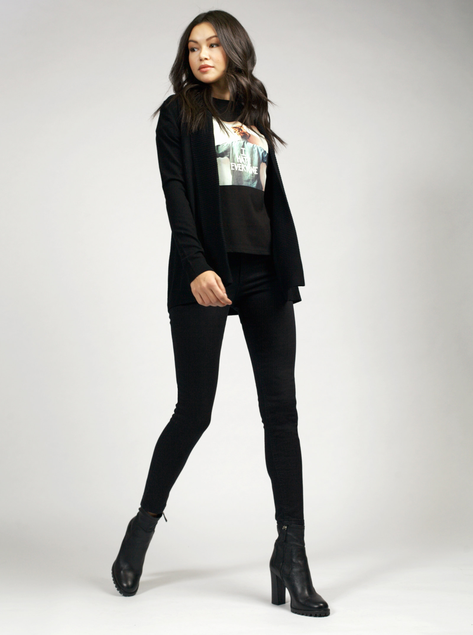 Фирменный фит SCARLET. Черные базовые джинсы облегающего силуэта. Подчеркивают фигуру, слегка расширяясь книзу. Модель выполнена из ткани с эластаном.