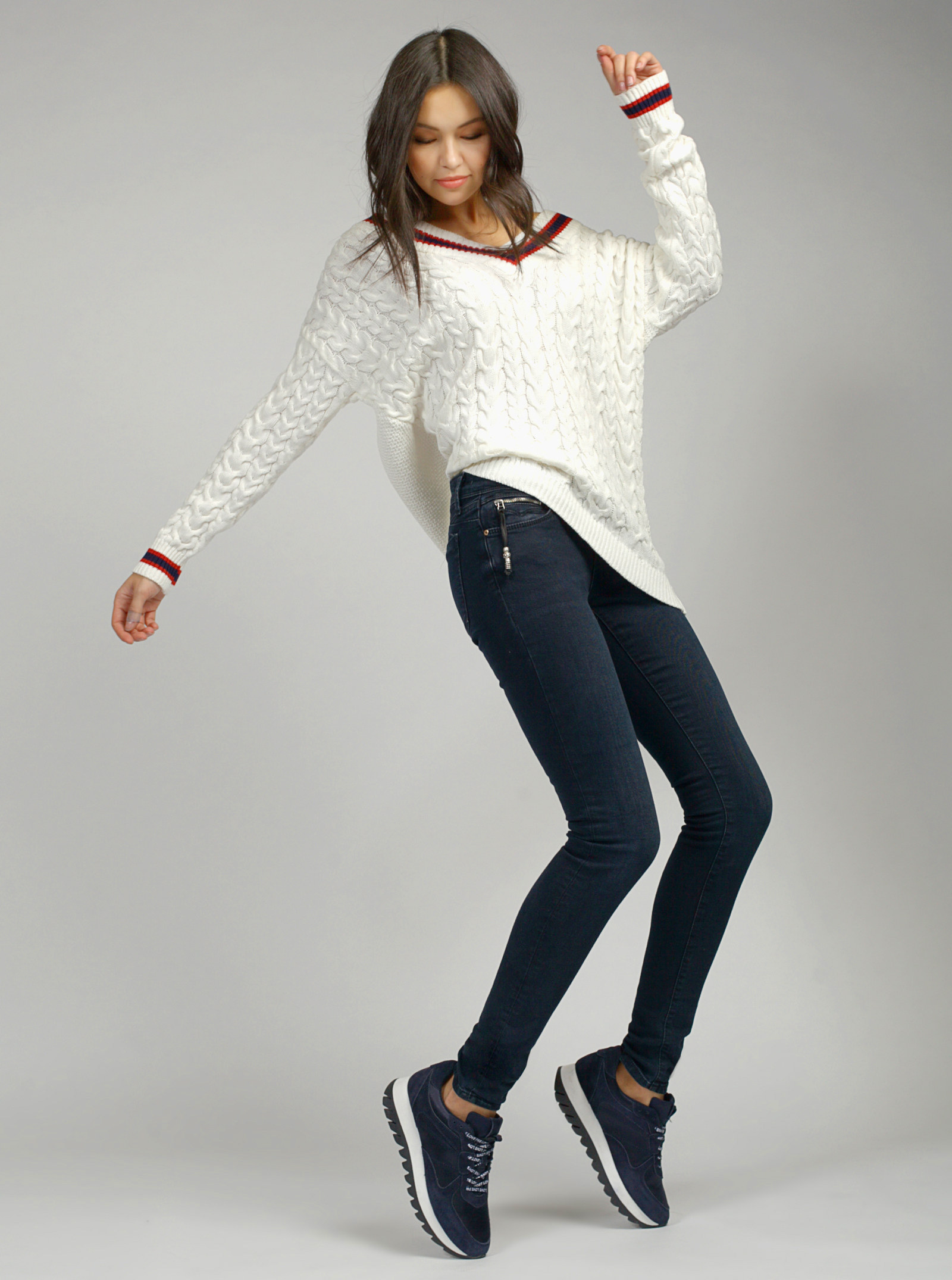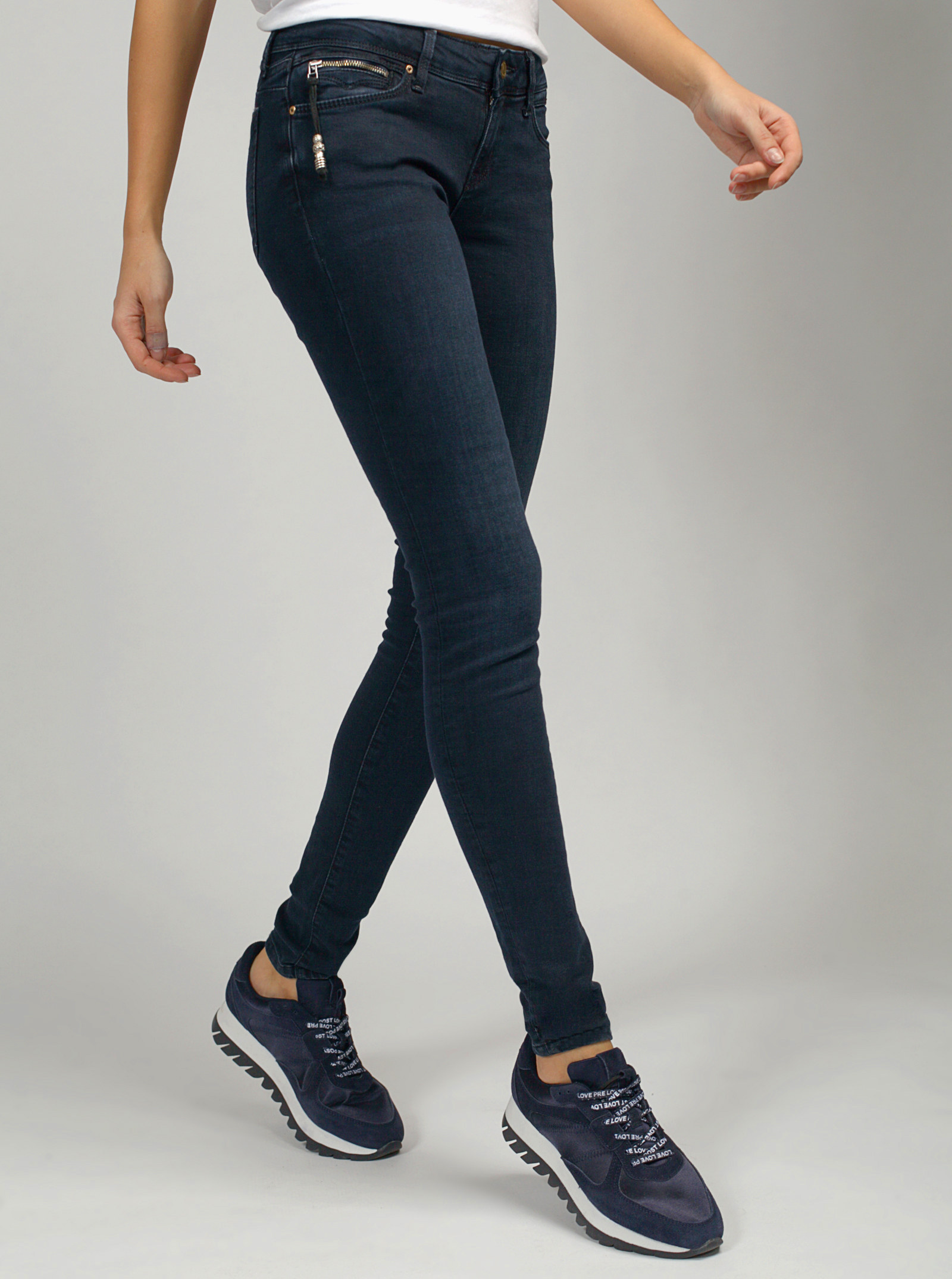 Фирменный фит SCARLET. Джинсы глубокого синего цвета с модным декором со средней посадкой. Прекрасно подчеркивают фигуру, выполнены из стрейчевой ткани.