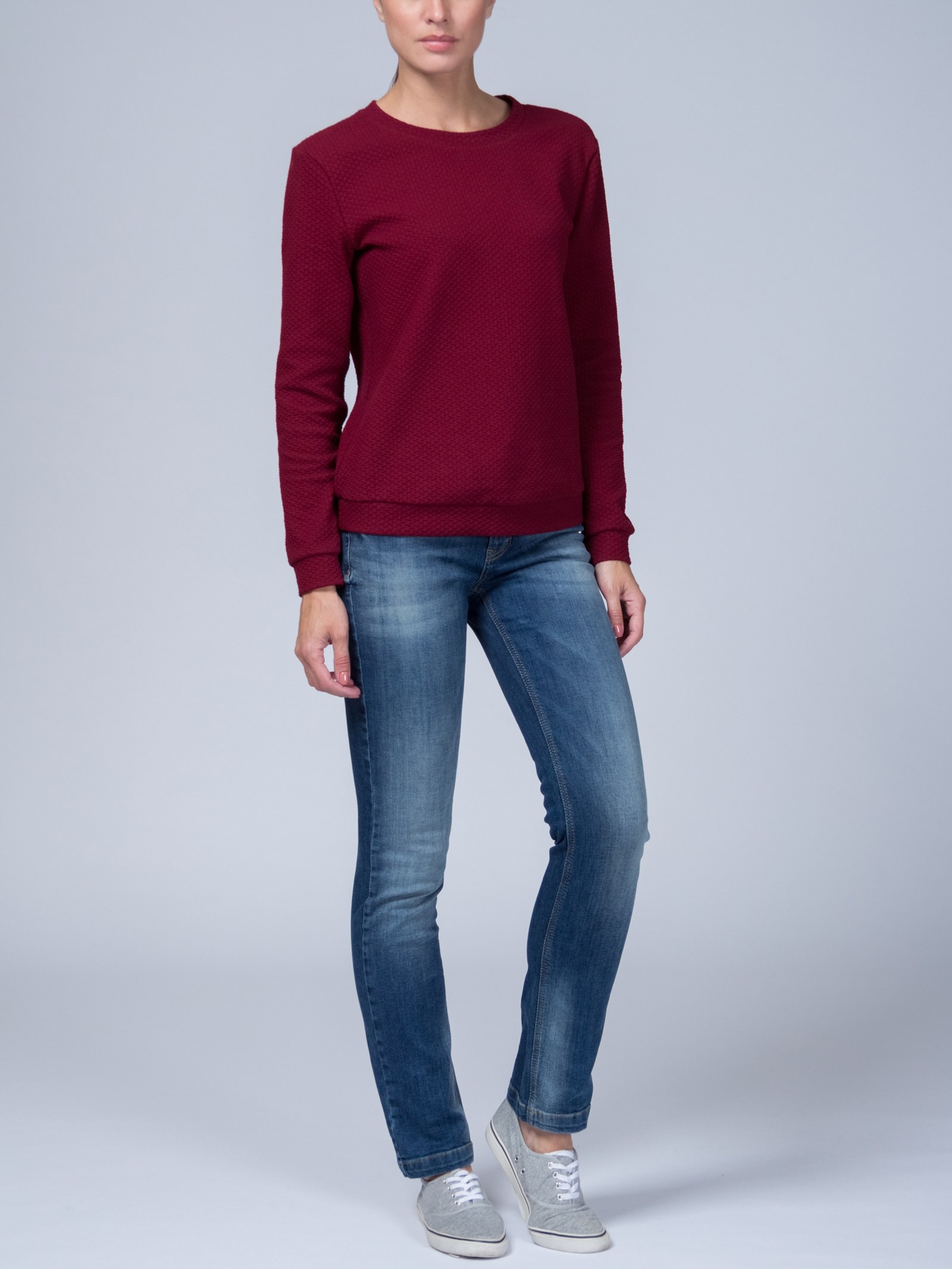 Узкая модель из стрейчевого денима, обеспечивающего комфортную носку. Прямая штанина. Средняя посадка. Анатомический крой, подчеркивающий формы. Синие джинсы с естественными потертостями.