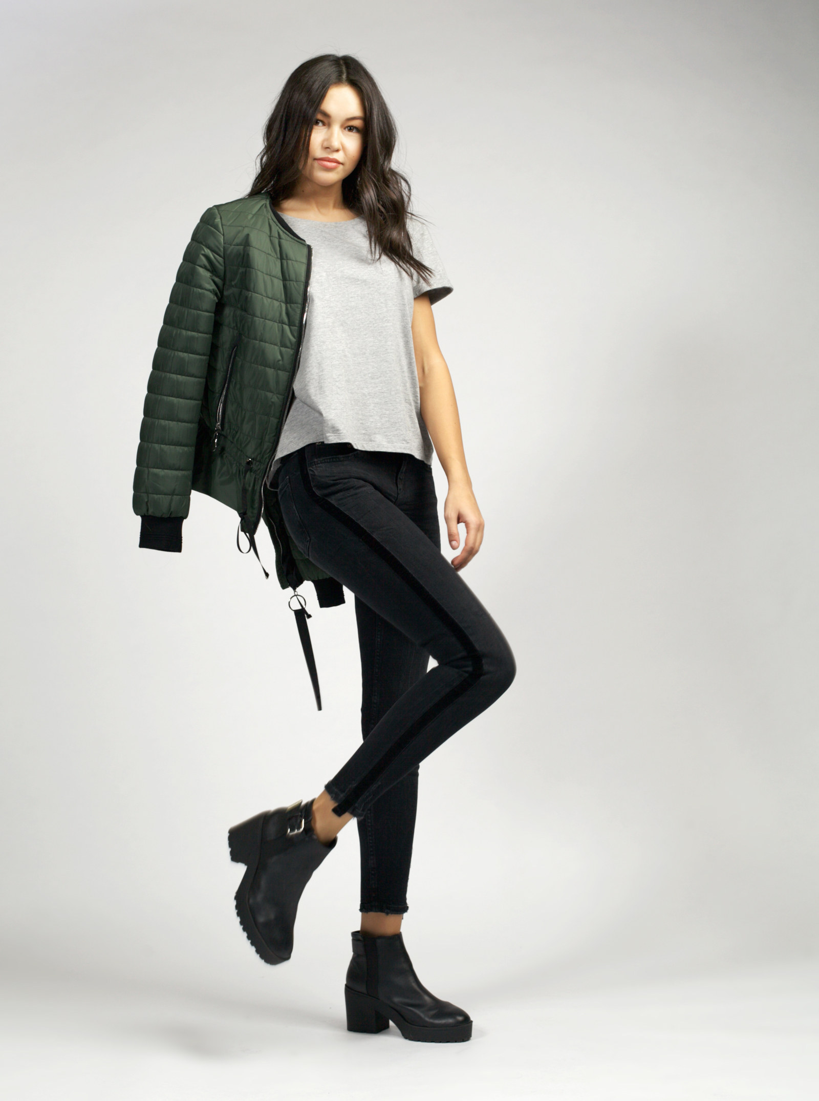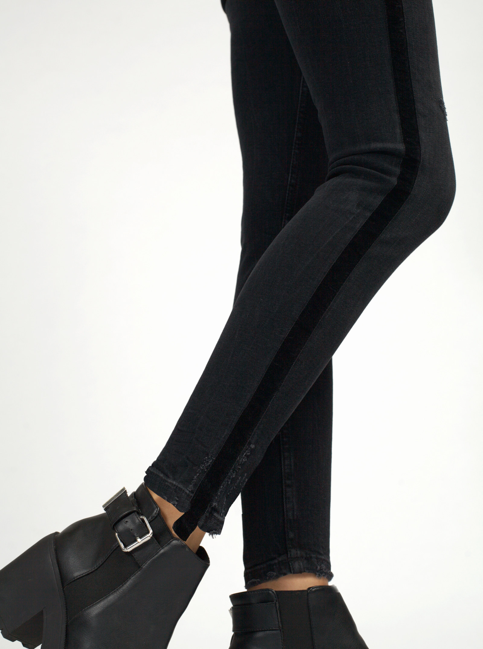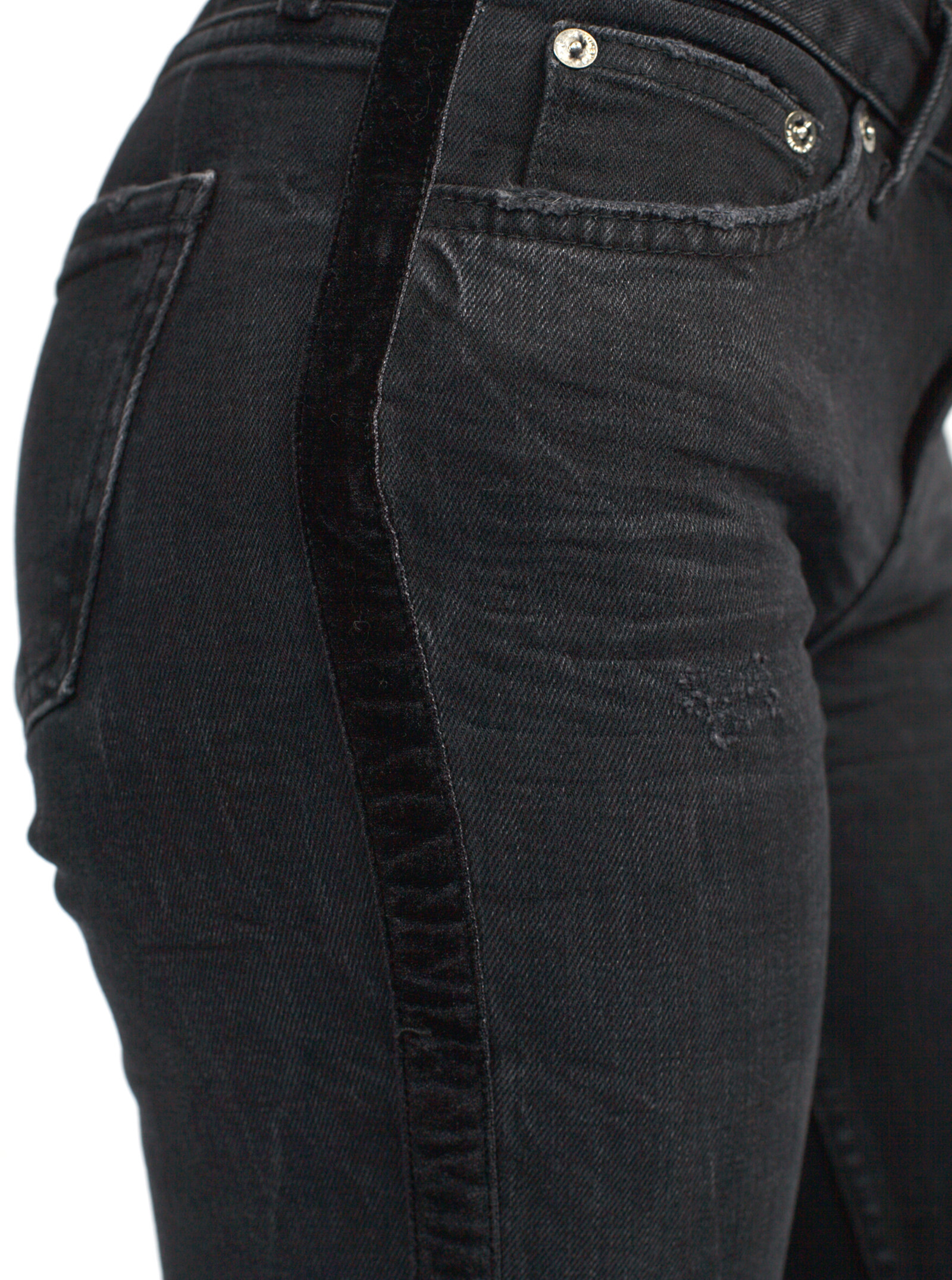 Фирменный фит JULIA. Джинсы облегающего силуэта со средней посадкой. Украшены бархатными лампасами. Прекрасно подчеркивают фигуру, выполнены из стрейчевой ткани.