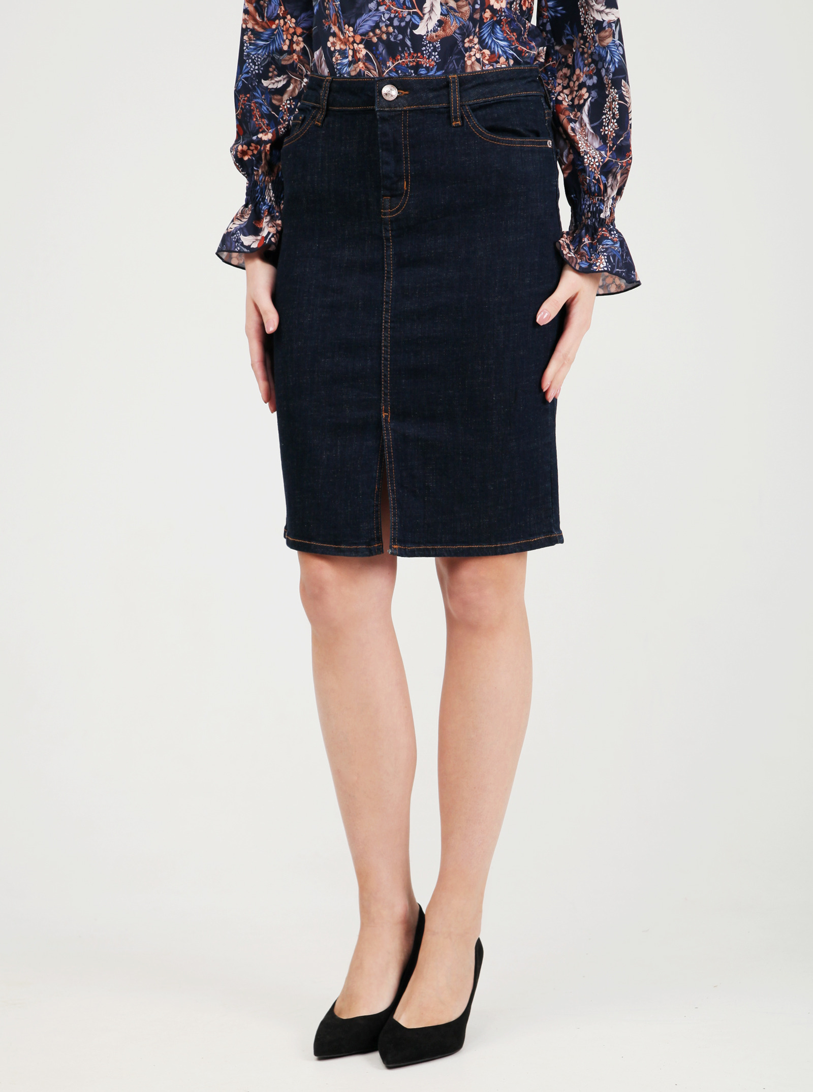 Классическая юбка из ткани с модной фактурой. Украшены стильной фурнитурой с логотипом бренда.