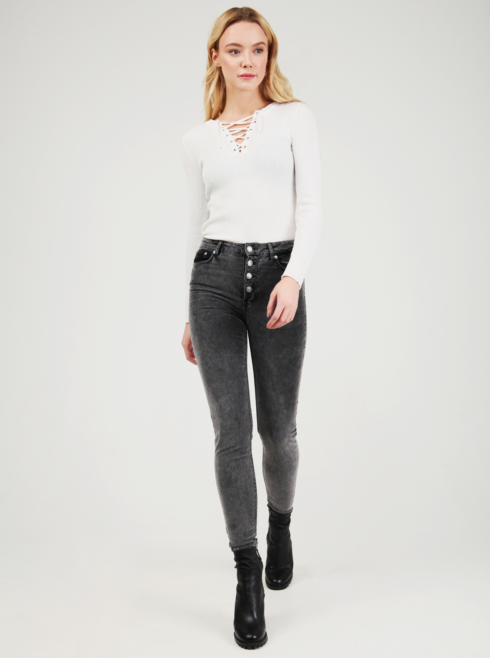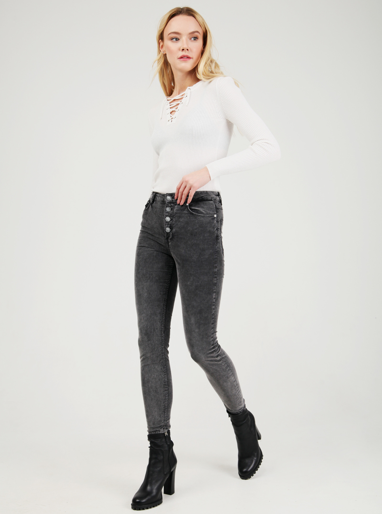 Фирменный фит JULIA. Брюки из микровельвета облегающего силуэта с высокой посадкой. Застежка на пуговицах. Прекрасно подчеркивают фигуру, выполнены из ткани с эластаном.