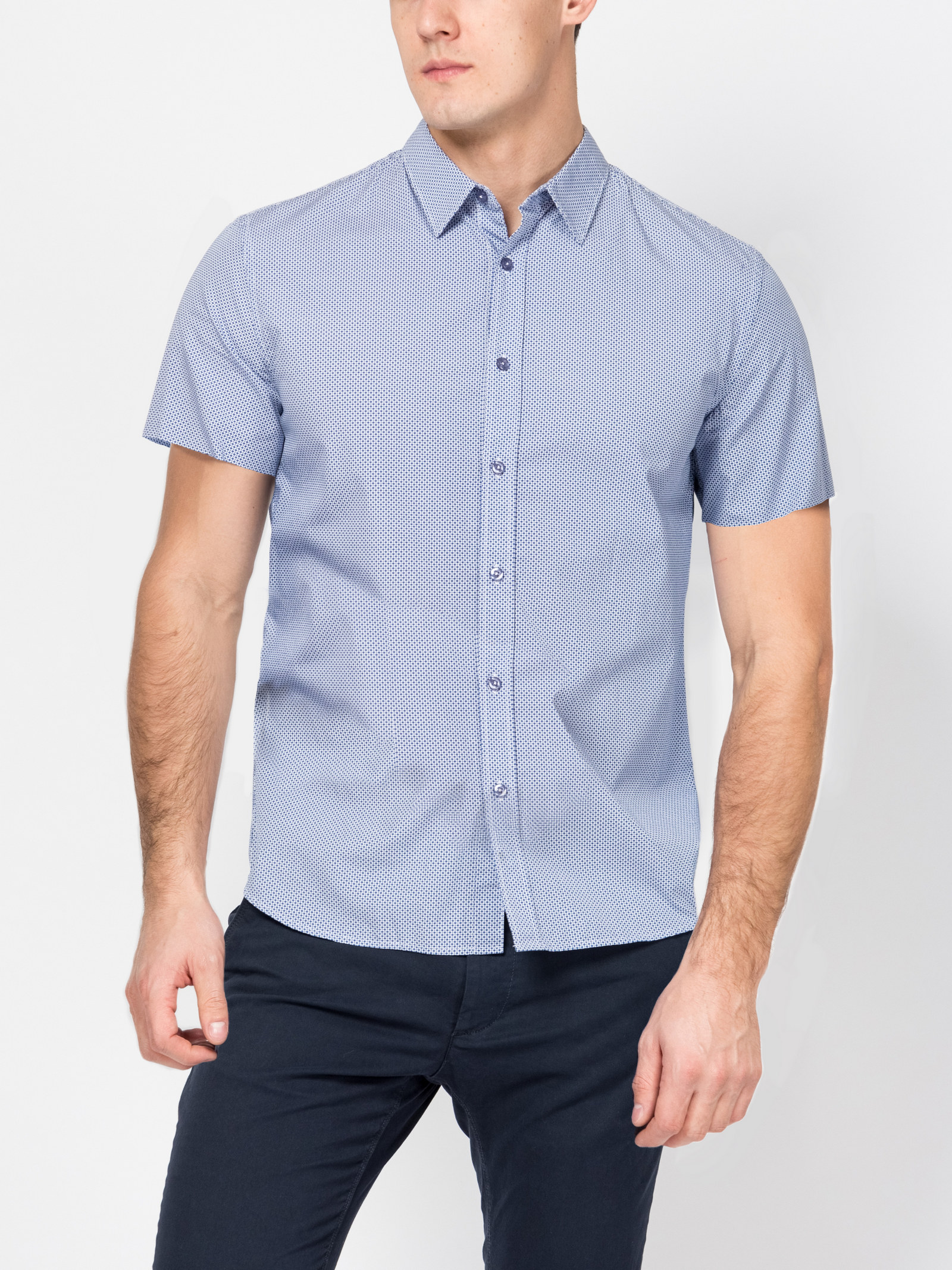 Сорочка с коротким рукавом, ткань хлопок принтованный (мелкий геометрический рисунок), полуприлегающий силуэт с талиевыми вытачками сзади