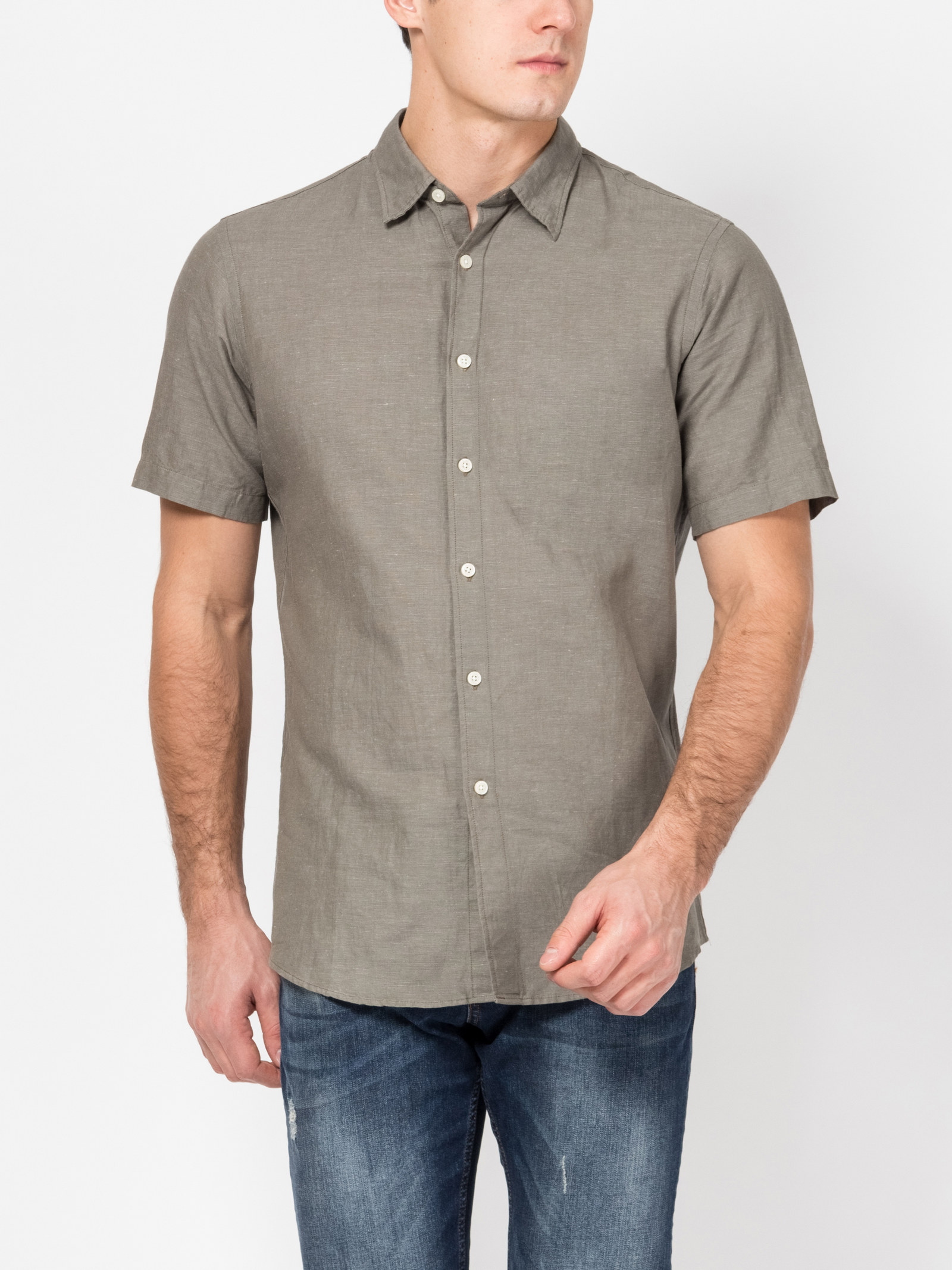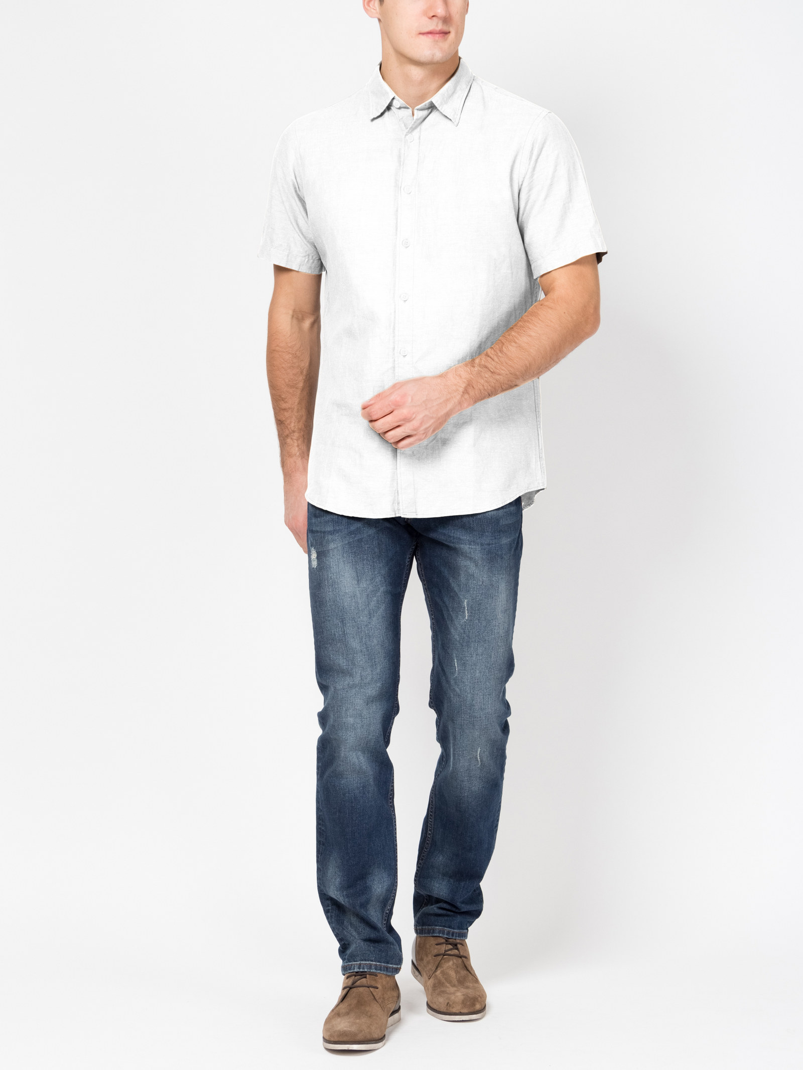 Рубашка с коротким рукавом изо льна, с талиевыми вытачками сзади