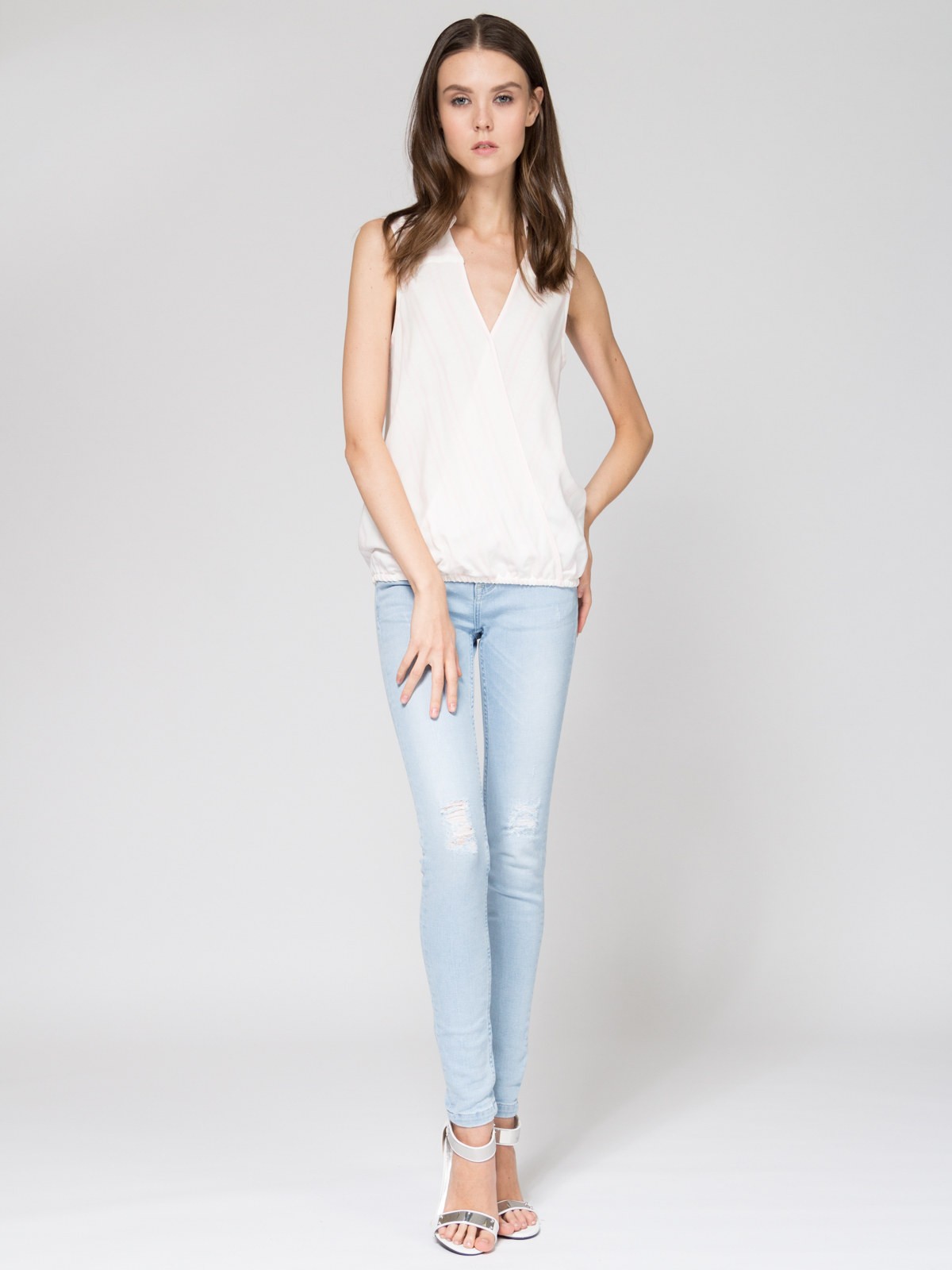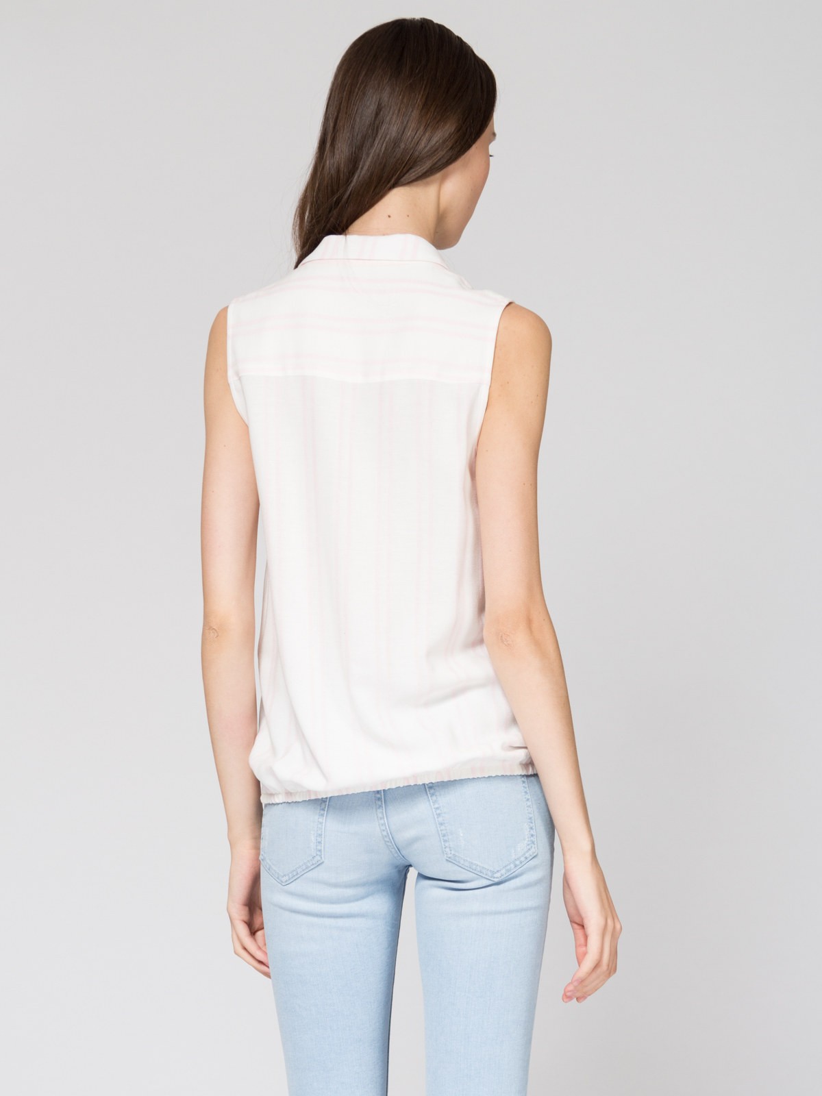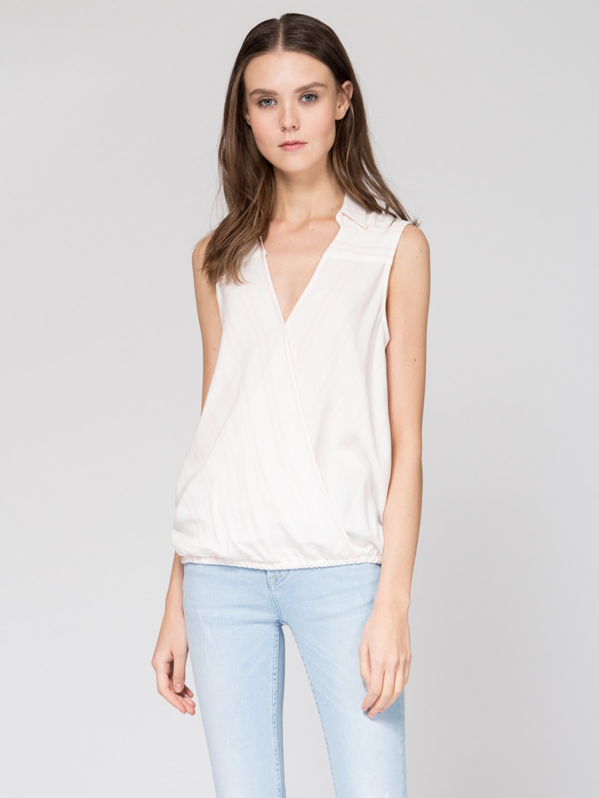 Блузка без рукавов, свободный силуэт, перед с запахом, отложной воротник, ткань вискозная в полоску