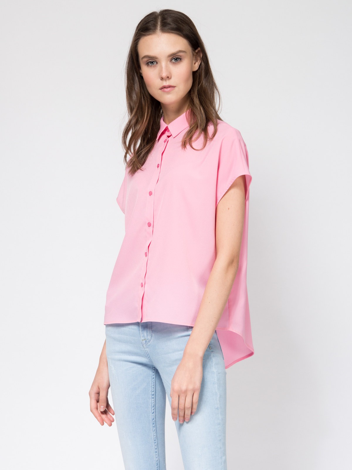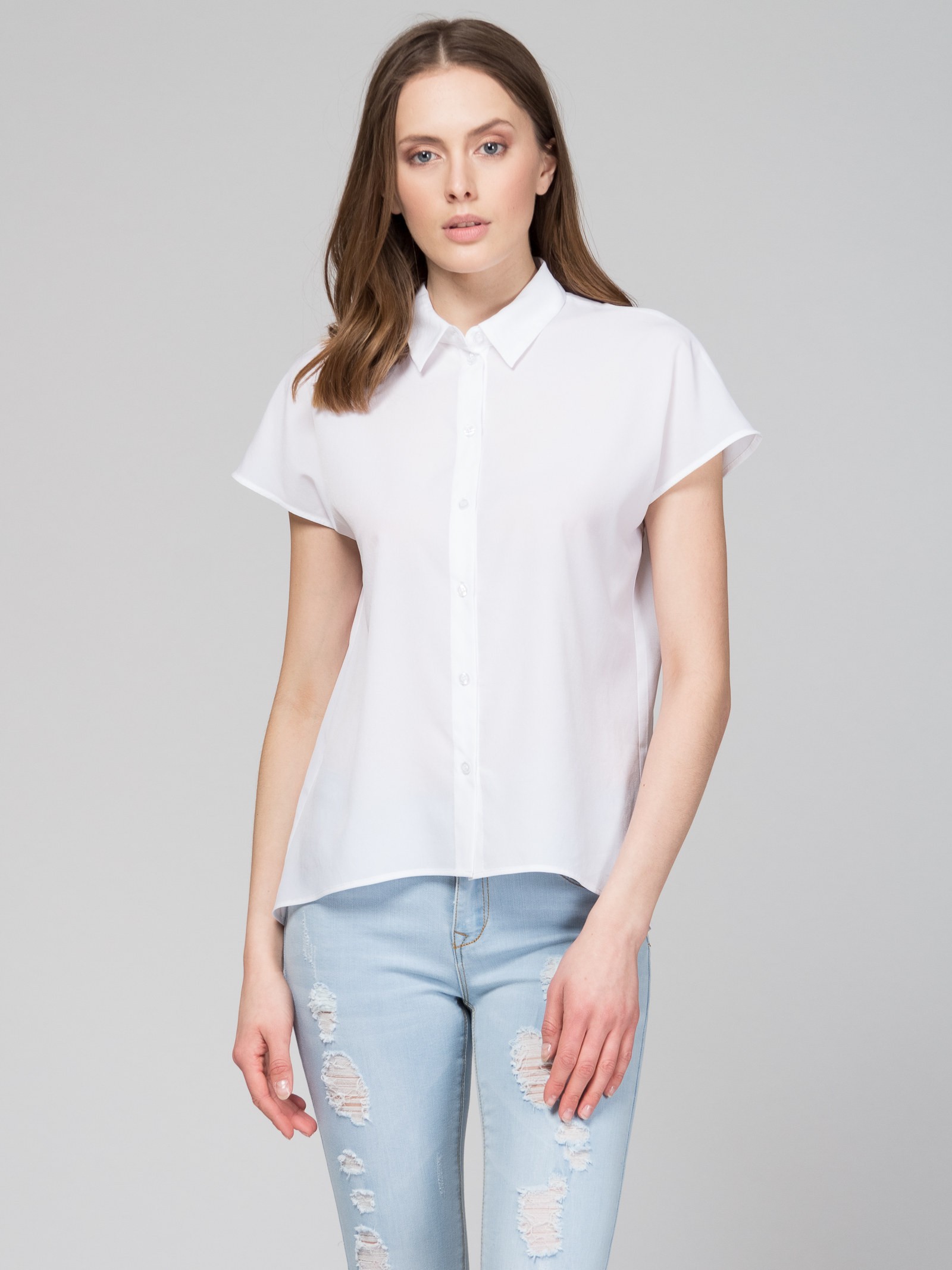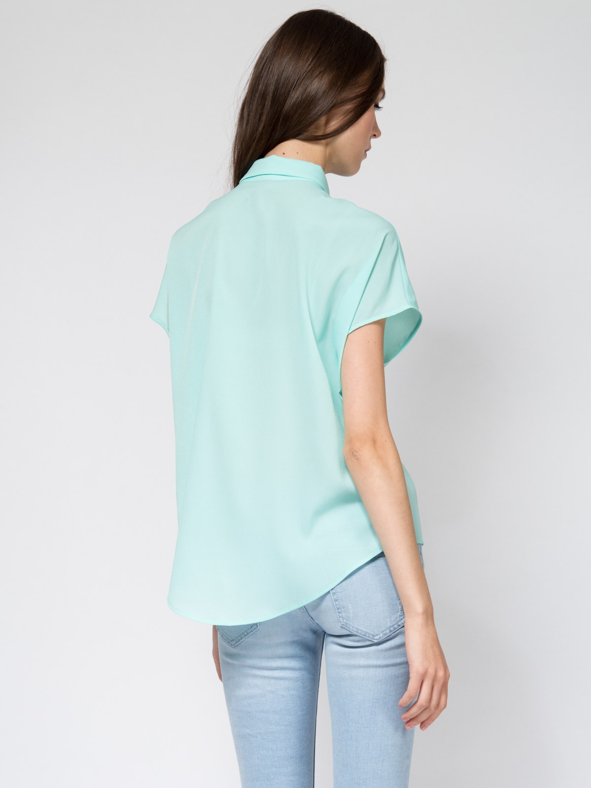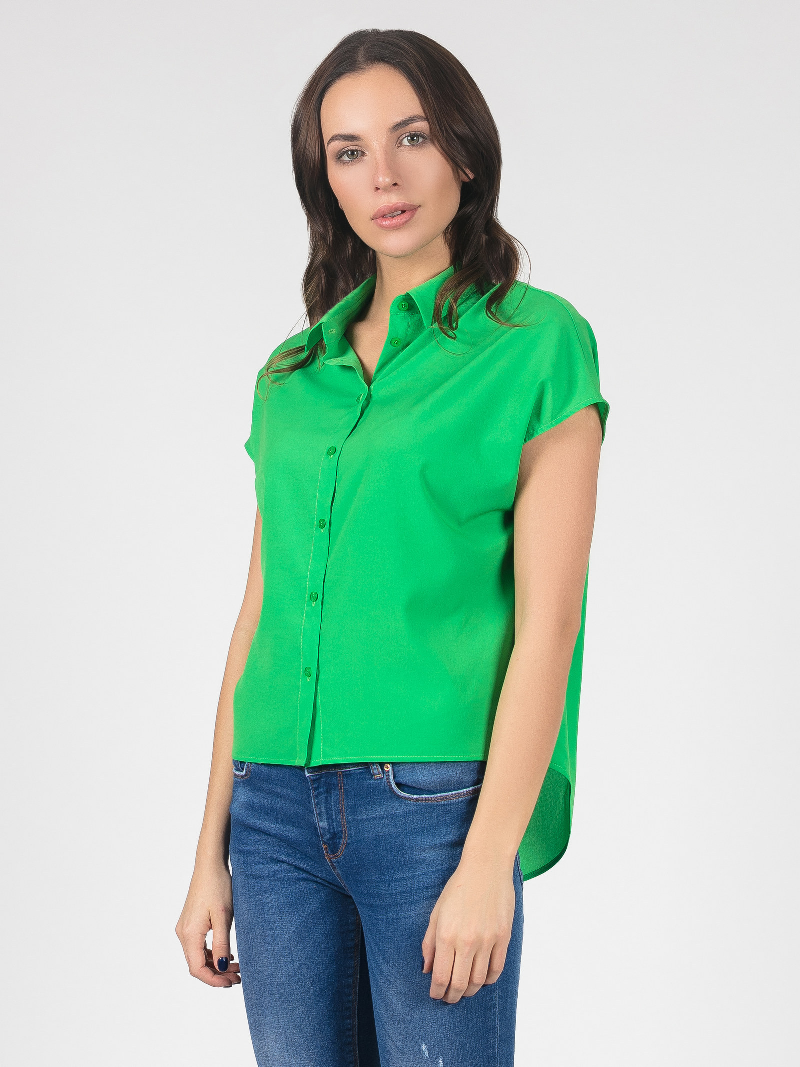 Блузка из однотонной ткани, свободный силуэт, цельнокроенный рукав, спинка длинее полочки