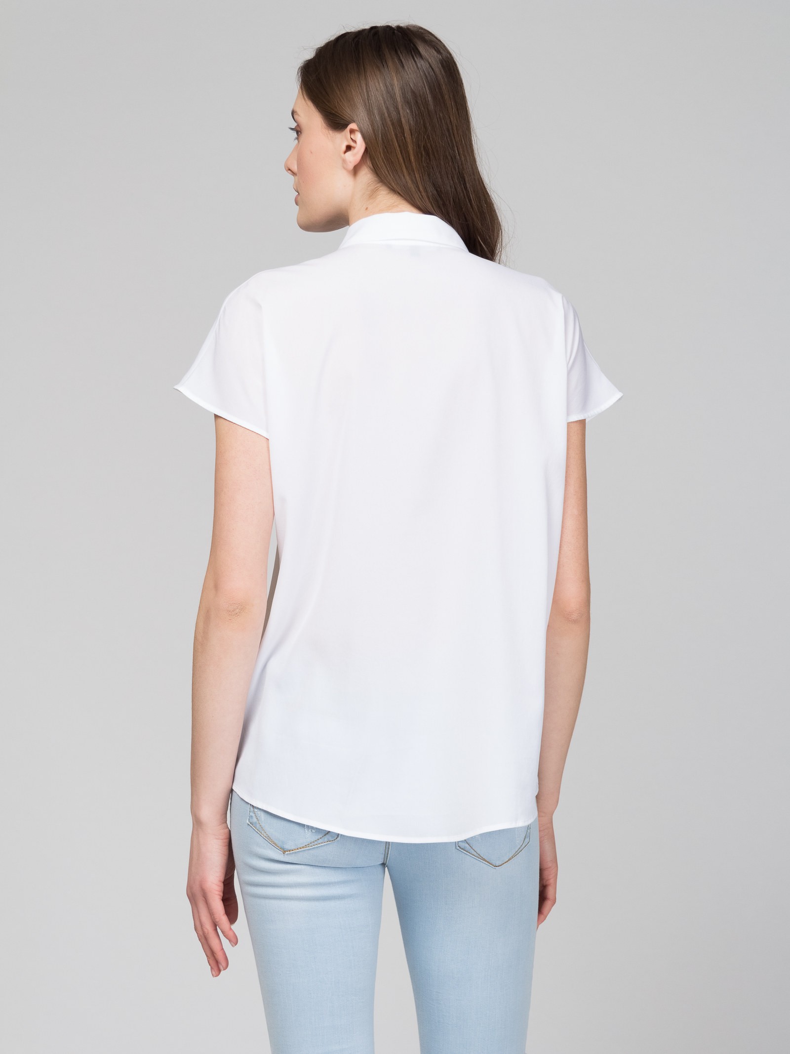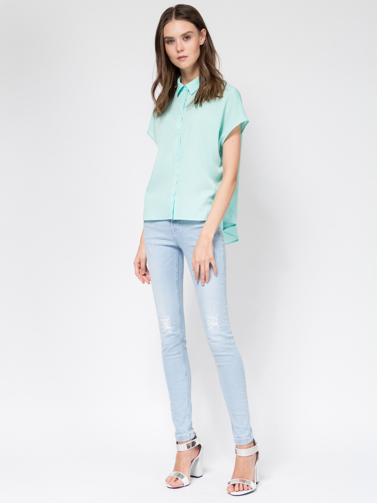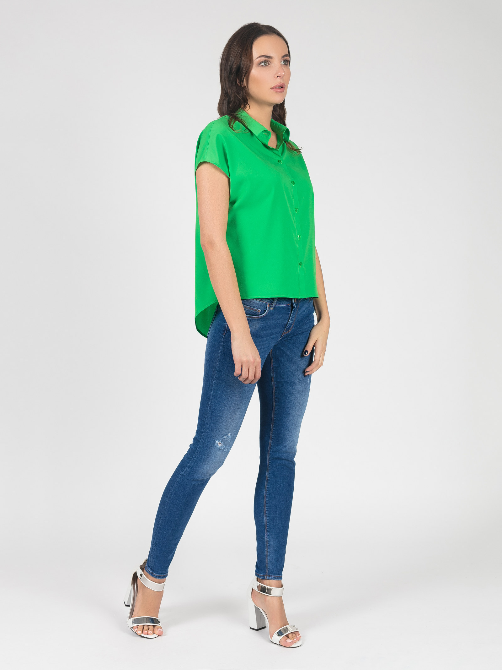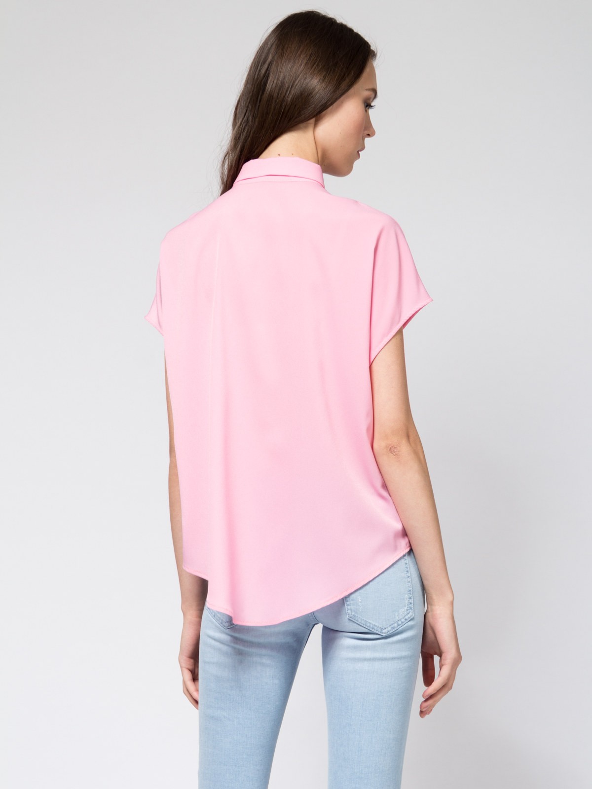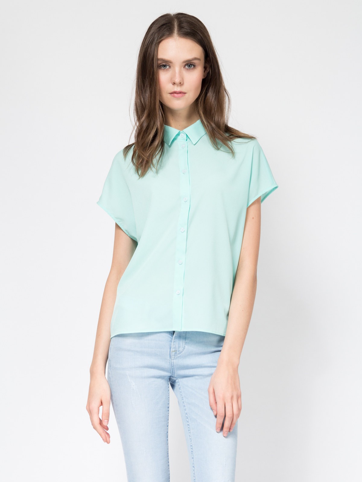 Блузка из однотонной ткани, свободный силуэт, цельнокроенный рукав, спинка длинее полочки