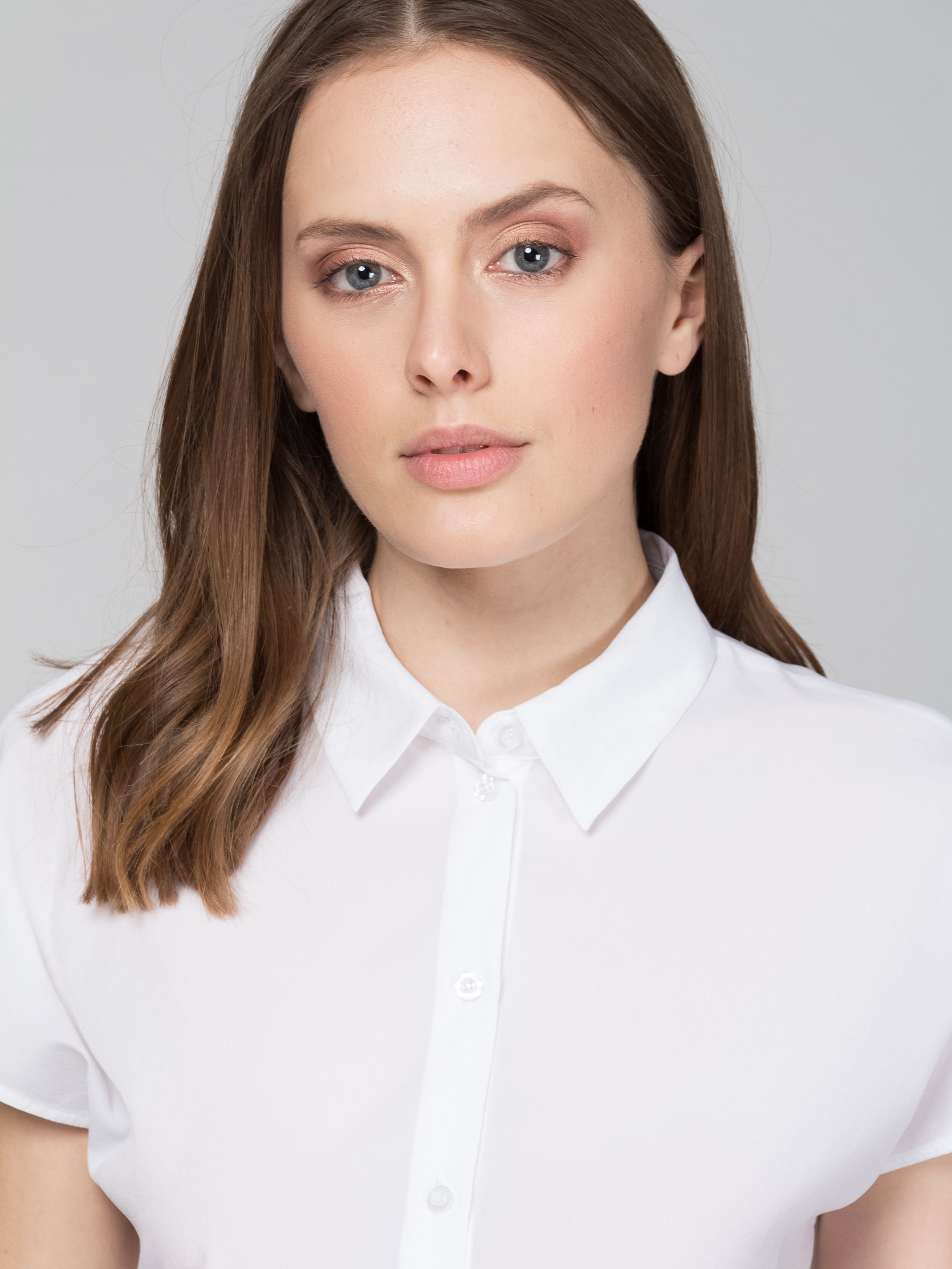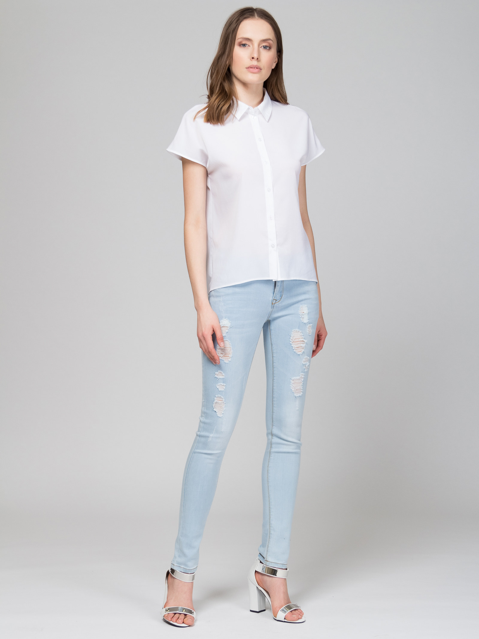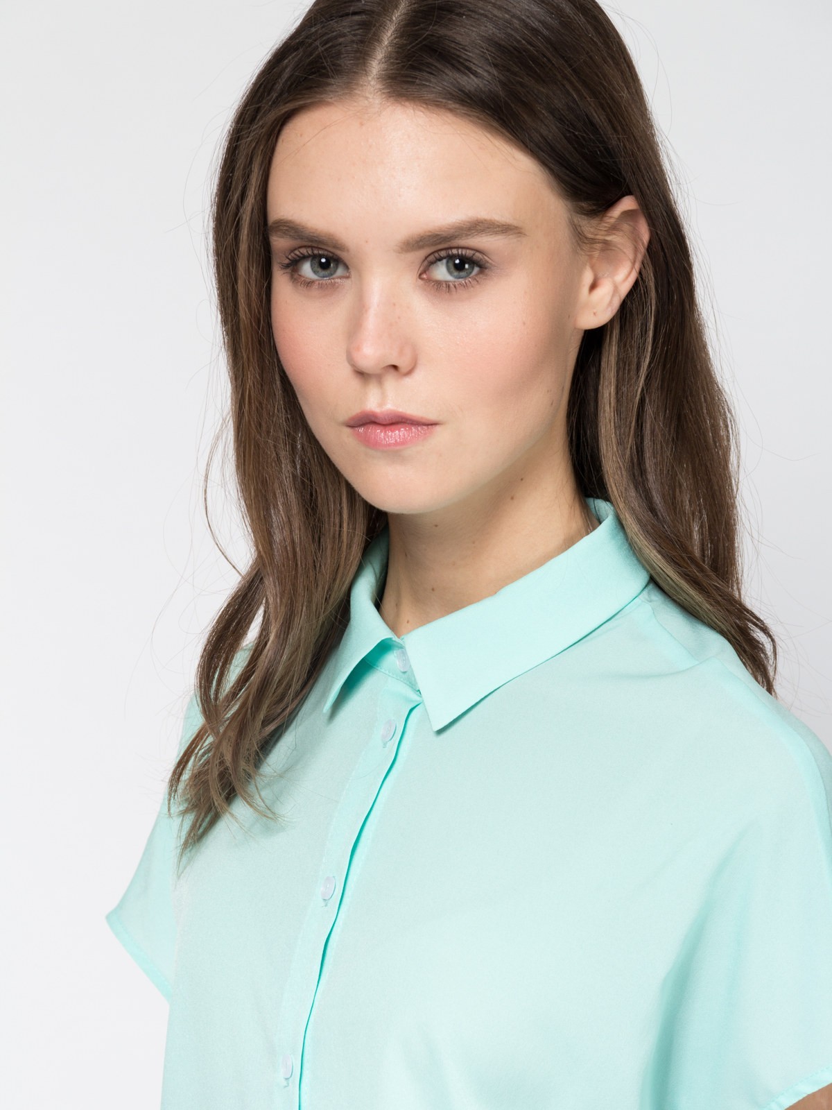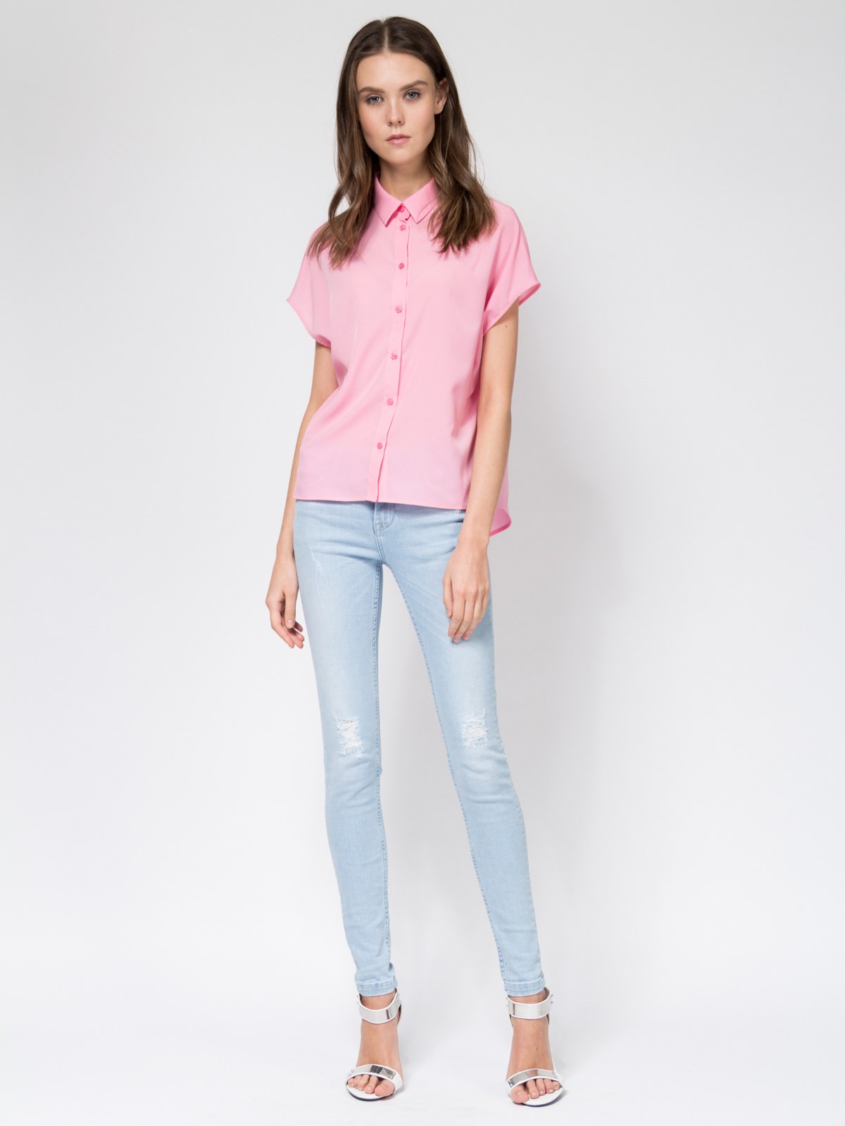 Блузка из однотонной ткани, свободный силуэт, цельнокроенный рукав, спинка длинее полочки