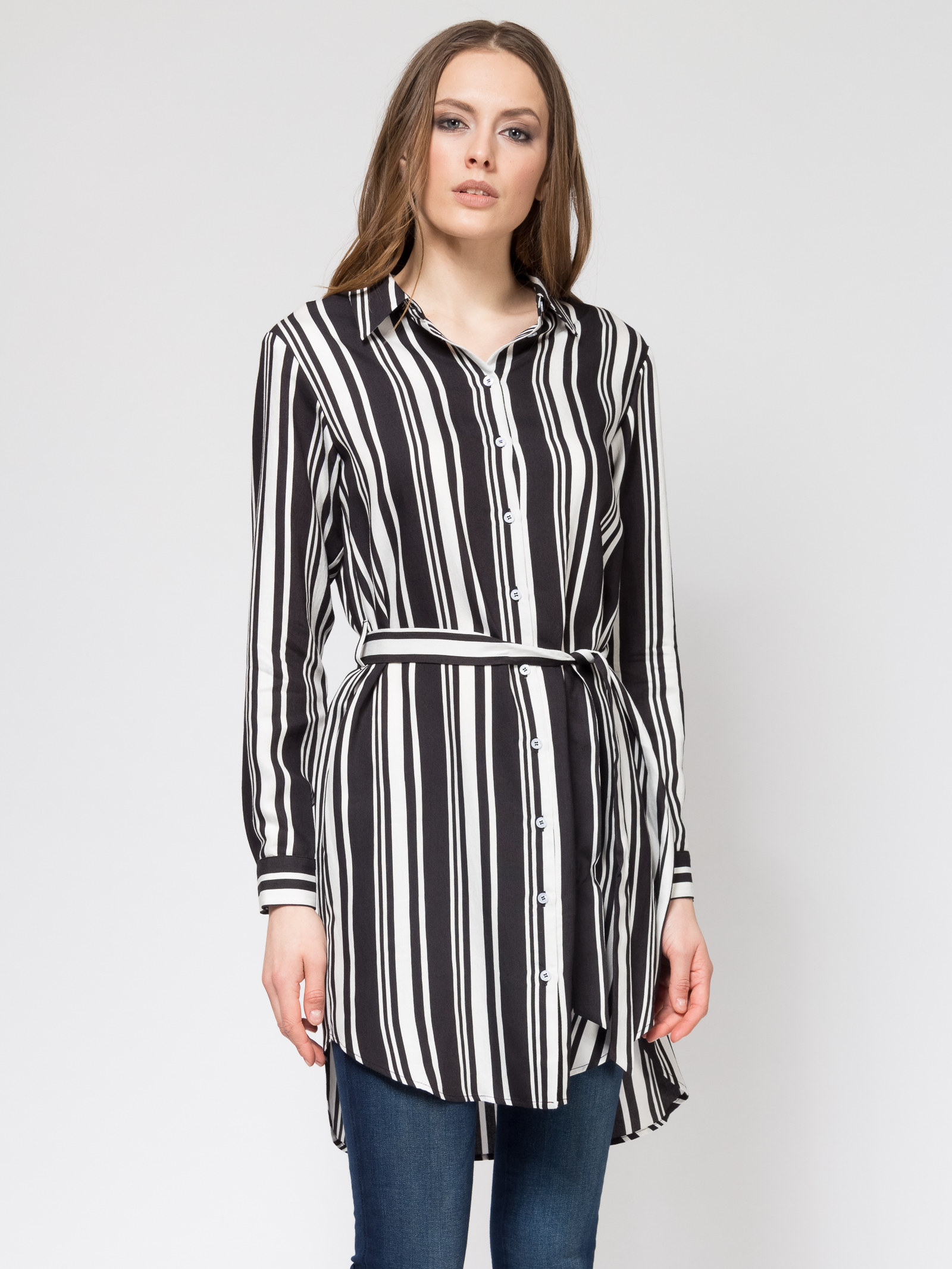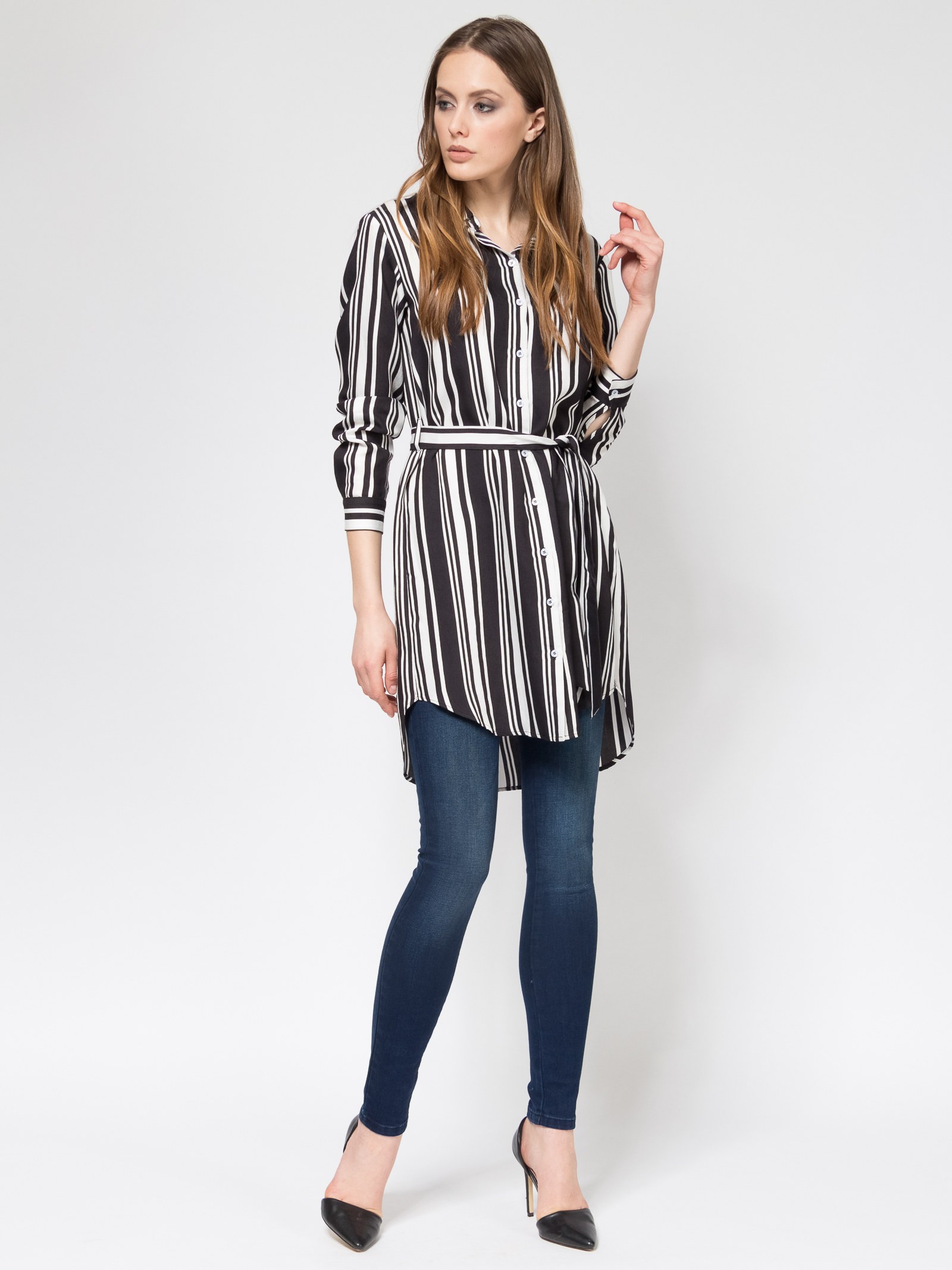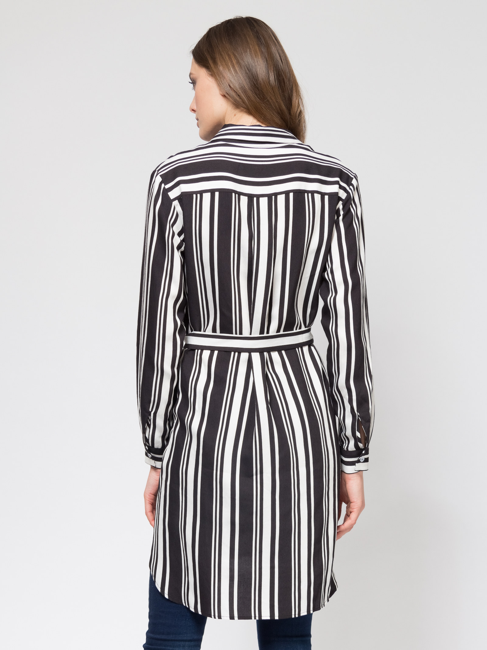 Платье-рубашка с поясом, свободный силуэт, фигурные разрезы по боковым швам