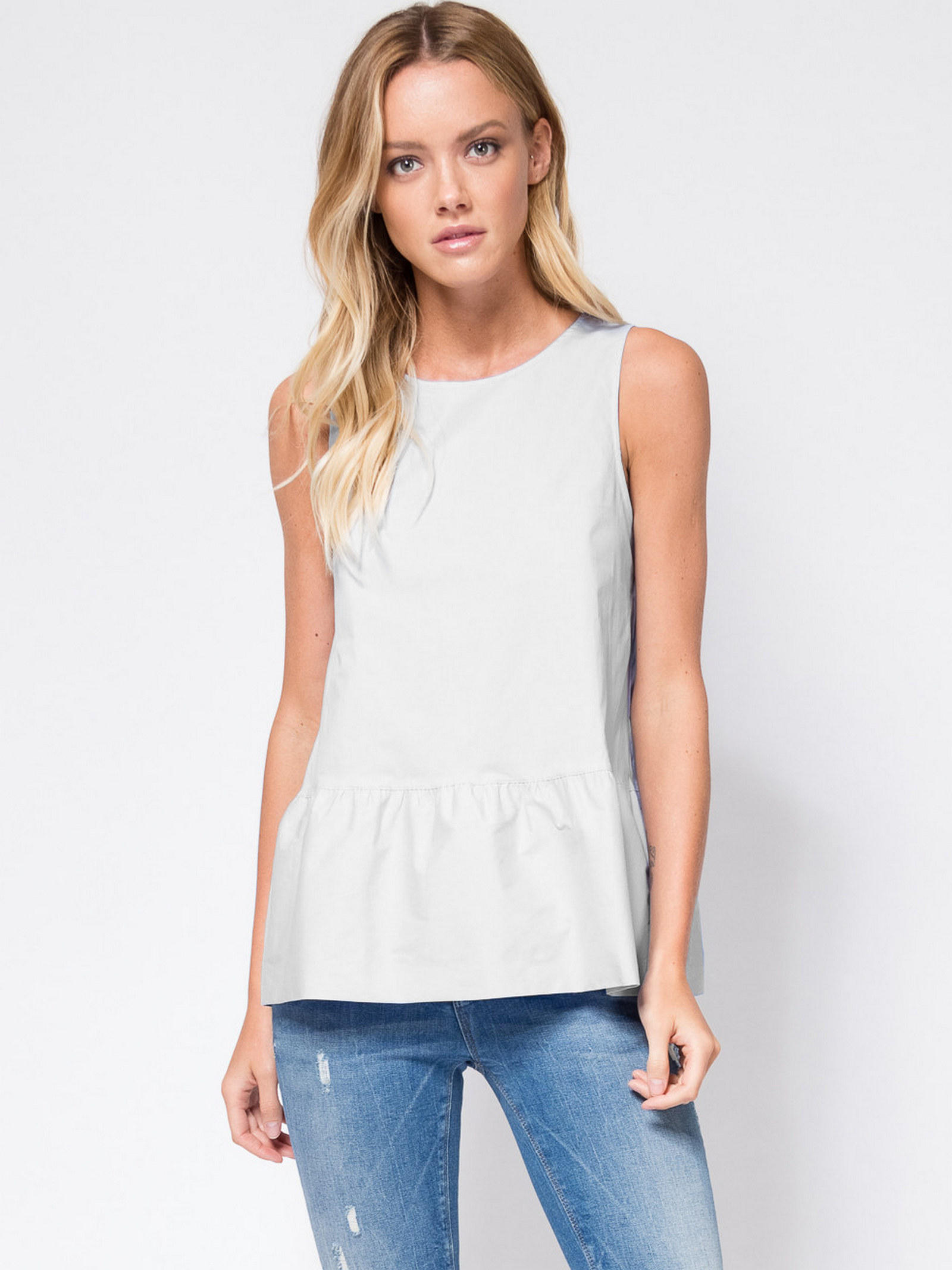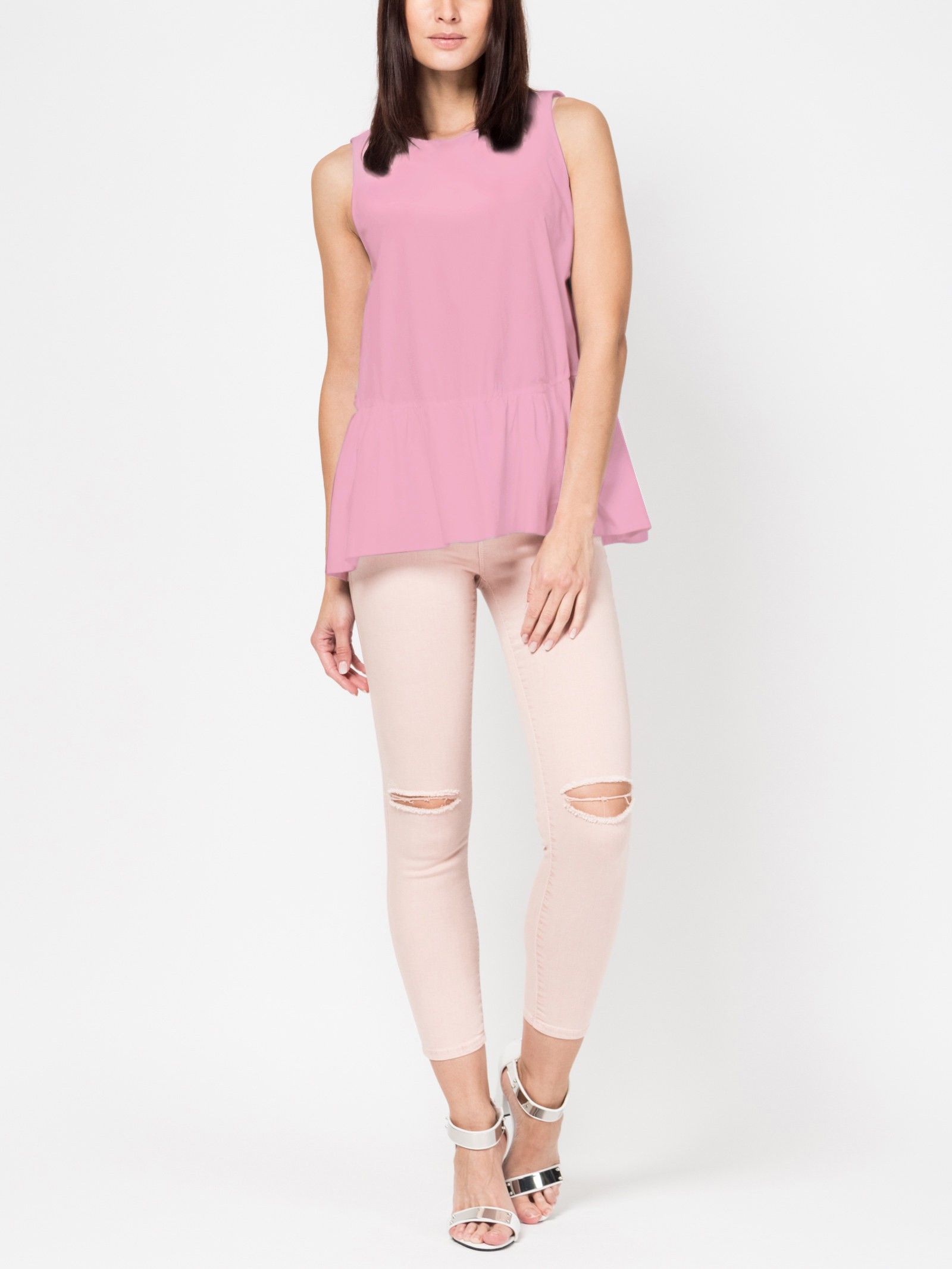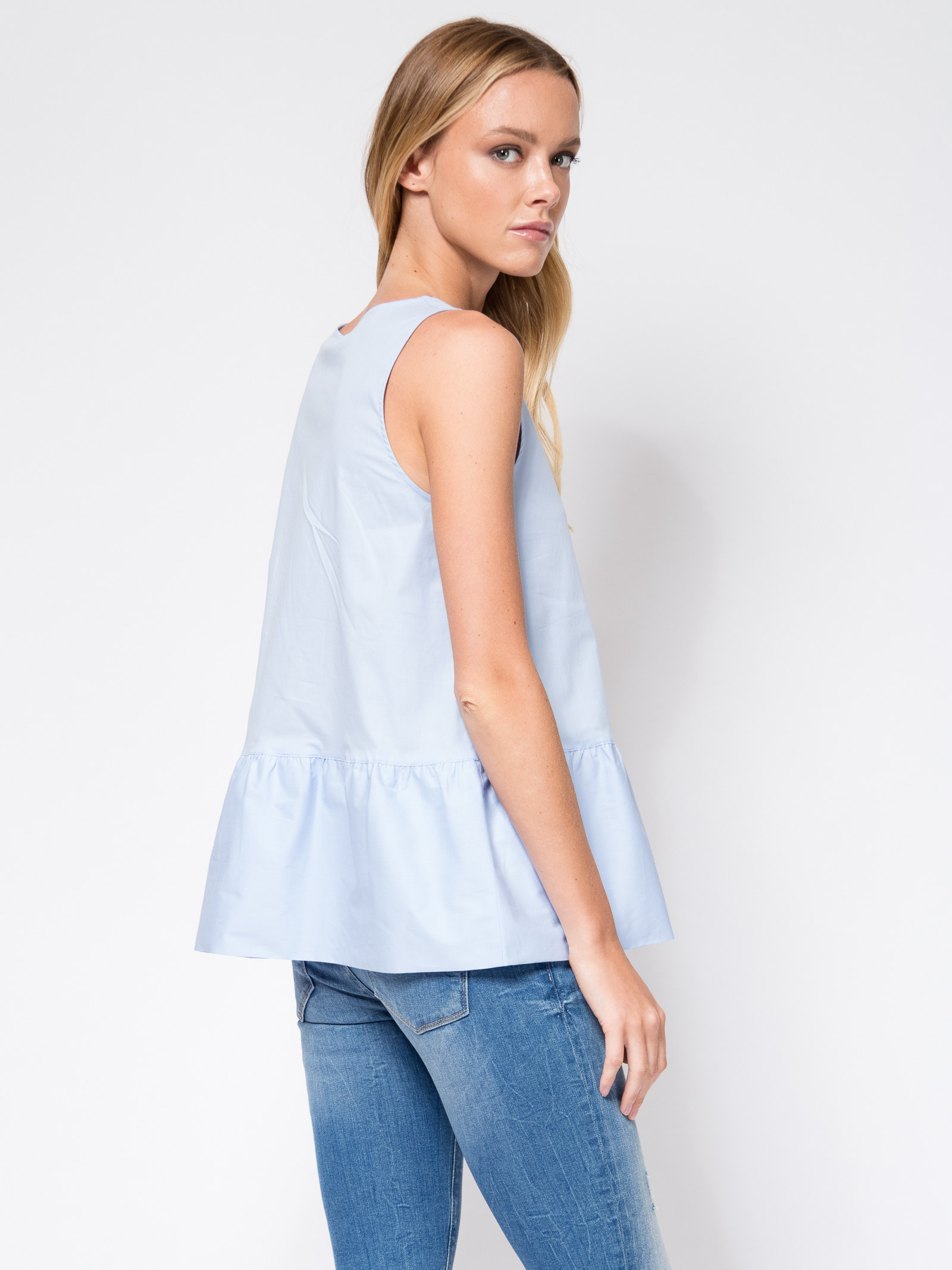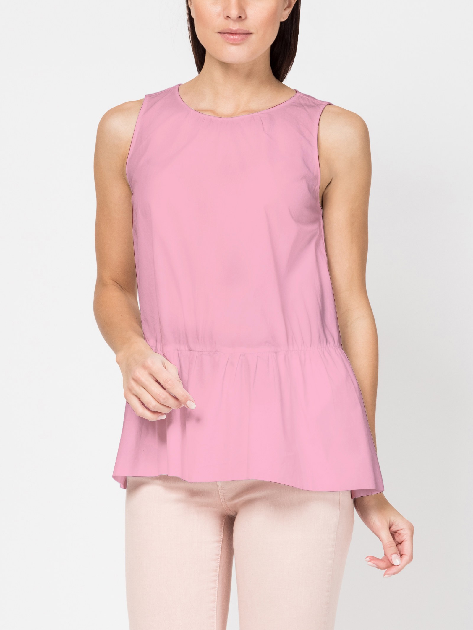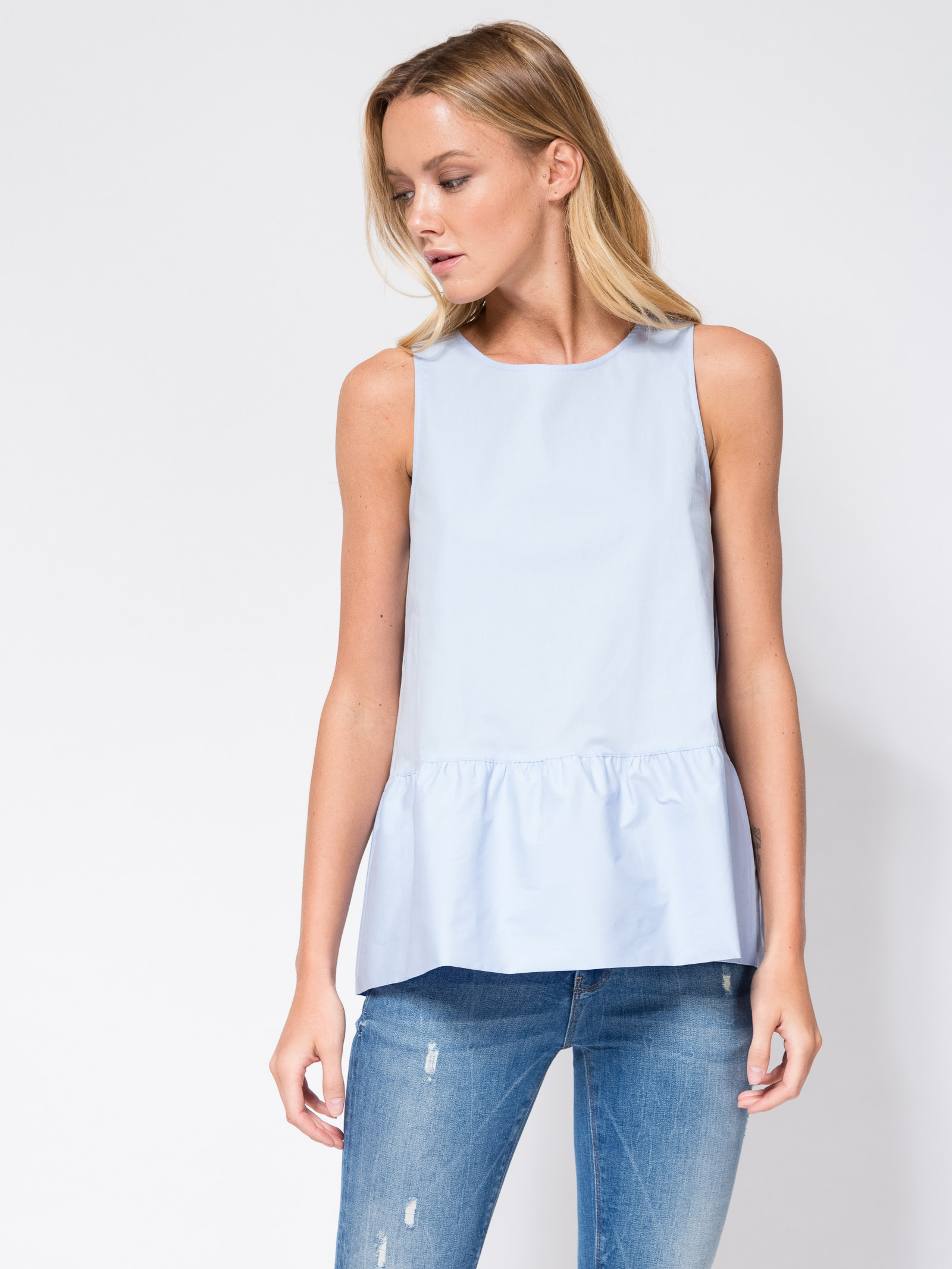 Топ без рукавов, круглый вырез горловины, свободный силуэт, по низу волан