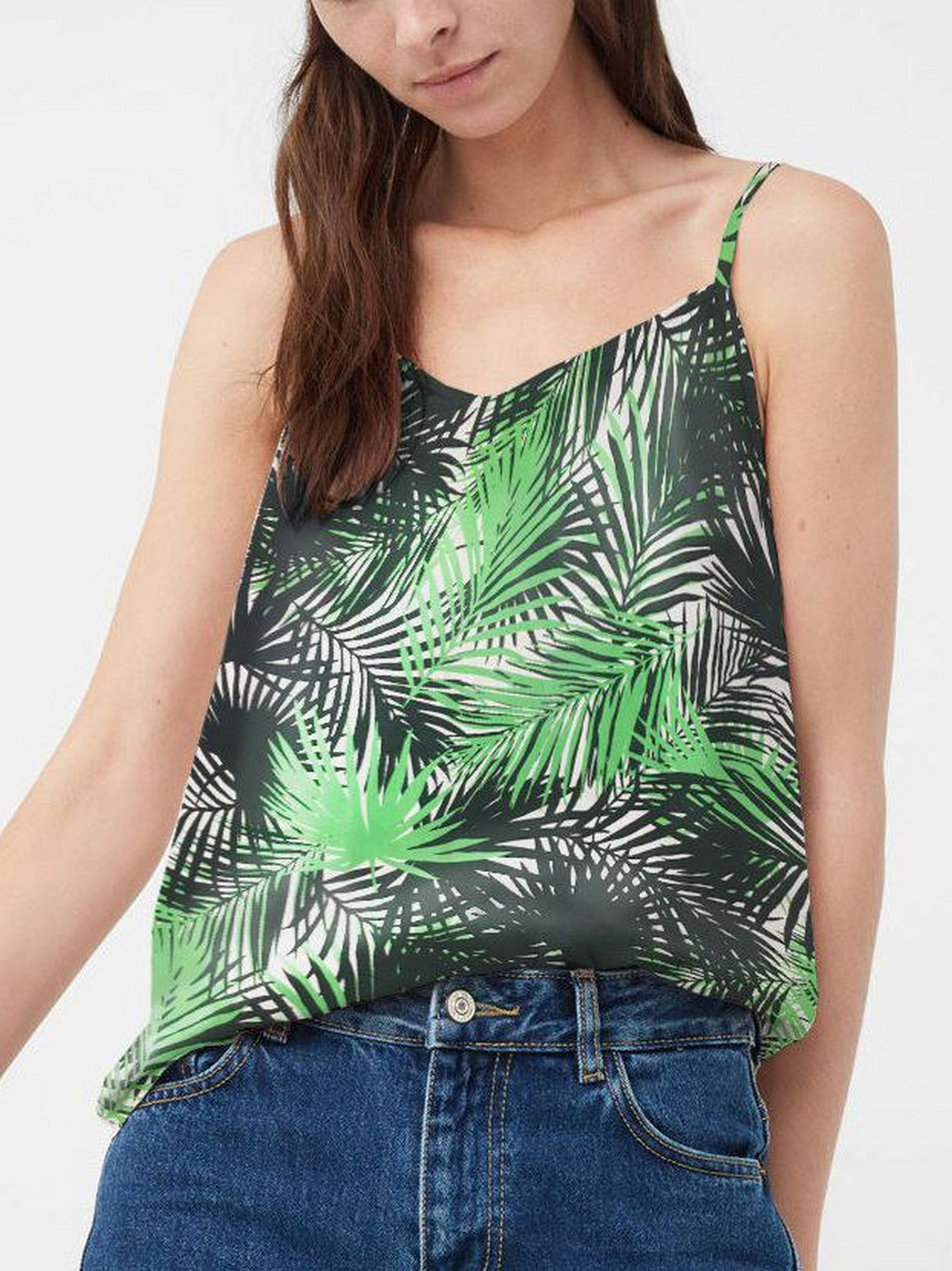 Топ на бретелях из основной ткани, брители с регулятором, V-вырез горловины, свободный силуэт