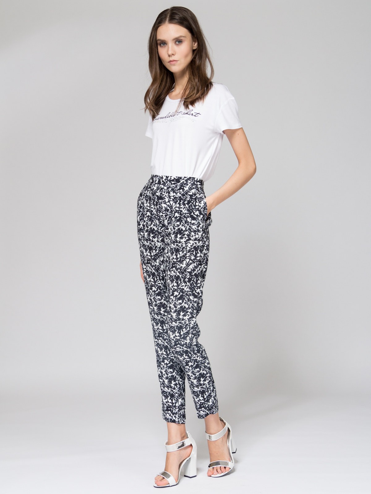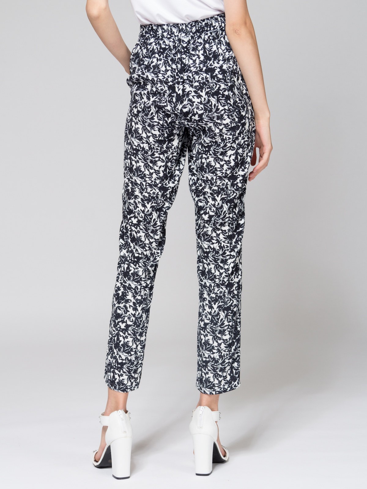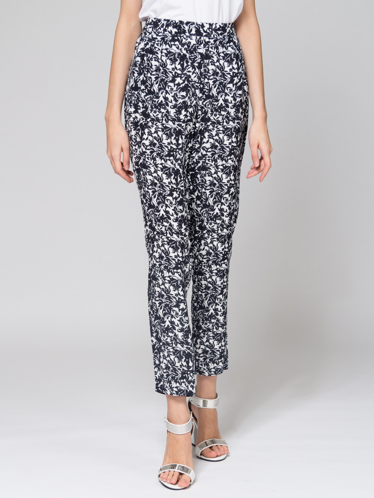 Брюки свободного силуэта, средняя посадка, пояс на резинке, карманы спереди, ткань принтованная вискоза