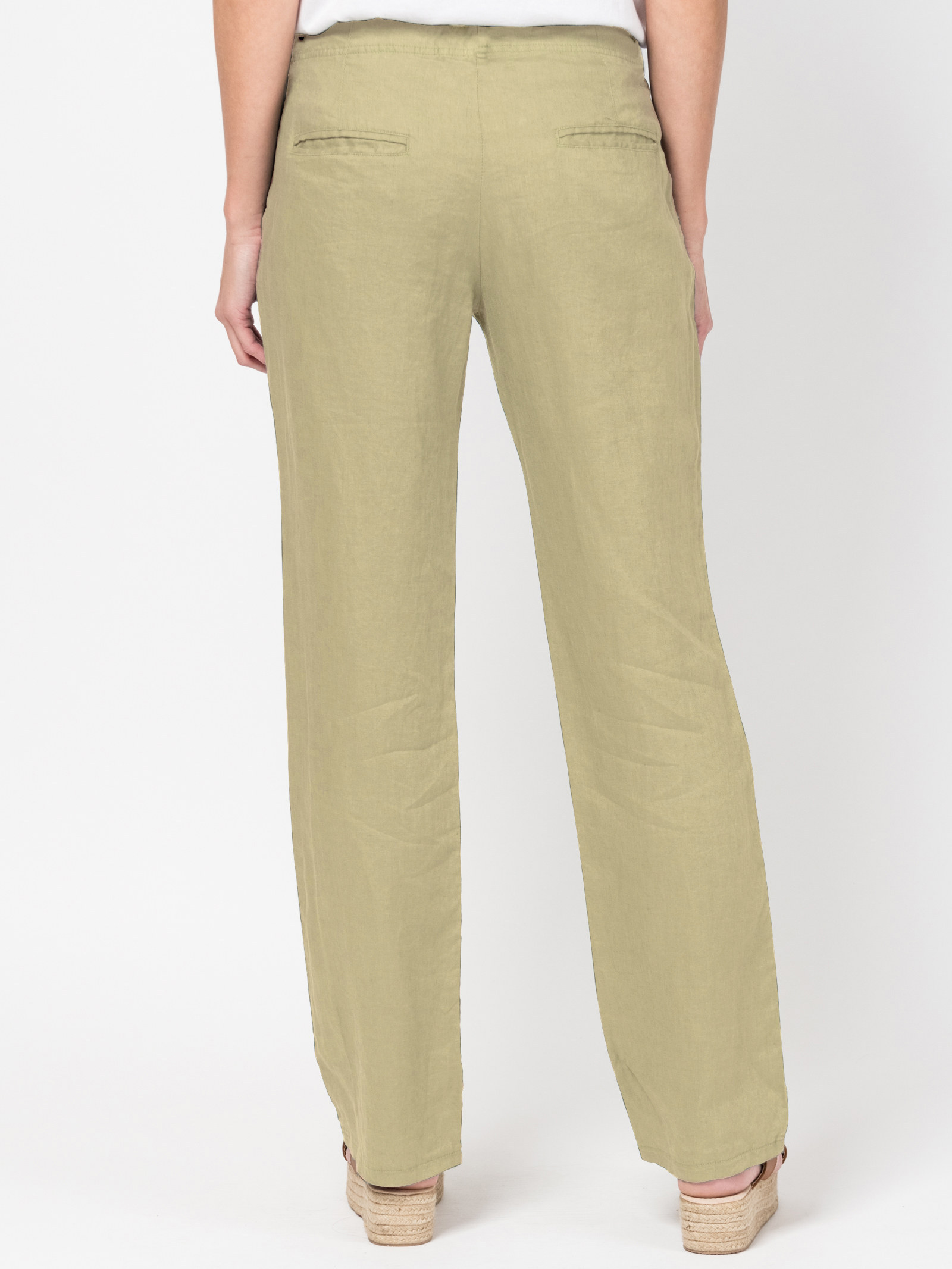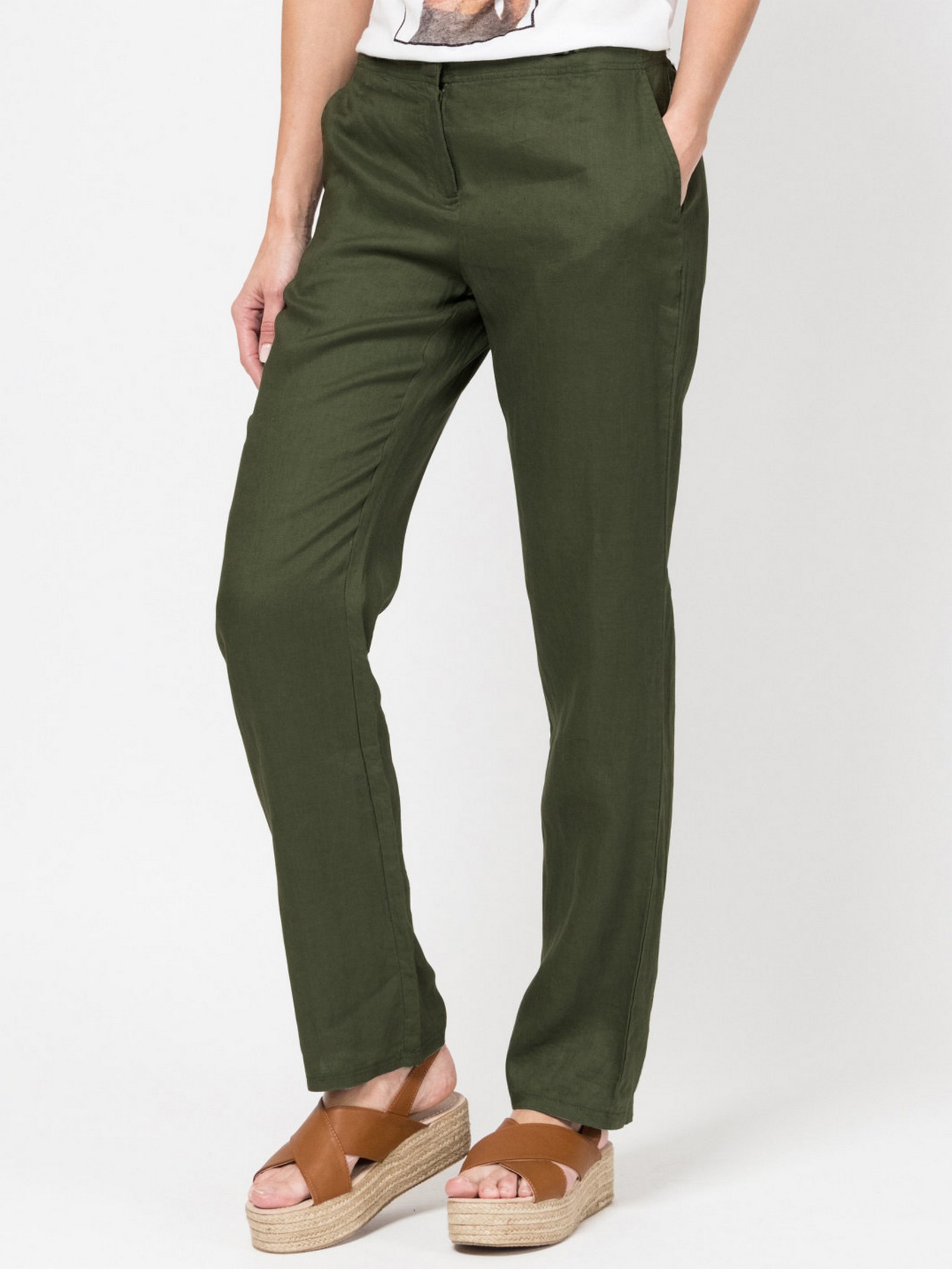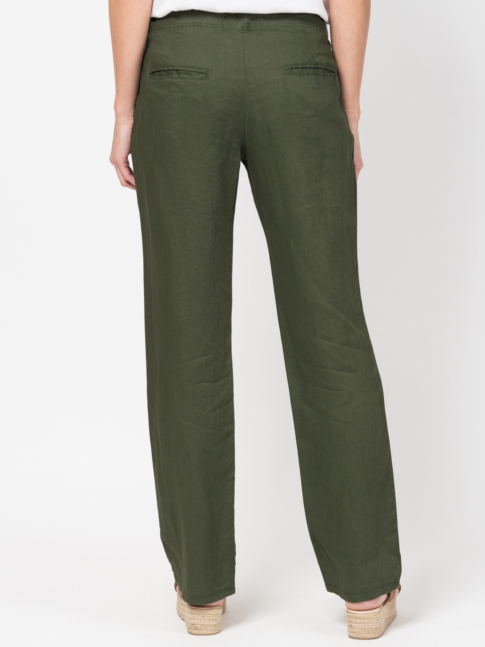 Льняные брюки, свободный силуэт, средняя посадка, функциональные карманы спереди, сзади декоративные карманы, застежка пояса на пуговице