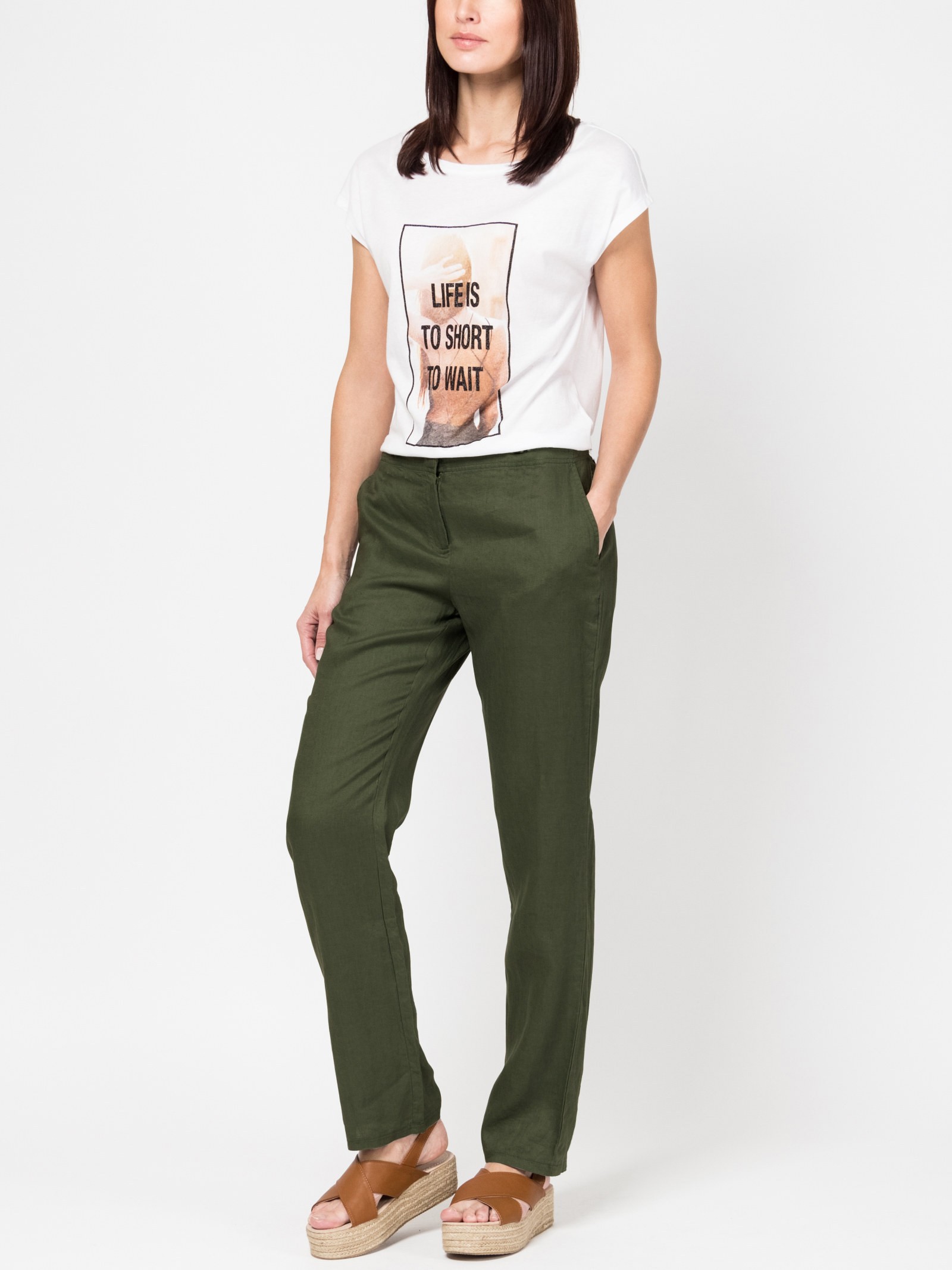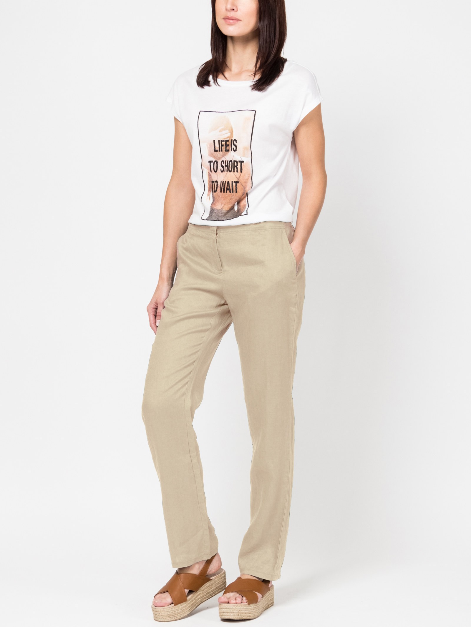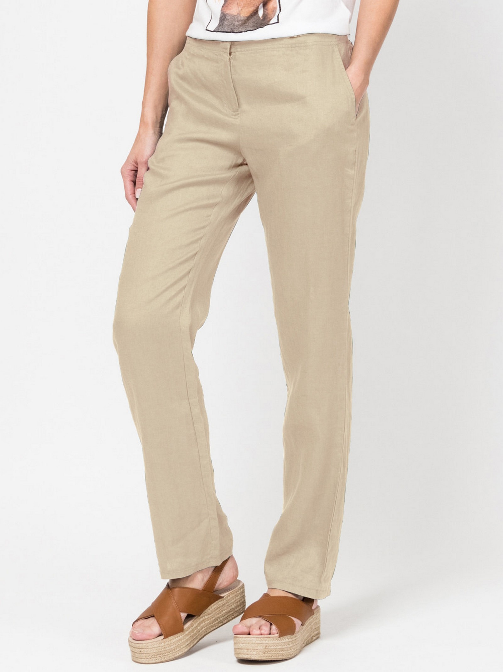 Льняные брюки, свободный силуэт, средняя посадка, функциональные карманы спереди, сзади декоративные карманы, застежка пояса на пуговице