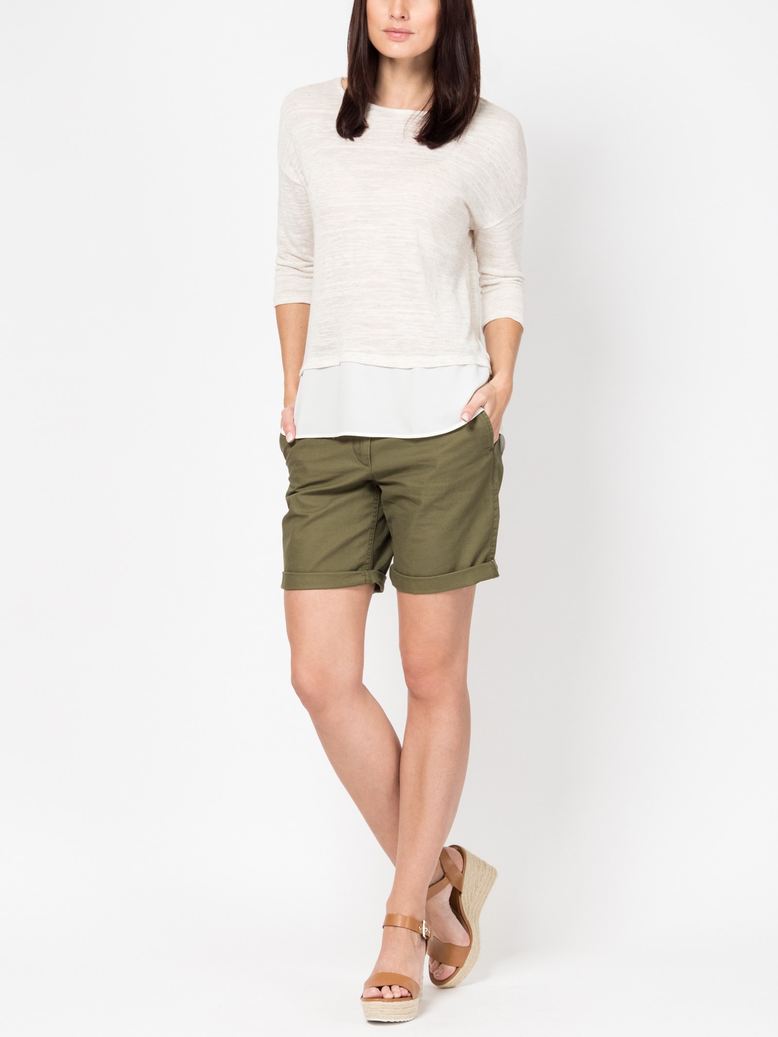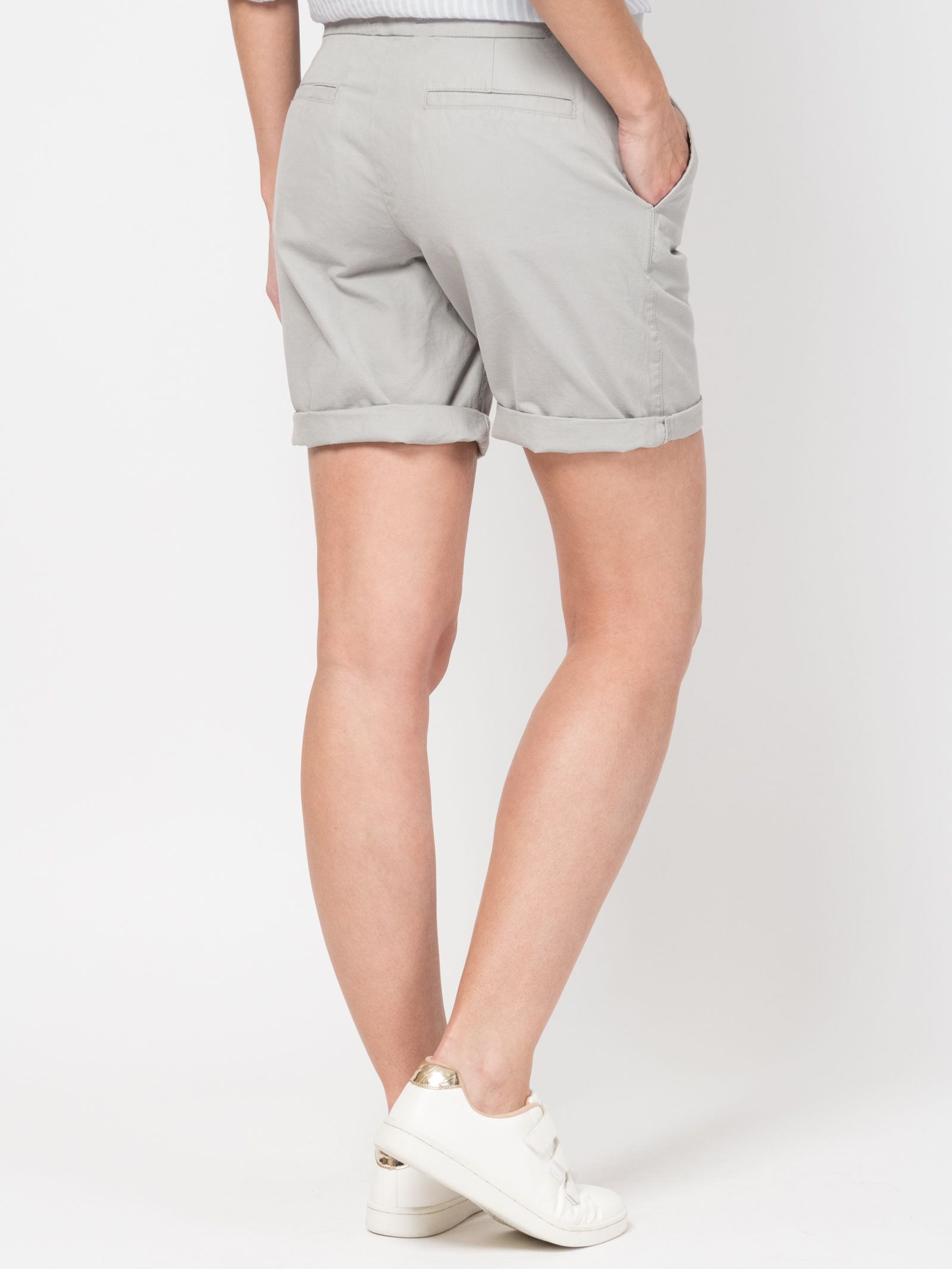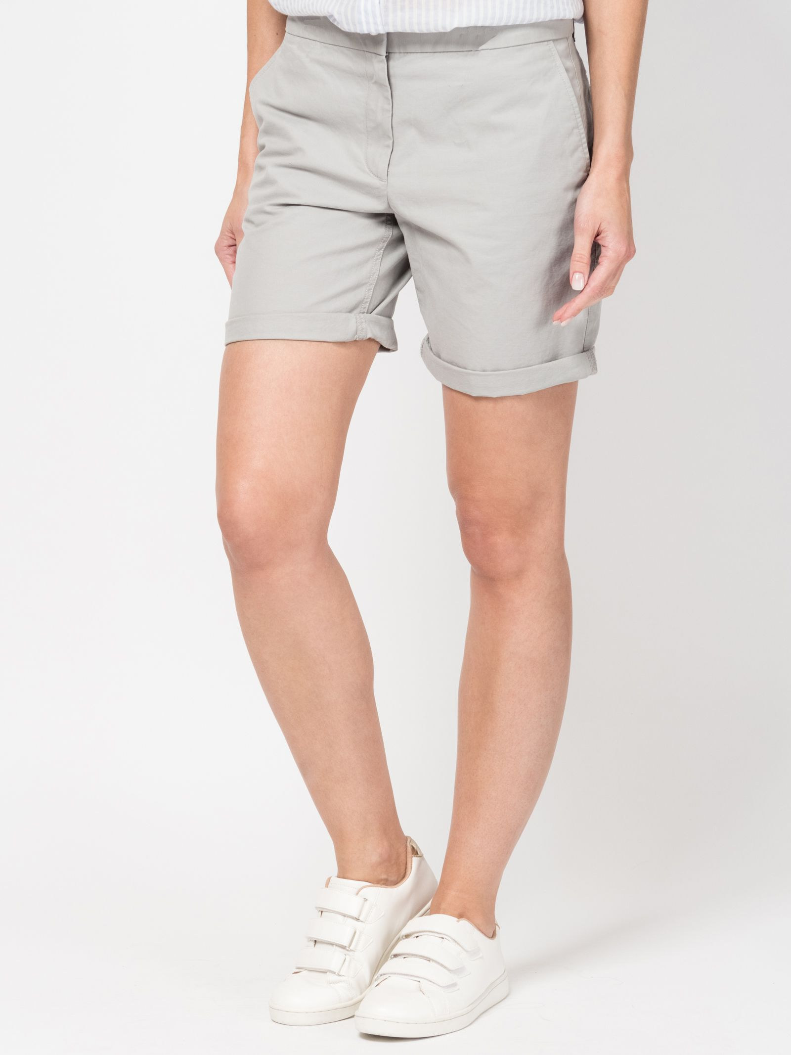 Шорты со средней посадкой, свободный силуэт, пояс потайном крючке, функциональные карманы спереди, сзади ложные карманы, ткань хлопок с эластаном, длина выше колена