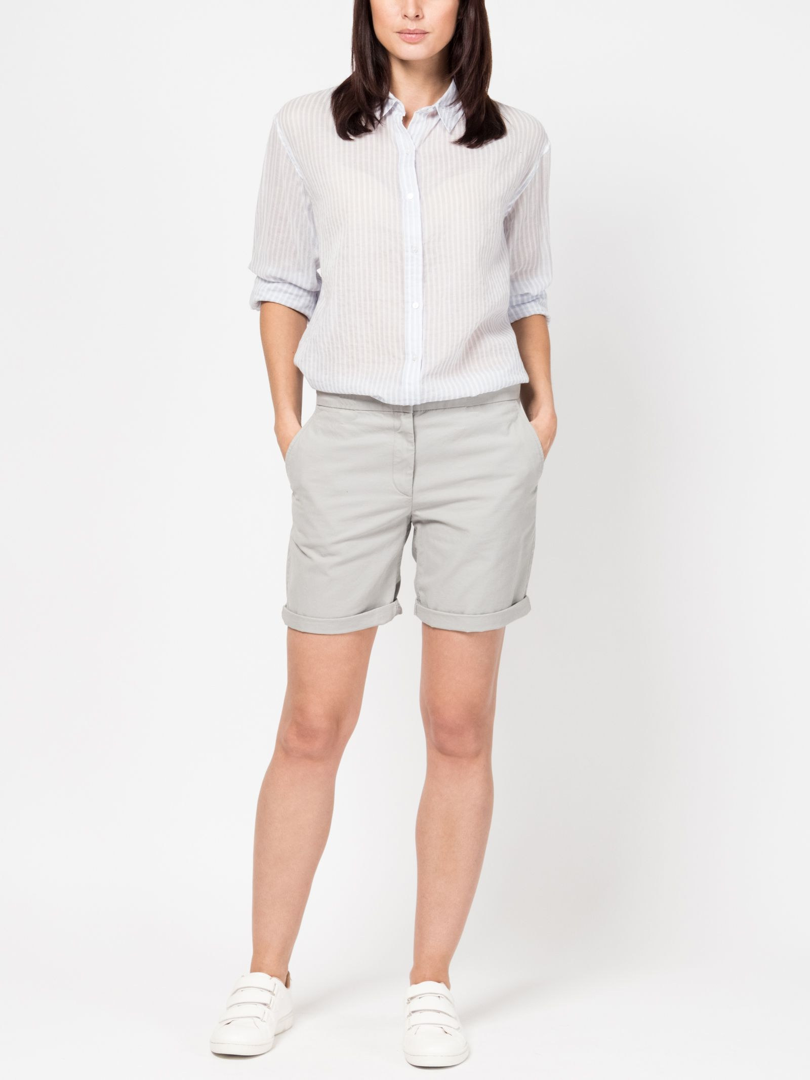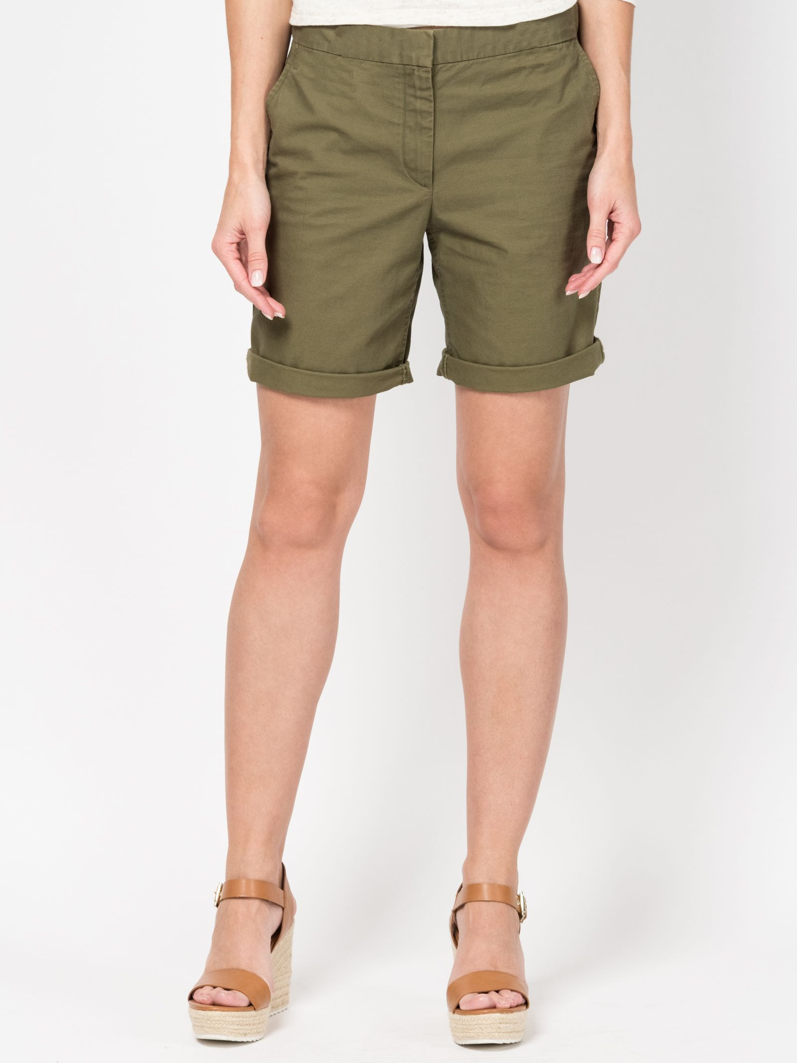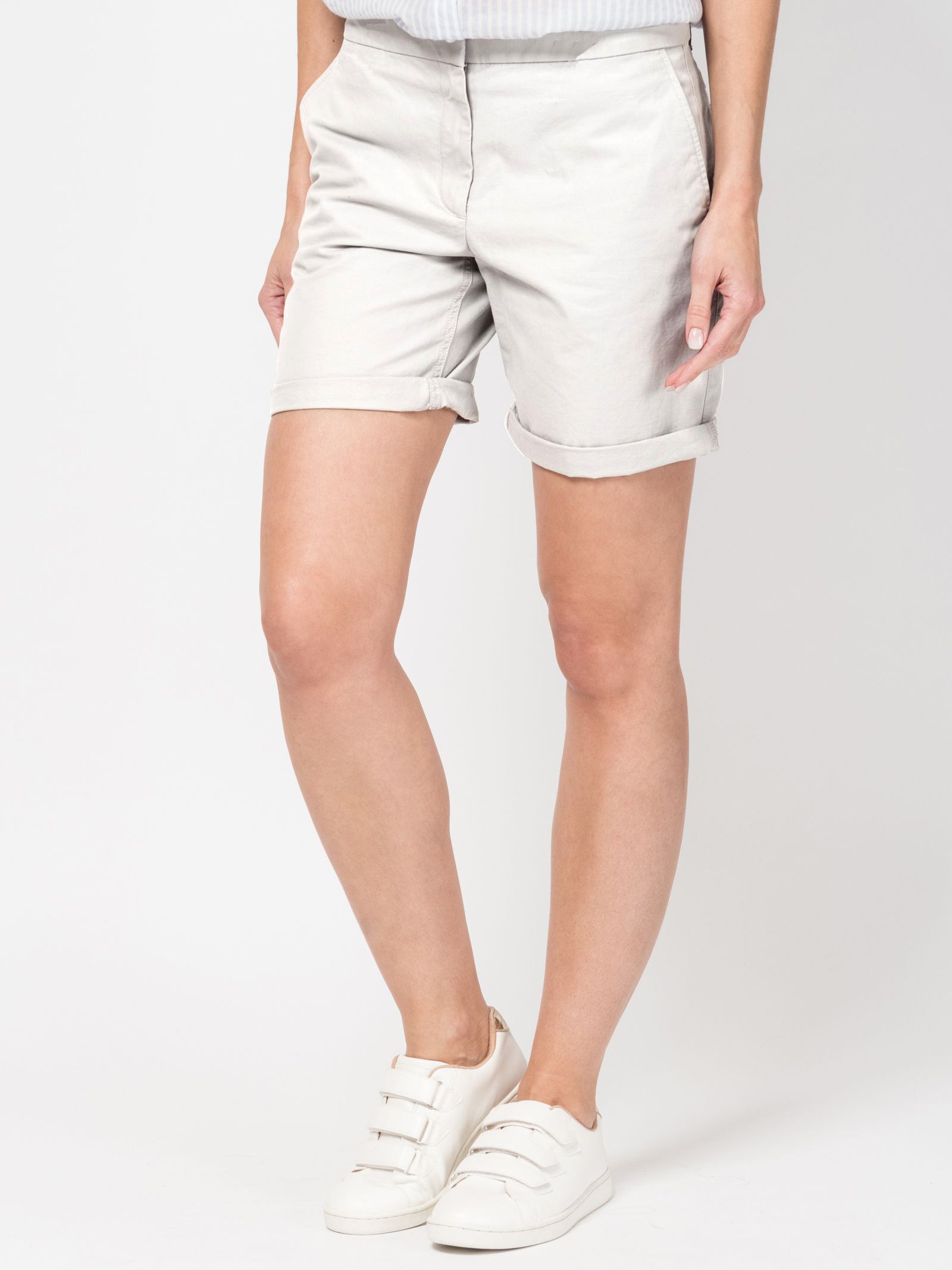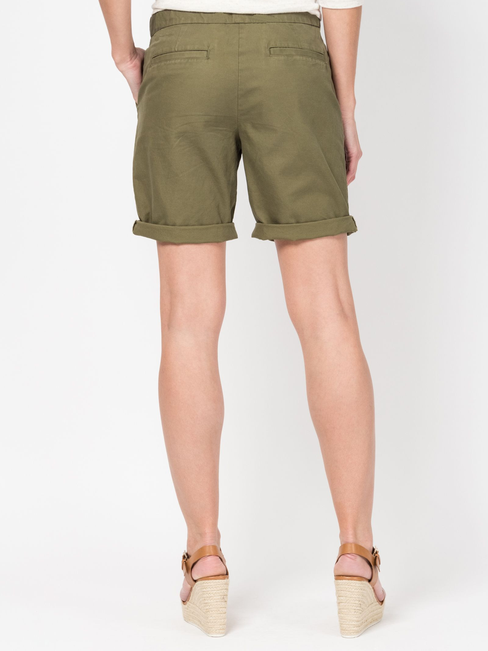 Шорты со средней посадкой, свободный силуэт, пояс потайном крючке, функциональные карманы спереди, сзади ложные карманы, ткань хлопок с эластаном, длина выше колена