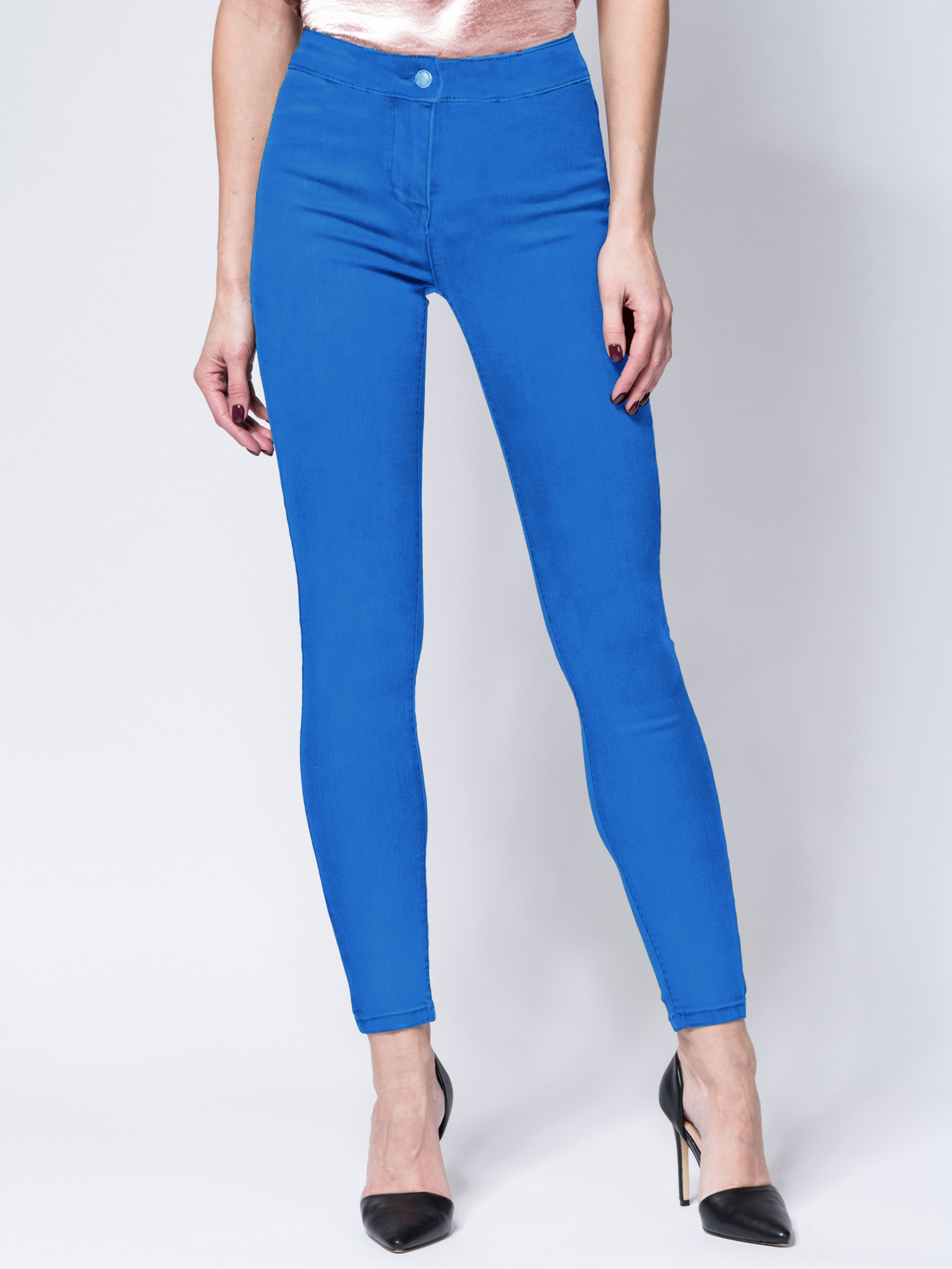 Джеггенсы из стрейчевой ткани, средняя посадка, облегающий силуэт, пояс на пуговице, сзади накладные карманы