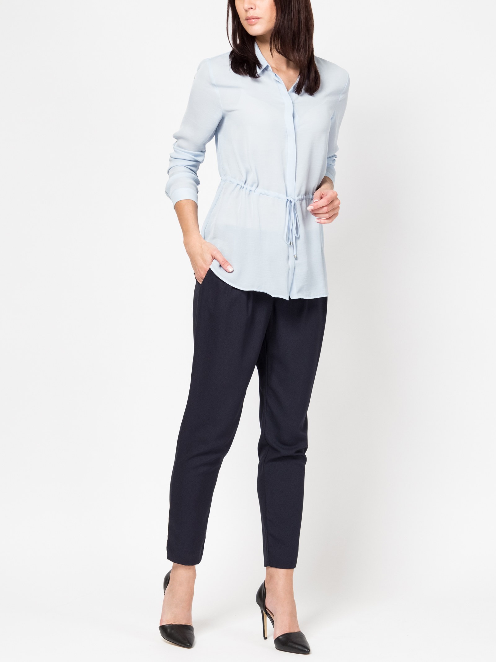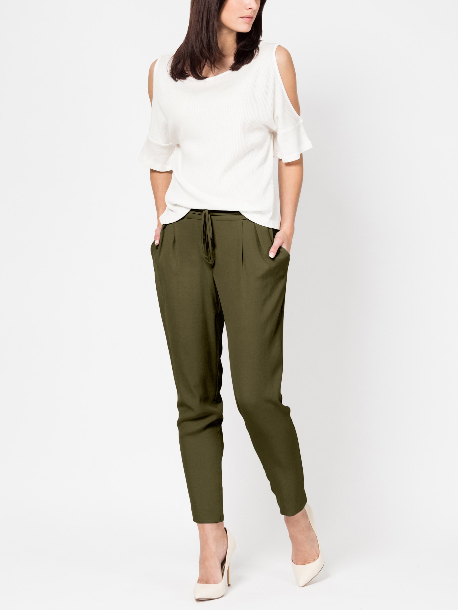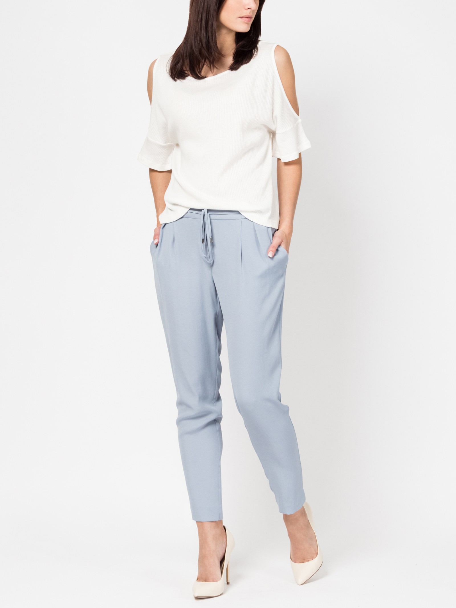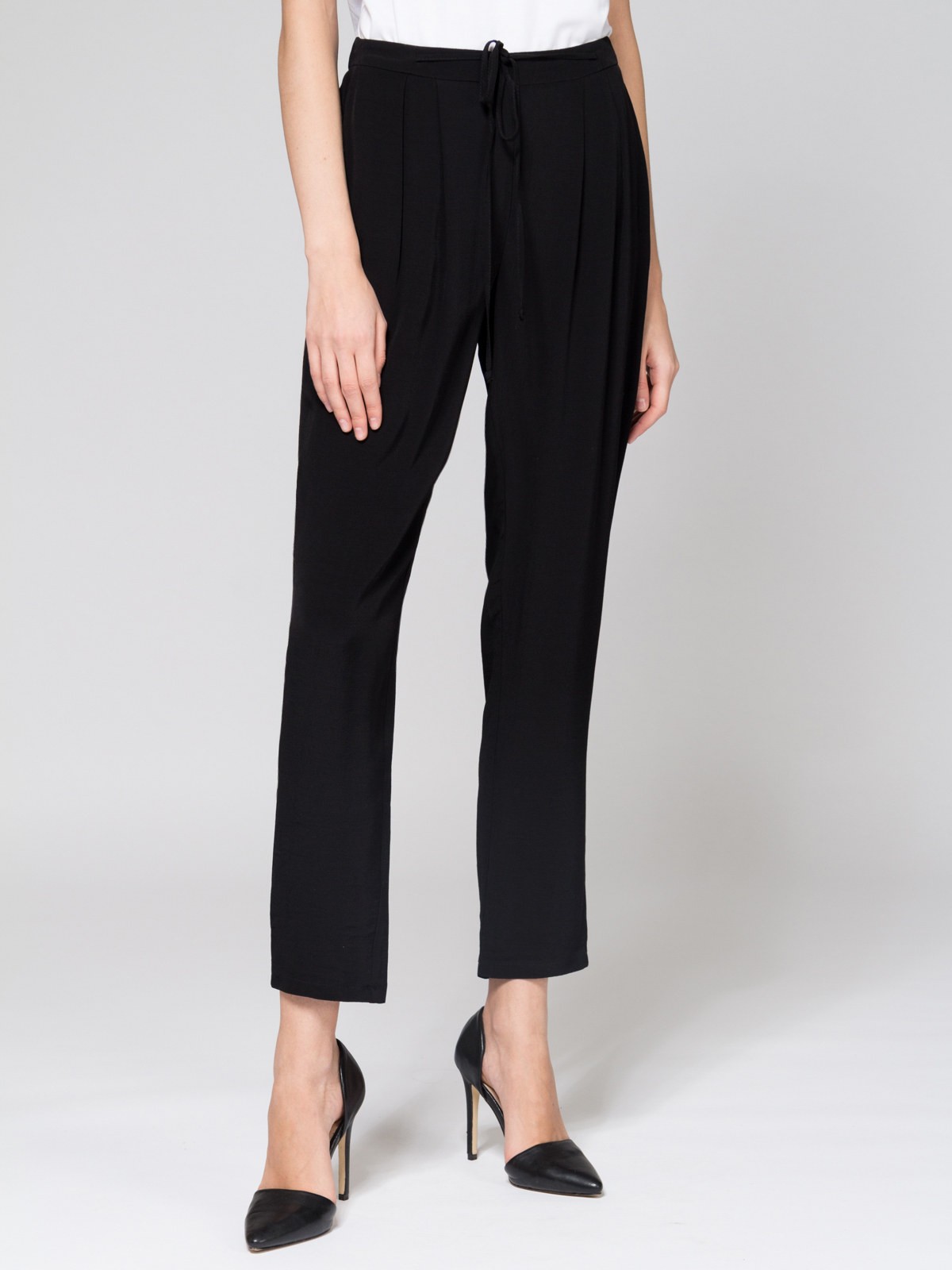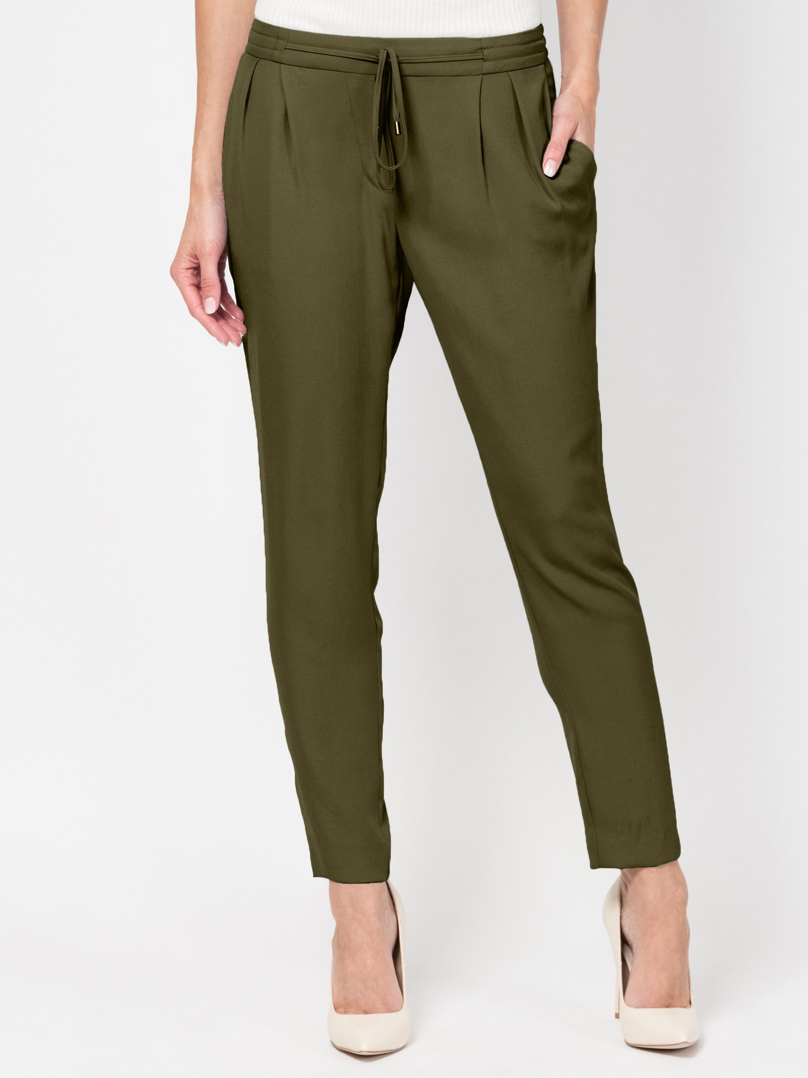 Брюки свободного силуэта, средняя посадка, пояс на резинке со шнурком, карманы спереди, ткань вискоза с легкой фактурой