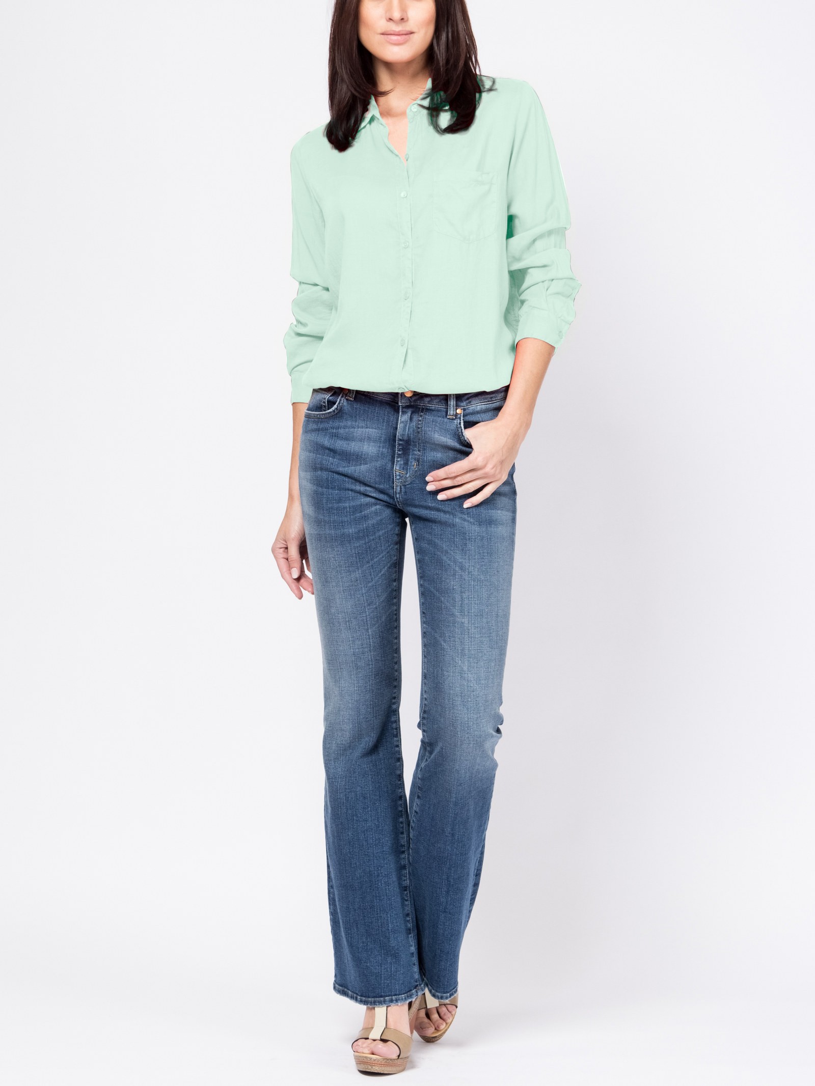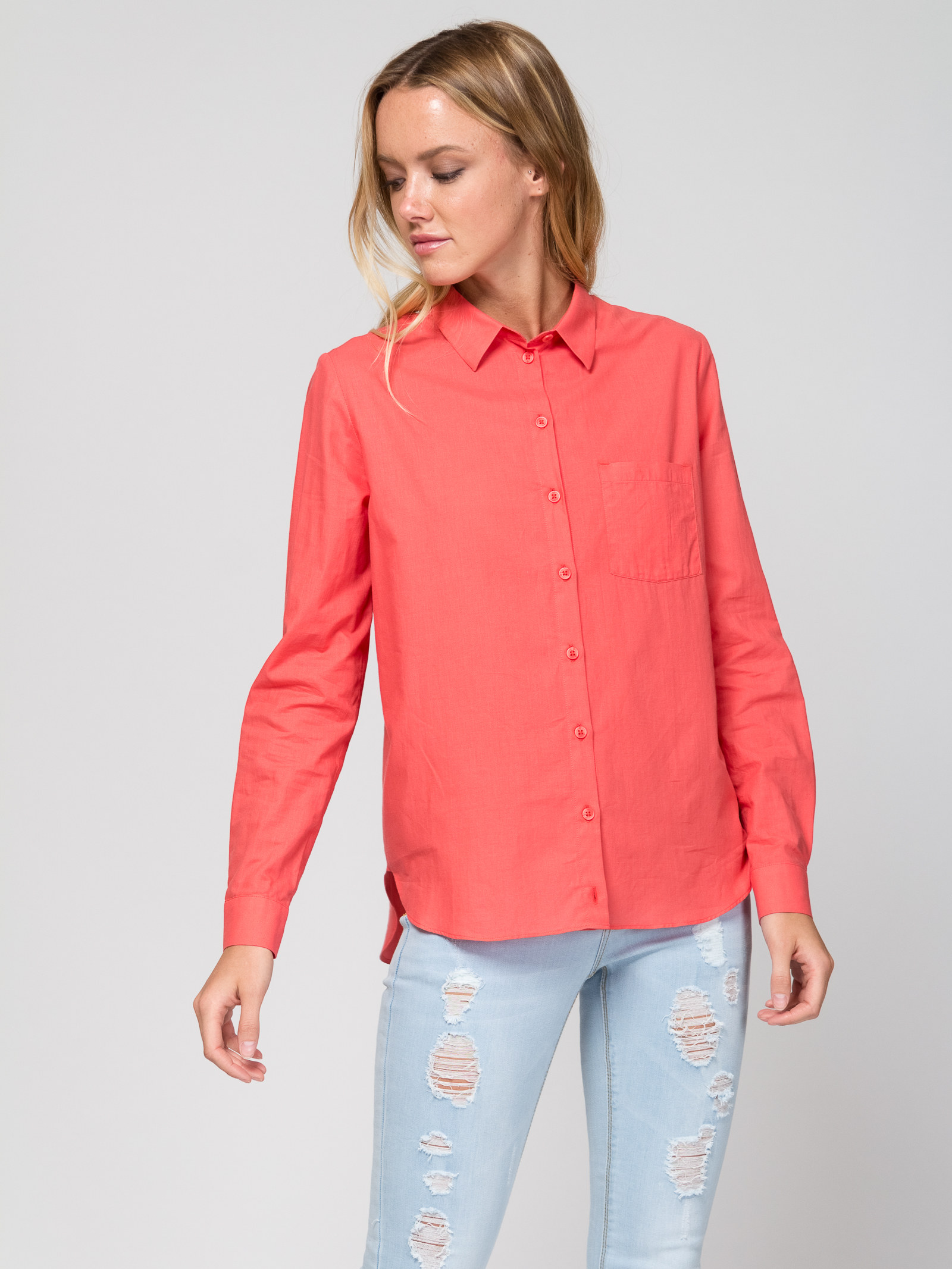 Рубашка из тонкого хлопка, длинный рукав, свободный силуэт, накладной карман спереди, спинка длинее полочки