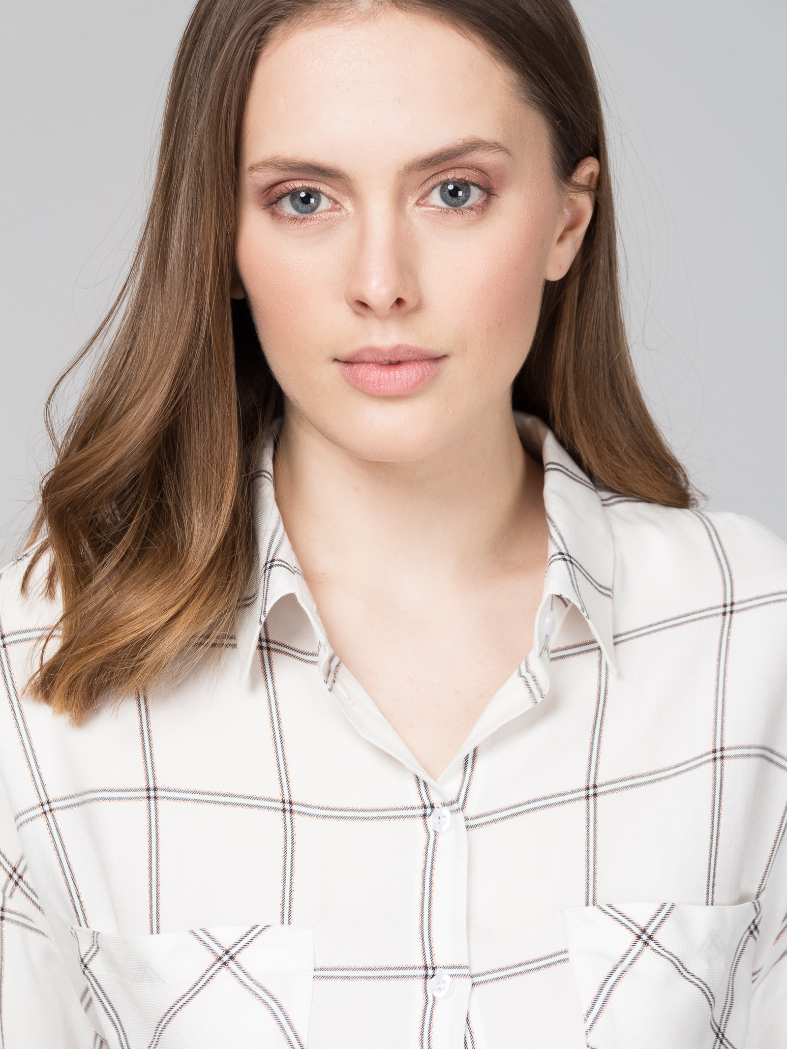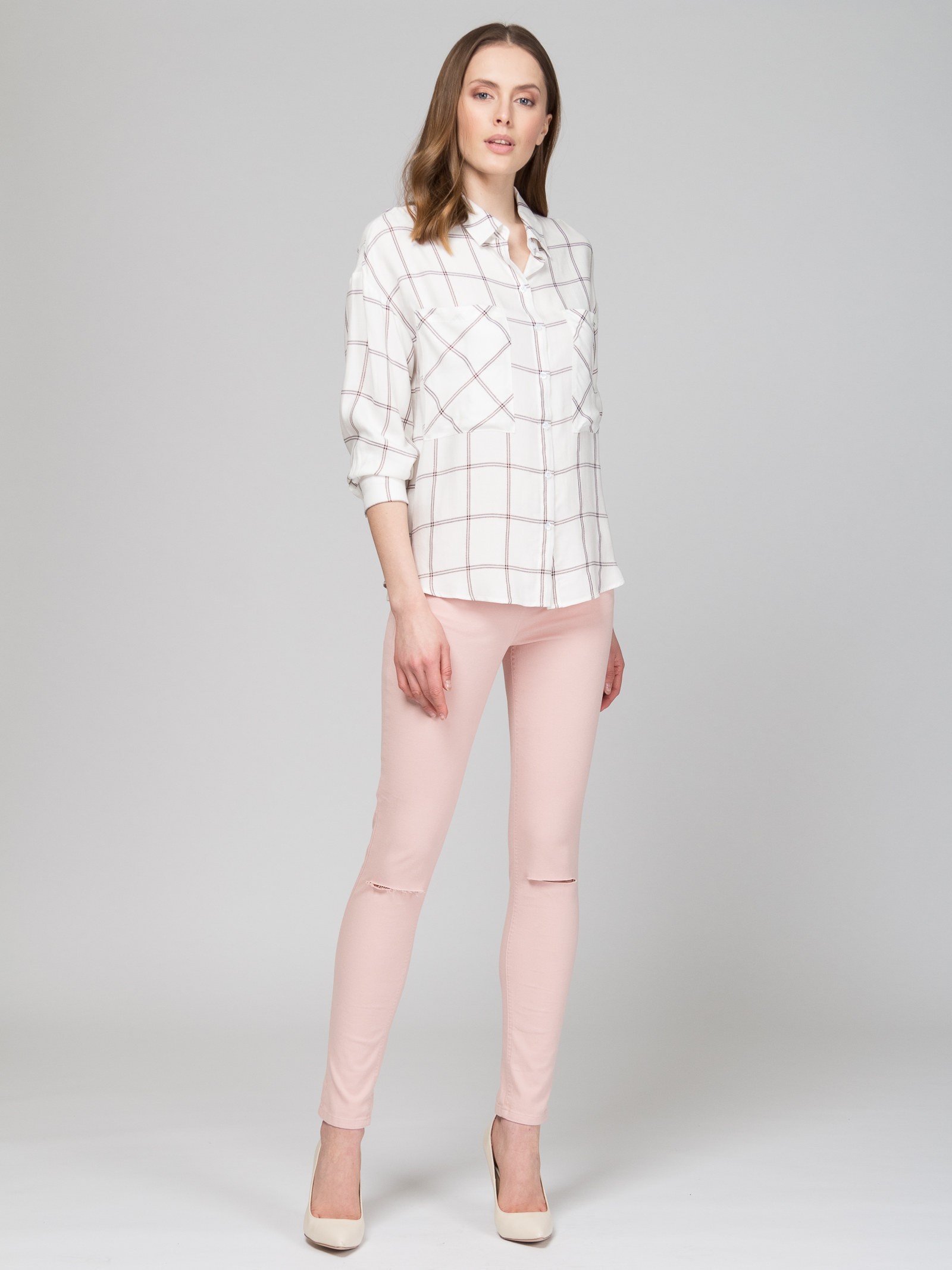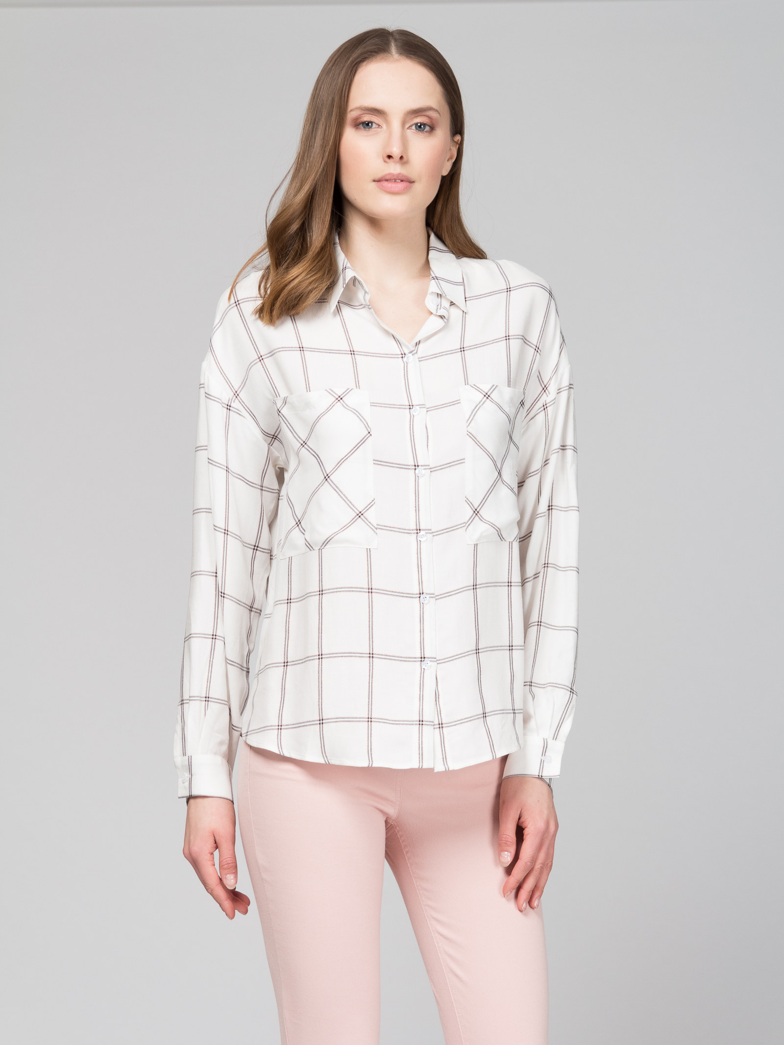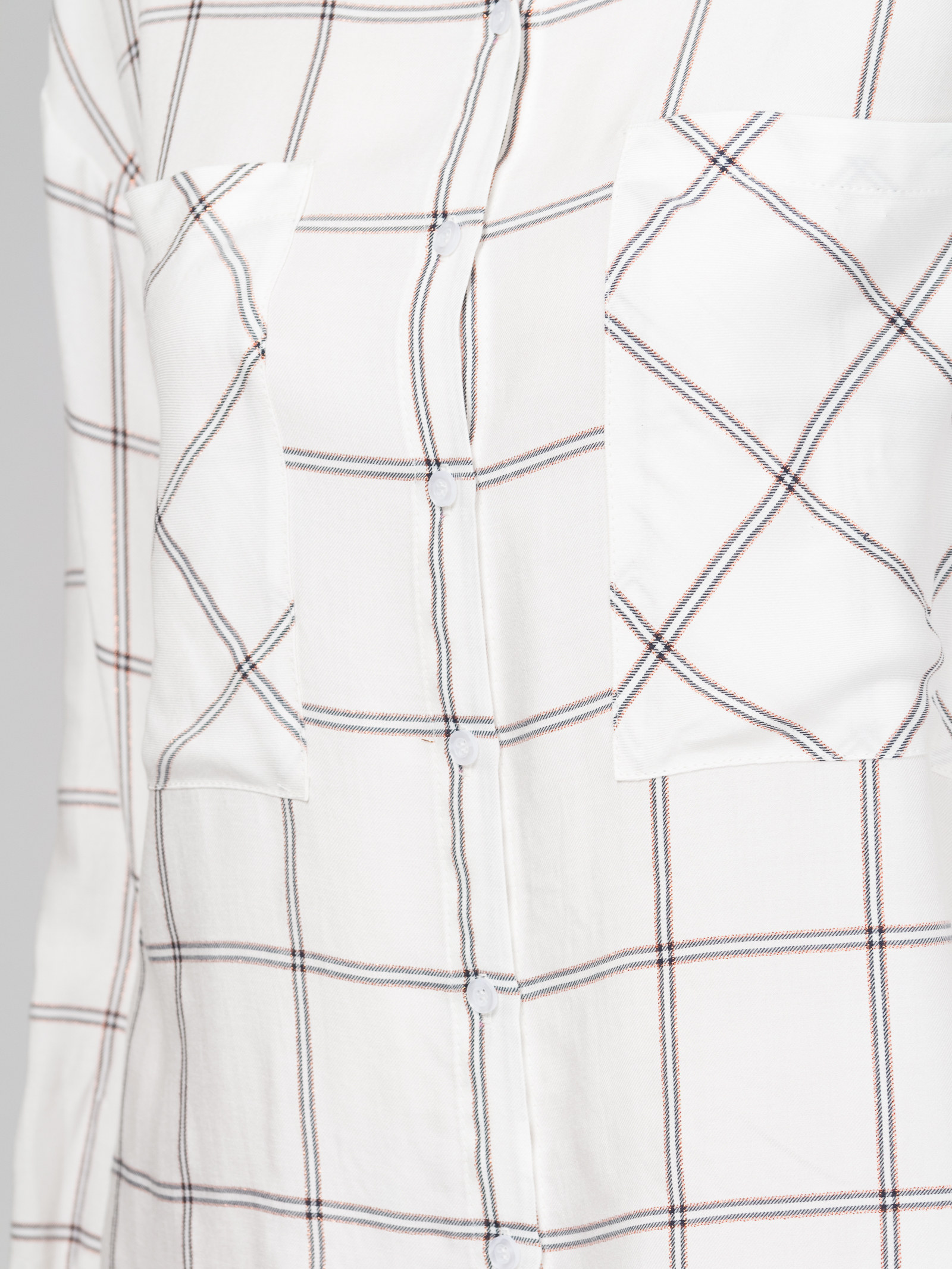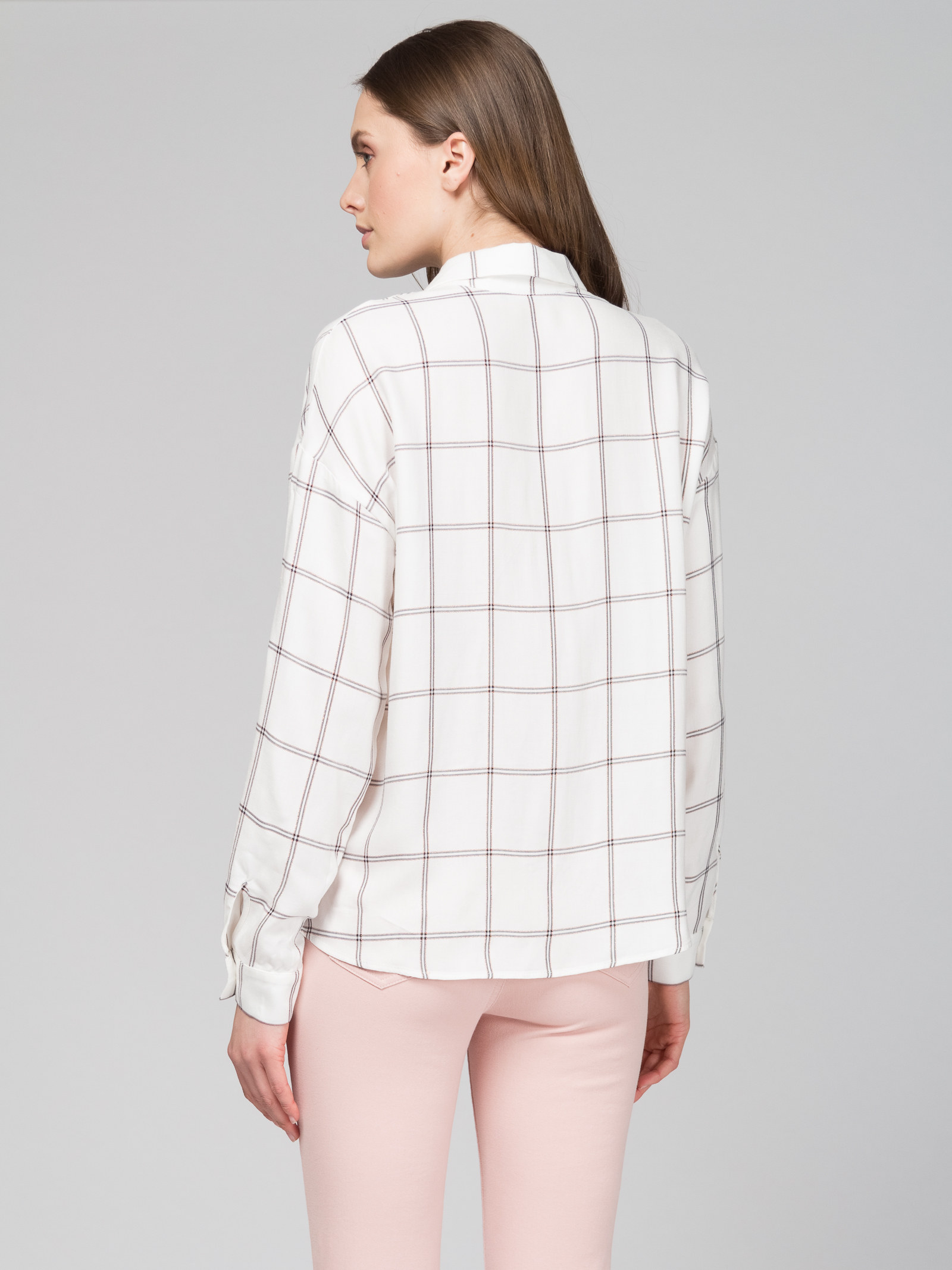 Рубашка из ткани в крупную клетку с люрексом, свободный силуэт, спущенное плечо, с накладными карманами, с разрезиками по боковым швам